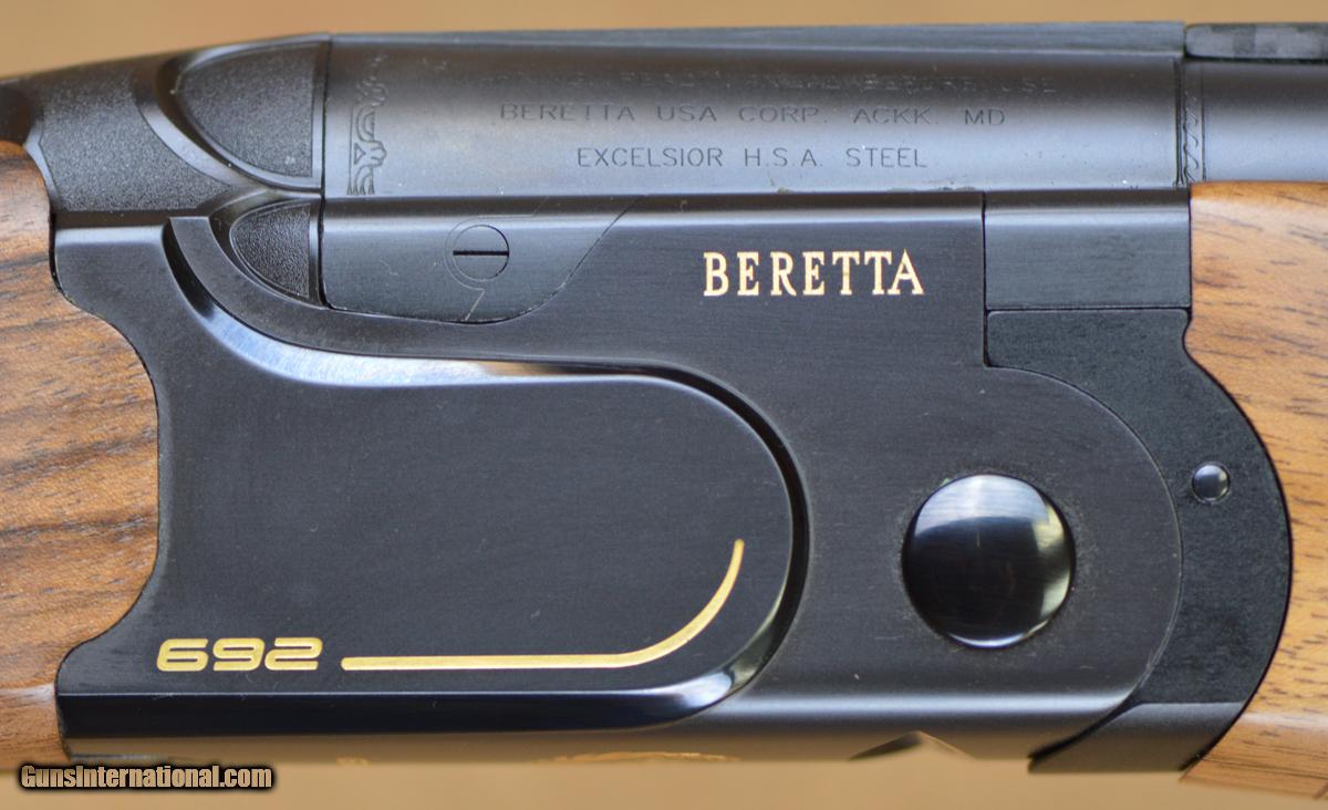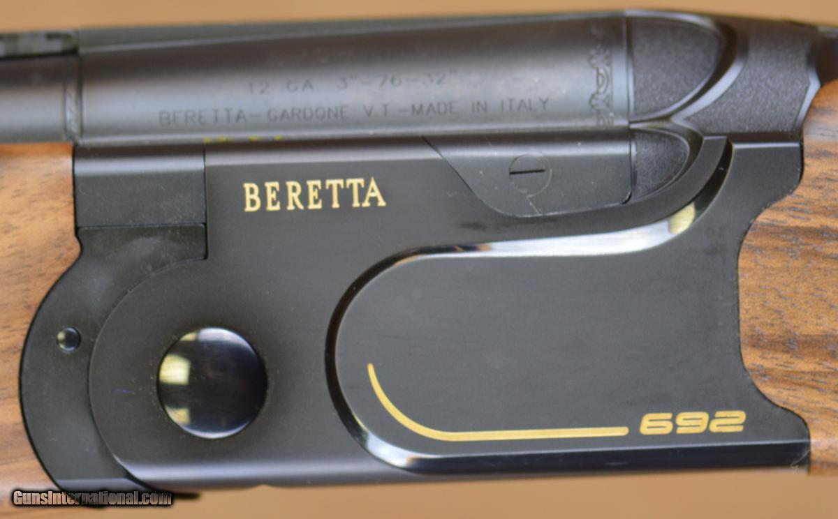 Description: New Beretta 692 Black Sporting 12GA with 32" OP HP factory choked barrels. Features carbon fiber rib, black action with gold high-lights. Outstanding factory right-hand adj. comb sporting stock with palmswell and schnabel forearm. Includes factory case, chokes & tools. SOLD |