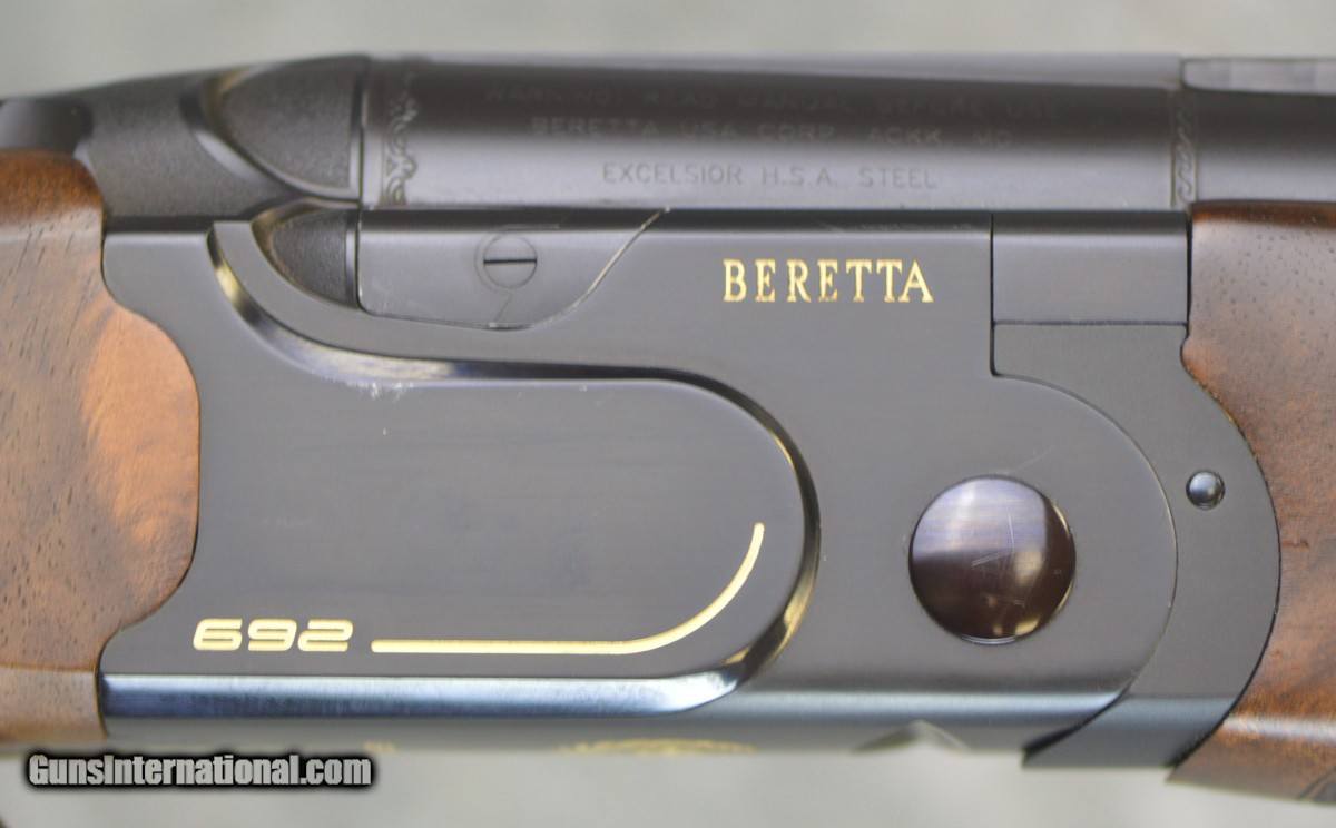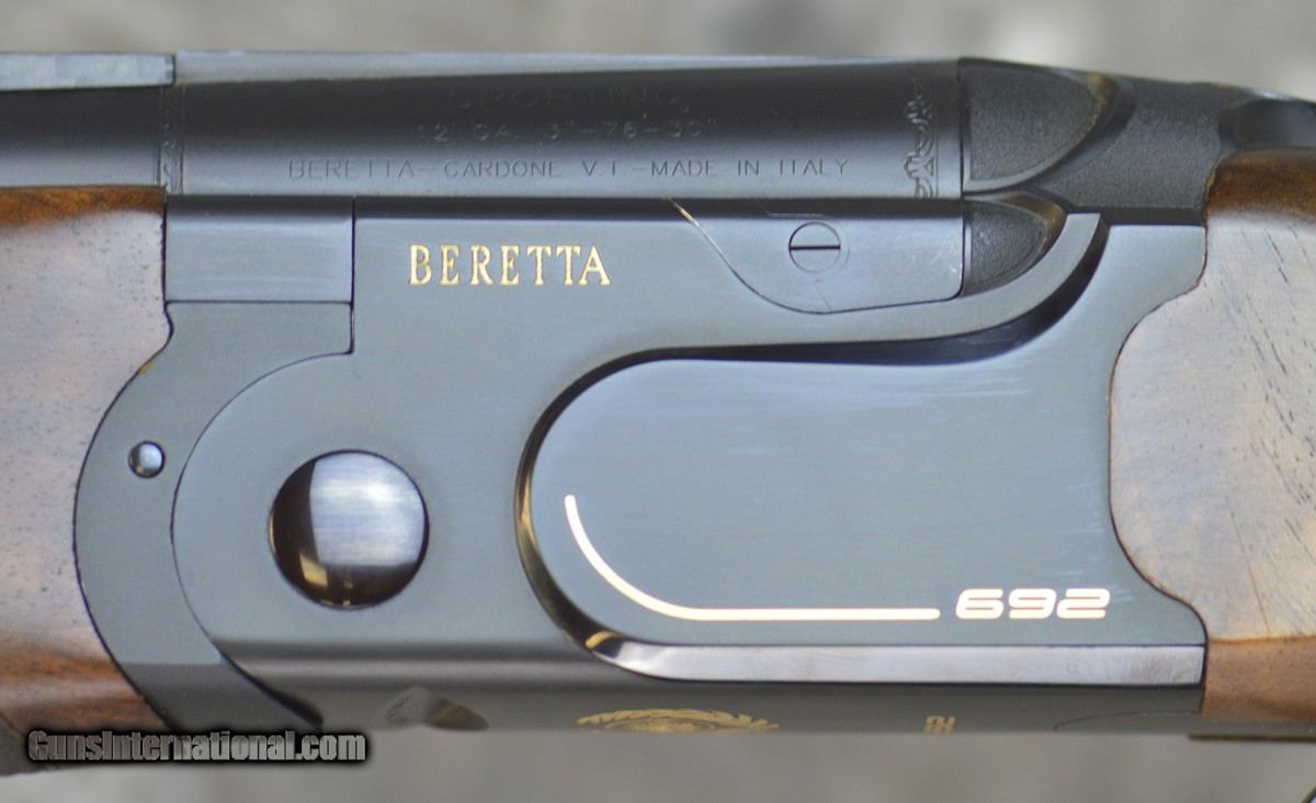 Description: Pre-Owned Beretta 692 Black Edition 12GA with 30" factory OPHP choke tubed barrels, factory carbon fiber rib. Blued receiver with gold Beretta trident, factory pistol grip sporting stock with schnabel forearm, Graco adj. comb installed. Very minor handling marks, overall outstanding condition. Includes Beretta case, chokes and tools. SOLD |