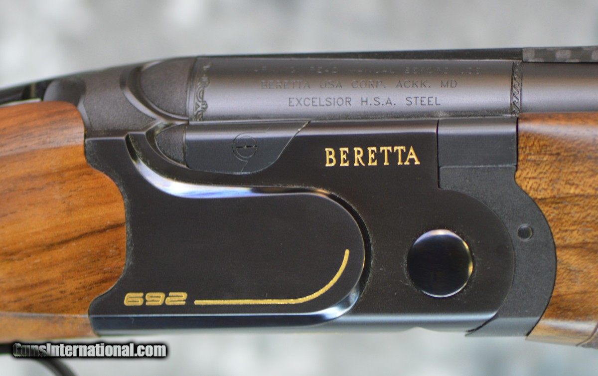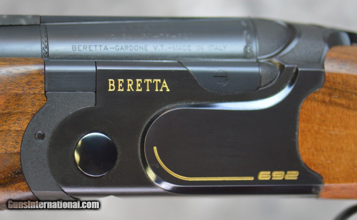 Description: New Beretta 692 Sporting Black Edition1 12GA with 32" factory OPHP choked barrels, carbon fiber rib and integrated barrel weighting system. Factory blued receiver with gold accents and adj. selective trigger. Factory pistol grip sporting stock with right hand palmswell and schnabel forearm. Includes factory case, chokes and tools. SOLD |