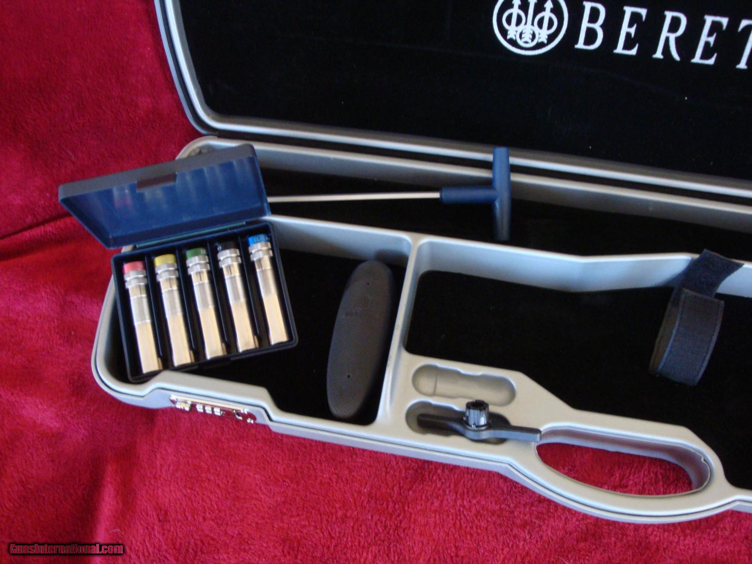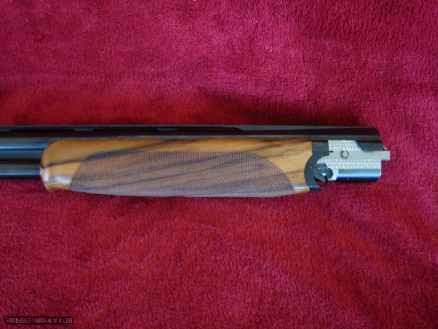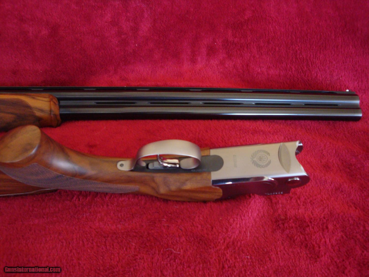Description: 12 Gauge O/U Sporting all round gun. Left Hand Stock. Light use and "as new" condition. 3 inch chambers with 30 inch Steelium plus barrels with long forcing cones. Adjustable Comb, B-Fast weight balancing, Adjustable LOP trigger. Comes with 5 optima HP extended chokes. 10x8 mm ventilated rib. two thicckness recoil pads. Single selective trigger and manual safety. Ejectors can with switched to extractors easily. Weighs about 7lbs 13 oz. MSRP $4800 SOLD |
