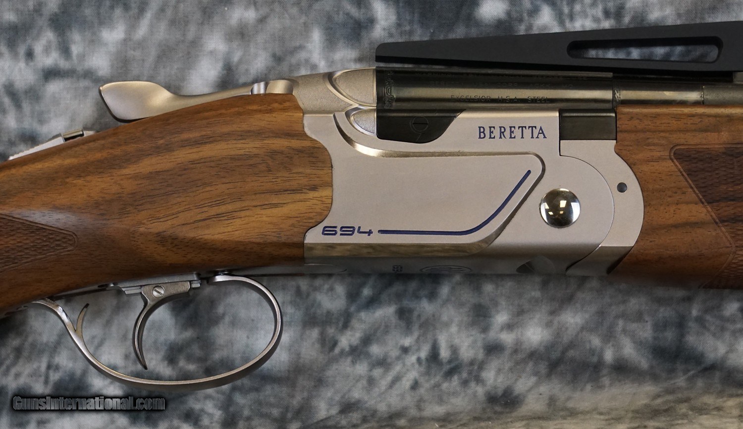 Description: New Beretta 694 All Clay Sports 12GA with 32" factory OBHP choked barrels, factory adjustable rib. Nickel finished action with blue enamel highlights, adjustable selective trigger. Factory Monte Carlo adj. comb stock with right-hand palmswell and English sporting forearm. Includes factory case, chokes and tools. SOLD Shotgun Gauge: 12 Gauge |