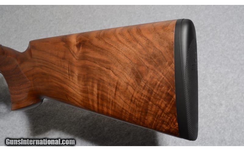 Description: A newly designed fore-end reduces the amount of steel by using aluminum for its front portion. The new, smaller fore-end latch system incorporates a pistol-operated stud. A smaller latch button reduces the surface area that may get overheated during intense sporting-clays sessions and minimizes movement of the fore-end over the lifetime of the gun. Another measure of durability is a hard steel dowel pin across the fore-end steel body. With wear and tear a concern to shooters that fire thousands of shells during a typical season, the new approach is welcome. Cold-hammer forged Steelium Plus barrels (32-inch tested) have an elongated forcing cone that runs about half the length of the barrel. At about 14-inches long, the forcing cone's length improves ballistics by keeping deformation of the shot column to a minimum as it travels down the barrel. Patterns are kept more uniform and perceived muzzle jump is decreased. As a system, it's very comfortable to shoot. 12 Gauge SOLD Chambers: Break Open with Ejectors Metal Condition: Like New Wood Condition: Like New Bore Condition: Like New Barrels: 30" Over Under Triggers: Adjustable Trigger Stock Dimensions: "Diamond Checkered Fine Walnut 14 1/8"" - 14 5/8' LOP, 1 1/2"" DAC, 2 1/4"" DAH 1/4"" Cast Off Fore End: Diamond Checkered Fine Walnut Butt Pad: Like New with Extra Butt Pad Weight: 8 3/4 LBS. Sights: Wide Rib with Middle Post and Front Bead Chokes: Full Set of Chokes Item Location: Tulalip, WA |