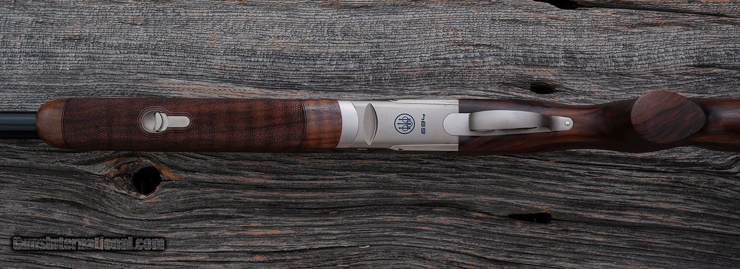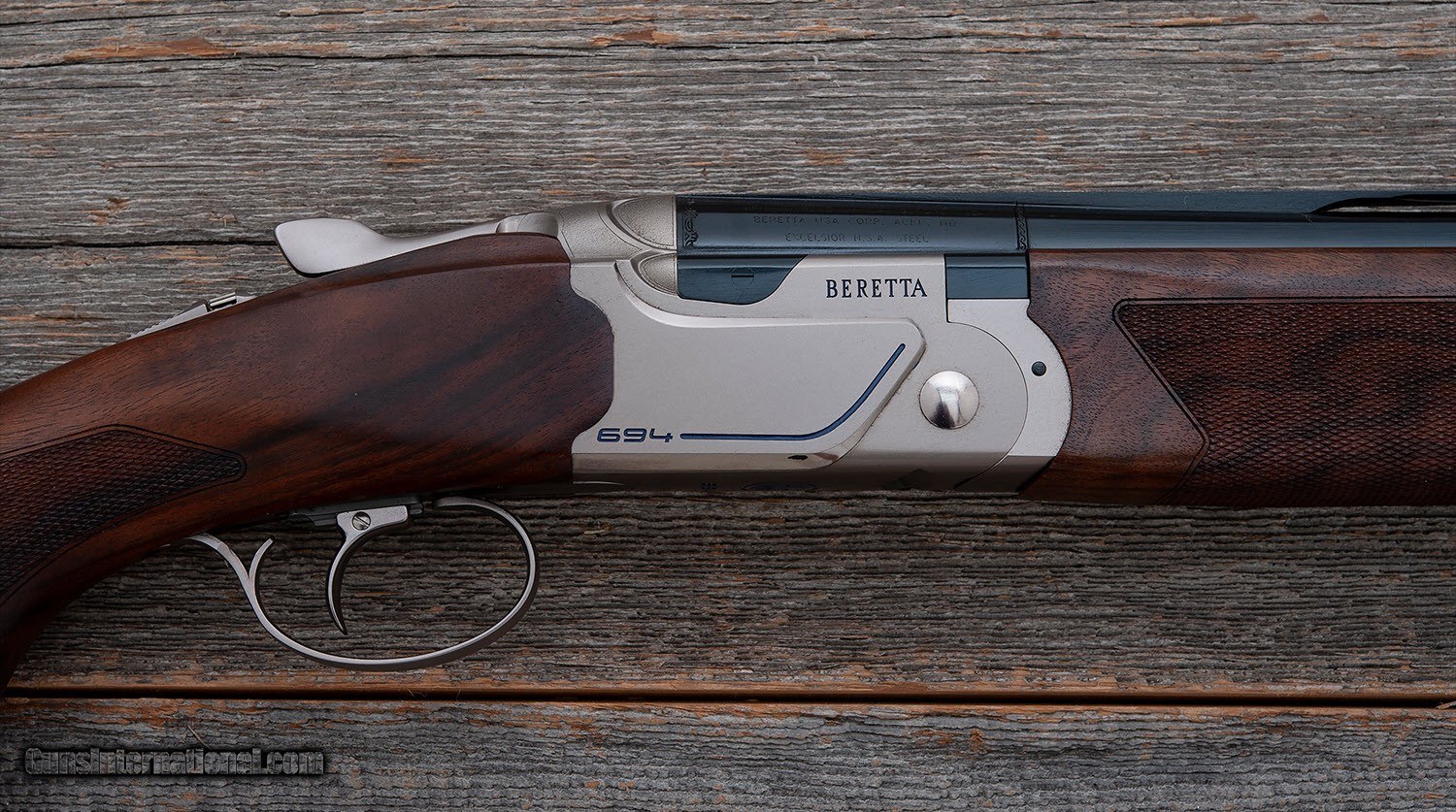 Description: Beretta - 694 Sporting - 12 ga - Item Number: ST05265R Shotgun type: O&U Action: Boxlock Ejectors: Yes Trigger: Single Grip: Pistol Grip Forend: Checkered Lop: 14 5/8 " Pad thickness: 0.5 " Type of butt: Factory Drop comb: 1 3/8 " Drop heel: 2 " Cast amount: 1/8 " Cast: OFF Weight: 8 lbs, 6 oz Manufactured in: Italy Finish: Brush Overall condition: NEW Stock condition: NEW Metal condition: NEW Stock: Original finish Metal: Original finish Type of Case: Maker's ABS case Extra barrels: 0 Barrel info: Gauge: 12 ga Chamber: 3 " Length: 30 " Chokes: 5 Factory Chokes Rib type: Ventilated Comments : SG-137 F5 SOLD Shotgun Gauge: 12 Gauge |