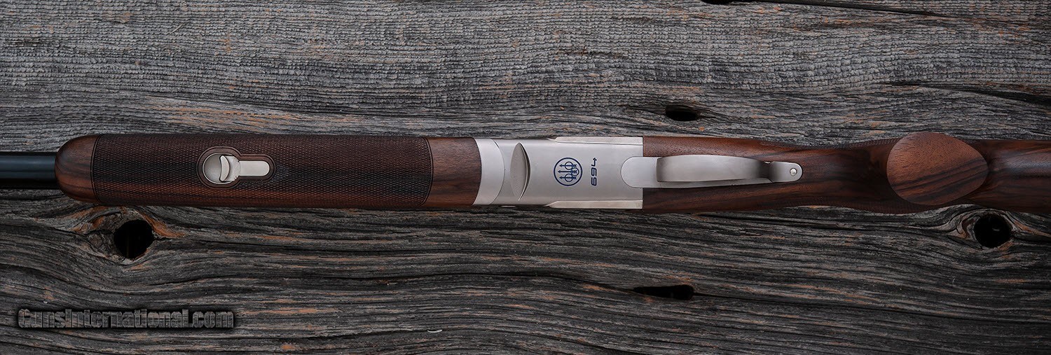 Description: Beretta - 694 Sporting - 12 ga - Item Number: ST04687R Shotgun type: O&U Action: Boxlock Ejectors: Yes Trigger: Single Grip: Pistol Grip Forend: Checkered Lop: 14 5/8 " Pad thickness: 0.5 " Type of butt: Factory Drop comb: 1 3/8 " Drop heel: 2 " Cast amount: 1/8 " Cast: OFF Weight: 8 lbs, 6 oz Manufactured in: Italy Finish: Brush Overall condition: NEW Stock condition: NEW Metal condition: NEW Stock: Original finish Metal: Original finish Type of Case: Maker's ABS case Extra barrels: 0 Barrel info: Gauge: 12 ga Chamber: 3 " Length: 30 " Chokes: 5 Factory Chokes Rib type: Ventilated Comments : SG-137 F5 SOLD |