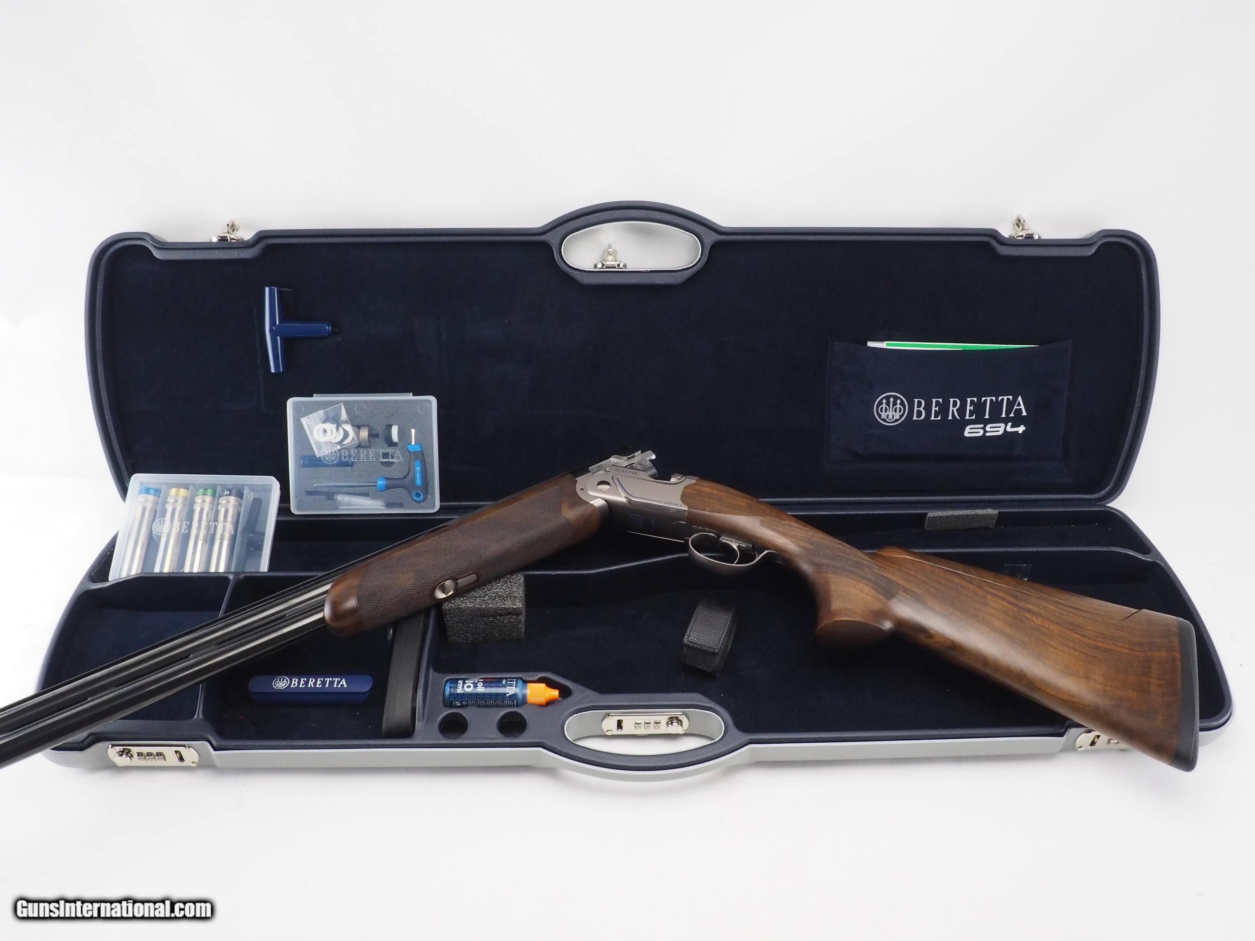 Description: Very clean, barely-used Beretta 694 Sporting with B-Fast adjustable comb and stock weight system. Gun is tight as a new gun. Metal condition is 99%. Wood shows only one handling mark (see photos), but is otherwise like-new. Comes with the factory accessory box, extra recoil pad, chokes, and an extra choke to boot. Make: Beretta Model: 694 Sporting Gauge: 12 Hand: right hand Barrel length: 32" Comb: adjustable LOP: 14 9/16" (with short recoil pad) Drop at comb: 1 3/8" Drop at heel: 2 1/8" Chokes: factory extended C, SK x2, IC, M, IM w/ choke wrench SOLD |