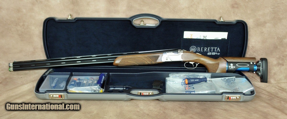 Description: New Beretta 694 TSK sporting 12GA with 32″ factory OBHP choked barrels, ventilated rib and integrated weight system. Factory blued action with polished scallops, detachable selective trigger. Factory TSK stock with beaver tail forearm. Includes factory case, chokes and tools. SOLD |