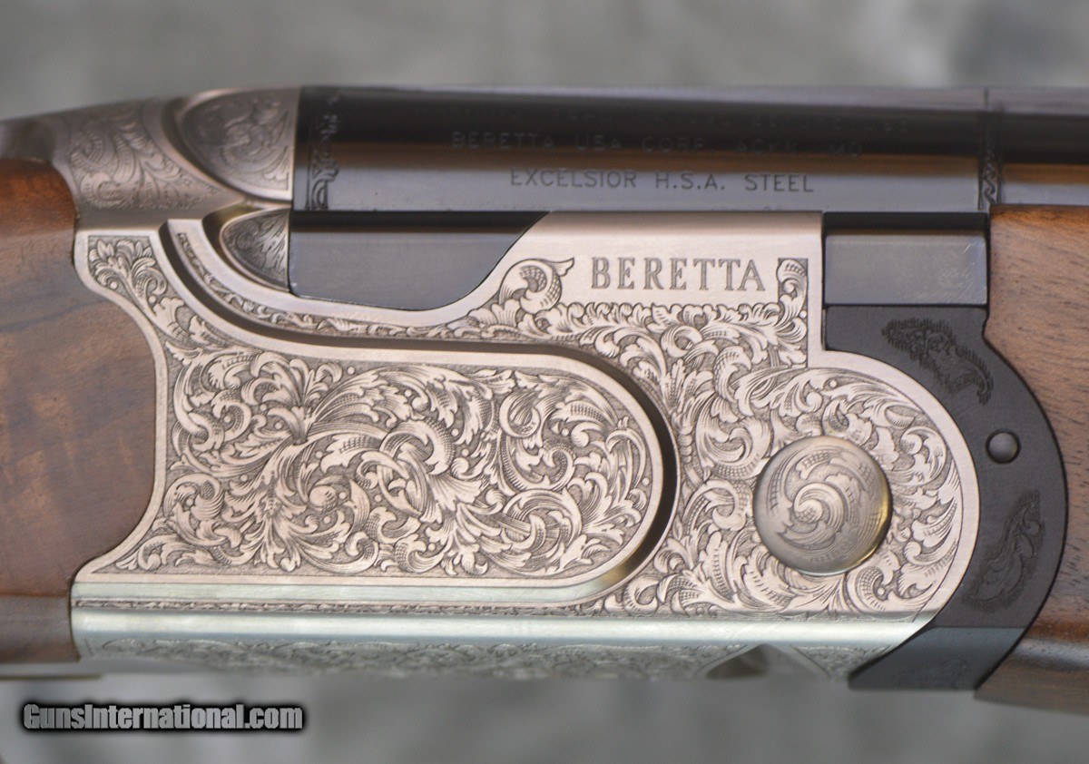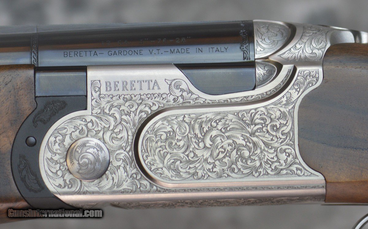 Description: New Beretta 695 Field 12GA with 28" OP-HP choked barrels, 6x6 parallel game rib. Nickel finished receiver with full coverage scroll engraving, automatic safety and selective trigger. Outstanding factory pistol grip stock to removable wooden butt plate, schnabel forearm. Includes factory case, chokes and tools. SOLD |