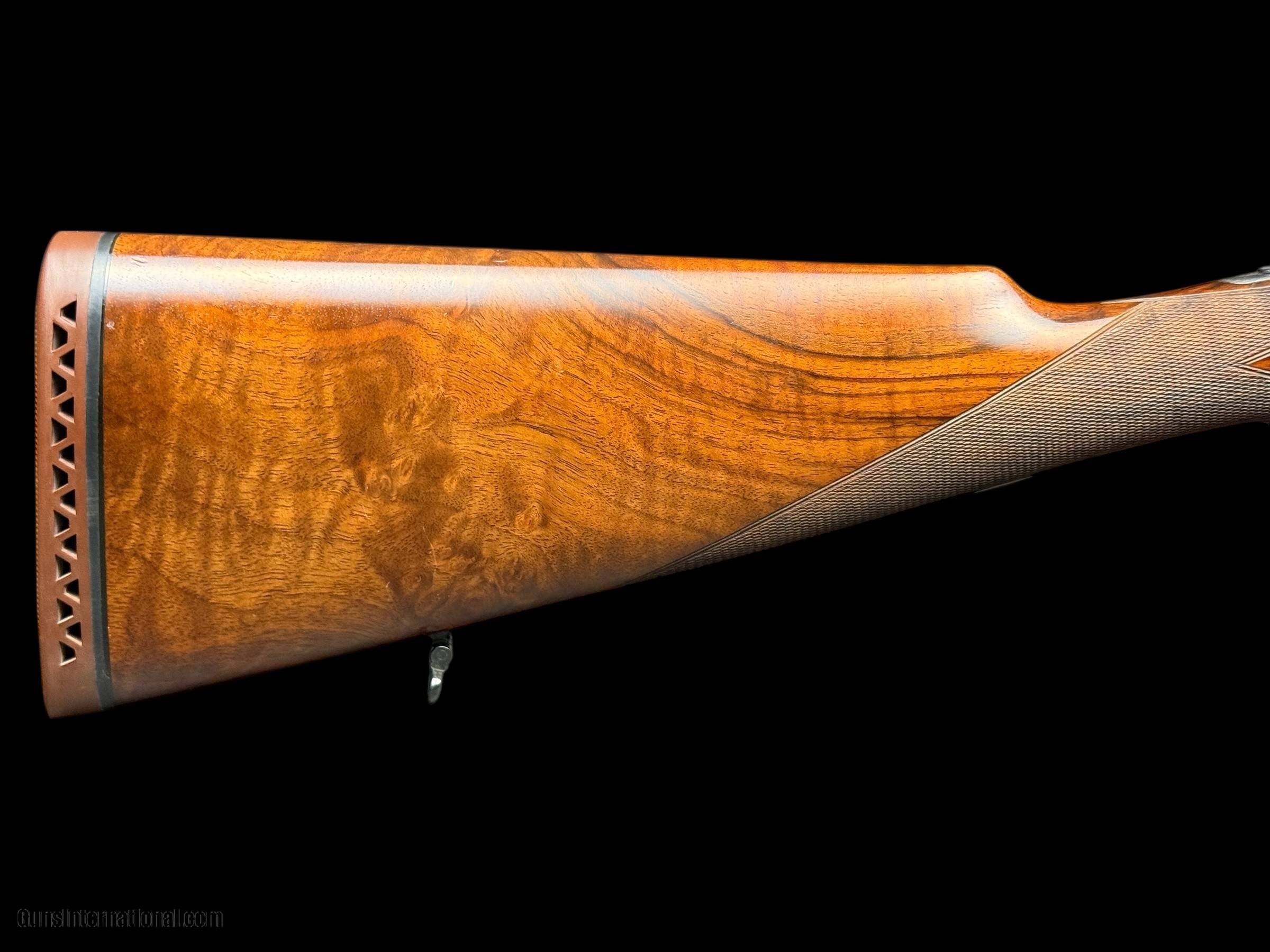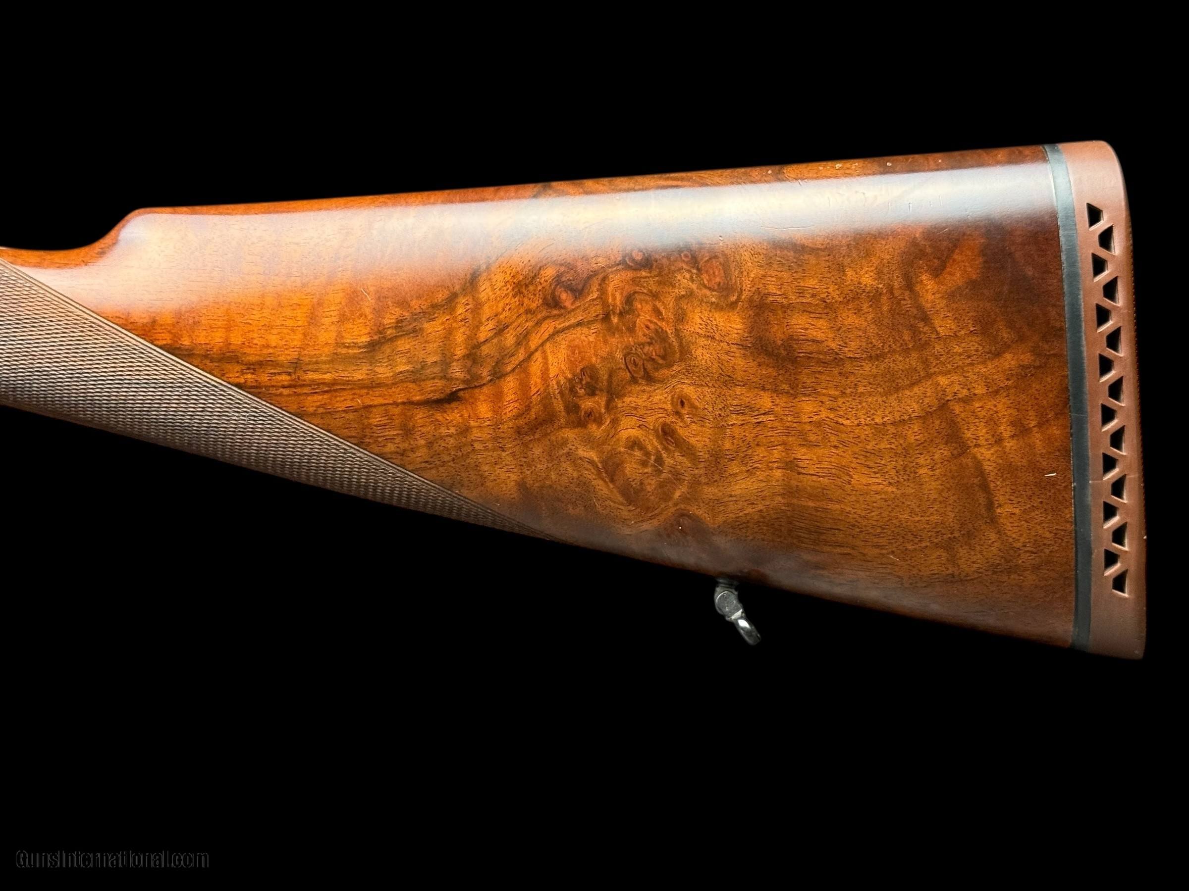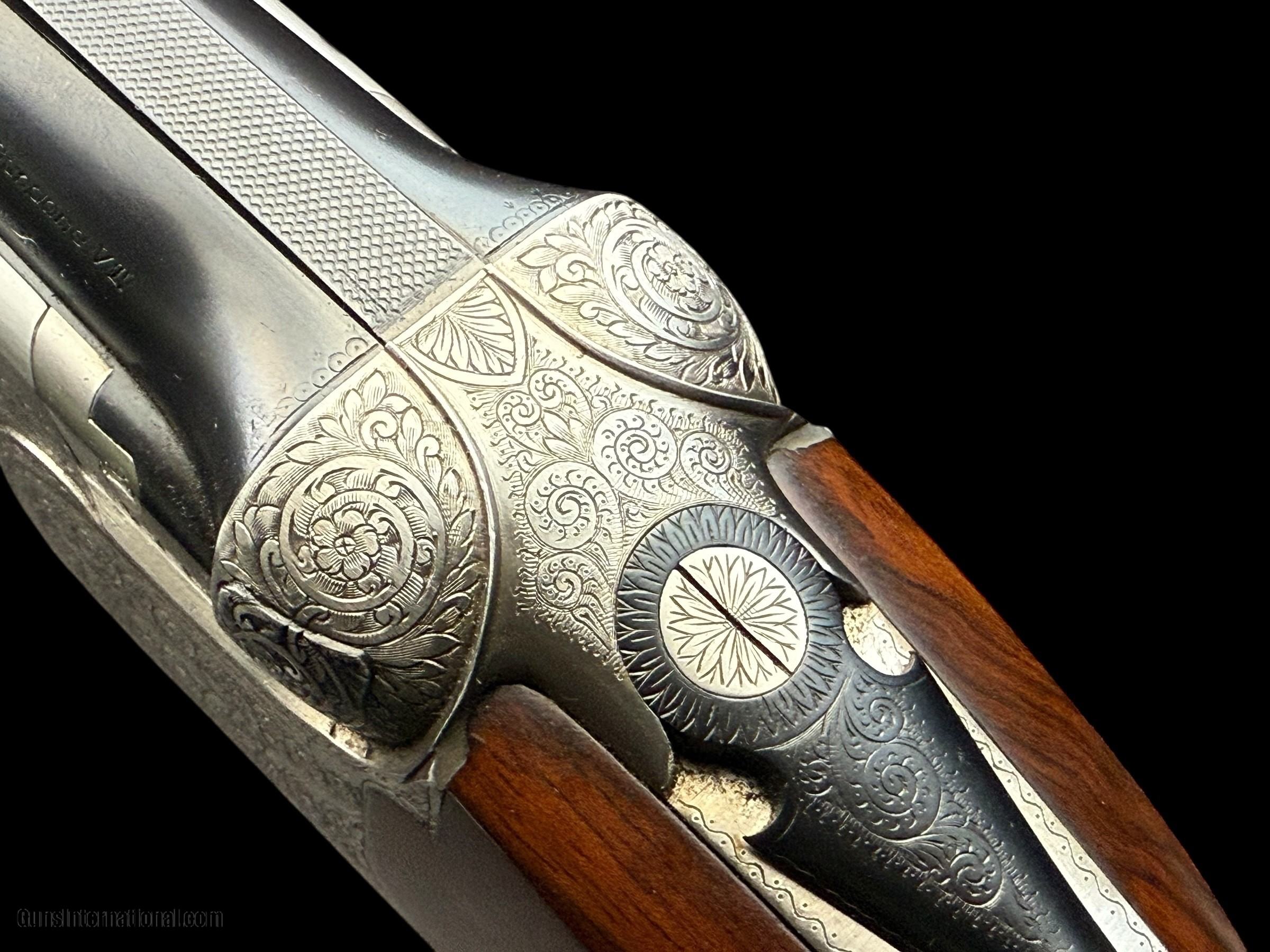 Description: BERETTA - ITALY - MODEL: AS-12-EL - SCROLL ENGRAVED BOXLOCK ACTION - GAS PORTED STRIKERS - 12G GA - 2 3/4" CHAMBERS - NITRO PROOF - 28" SOLID RIB BARRELS - CHOKES: IM / F SINGLE NON-SELECTIVE TRIGGER - NON-AUTO SAFETY - EJECTORS - NICELY FIGURED WALNUT STRAIGHT GRIP STOCK - BROWN RUBBER 1/2" BERETTA PAD - DIMS: LOP: 14 1/4" | DAC: 1 1/2" | DAH: 2 1/8" WEIGHT: 7LBS 1 OZ CONDITION: GUN IS IN EXCELLENT OVERALL CONDITION SHOWING LITTLE SIGNS OF USE. GENTLEMEN, THIS IS A BEAUTIFUL EARLY BERETTA AS-EL SHOTGUN. HARD TO FIND IN THIS CONDITION. PLEASE CALL NOW! FFL REQUIRED (C&R OKAY) FLAT $50 S/H/I CARD FEE APPLIES Curio/Relic: Yes Shotgun Gauge: 12 Gauge Manufacturer: BERETTA Model: AS-EL Serial Number: 20468 Barrel Length: 28 Chambers: 70MM / 2 3/4 Ejectors: YES Condition: EXC Metal Condition: EXC Wood Condition: EXC Bore Condition: EXC Action: BOXLOCK EJECTOR Triggers: SINGLE Proof:Nitro: YES Price: $3,850.00 Contact Seller |