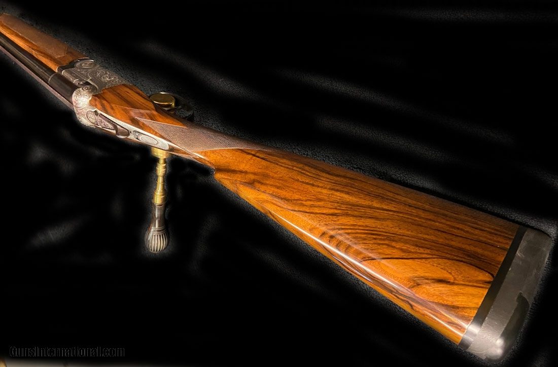 Description: Seldom seen 26"x2 3/4" gun choked IC/Mod with interesting wood in excellent overall condition. Marked Abercrombie & Fitch. Double triggers. 7 1/4 lb. 14.5 LOP through a good rubber pad, drops 1 1/2" and 1 7/8" with neutral cast. SOLD |