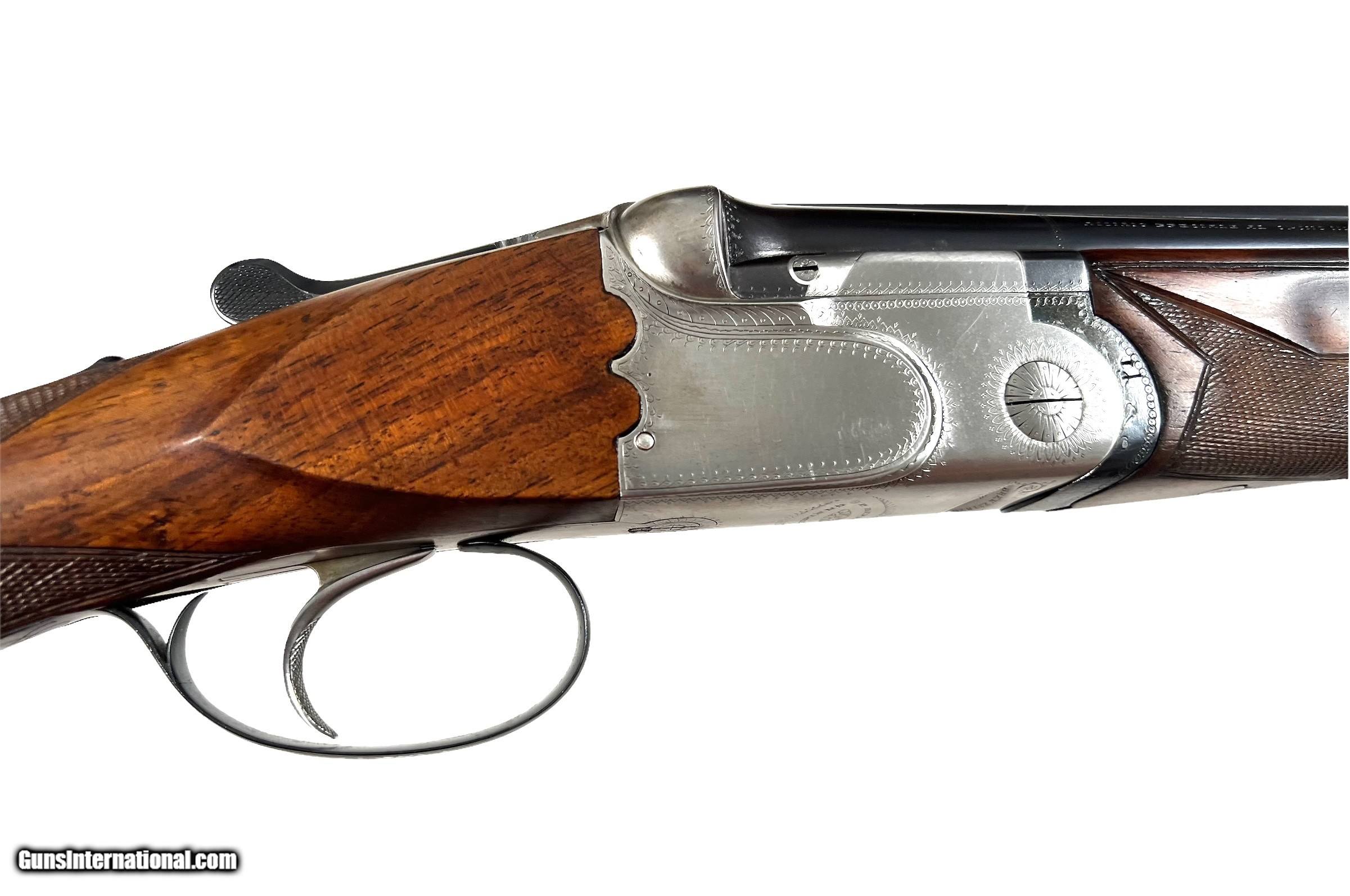 Description: Beretta AS12E with crossbolt lockup (same as SO guns) 28 1/2" ejector barrels with excellent bores Lockup is tight 2 3/4" chambers Bores .729/.731 Chokes .014/.030 light mod/full LOP 14 1/2 DAC 1 1/2 DAH 2 3/8 Neutral cast 7lbs 2oz Excellent condition AS12E with straight grip stock and single trigger. These guns are extremely hard to find in 12ga. One spot of blue wear pictured in the seventh photo. Beretta negrini case included with the gun. SOLD Curio/Relic: Yes Shotgun Gauge: 12 Gauge |