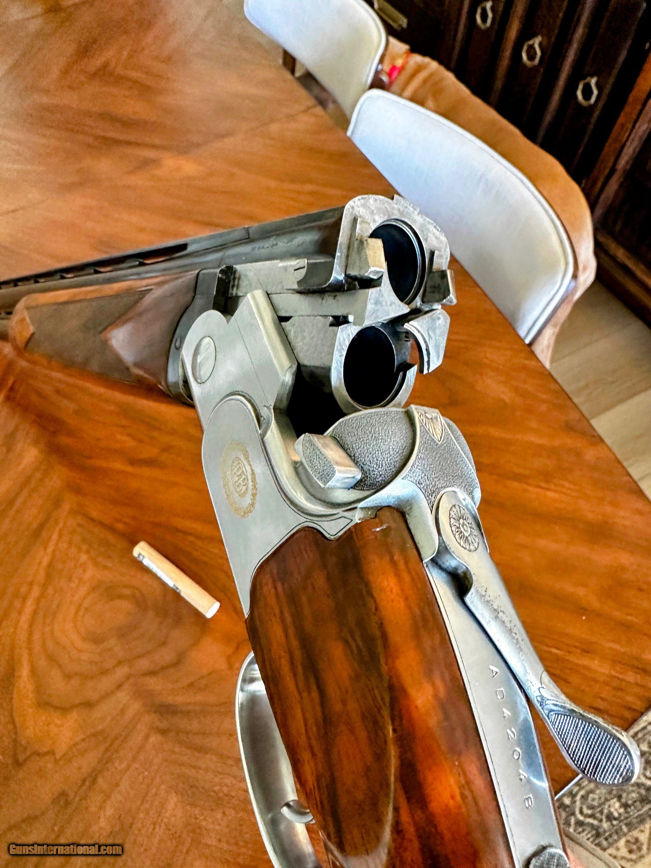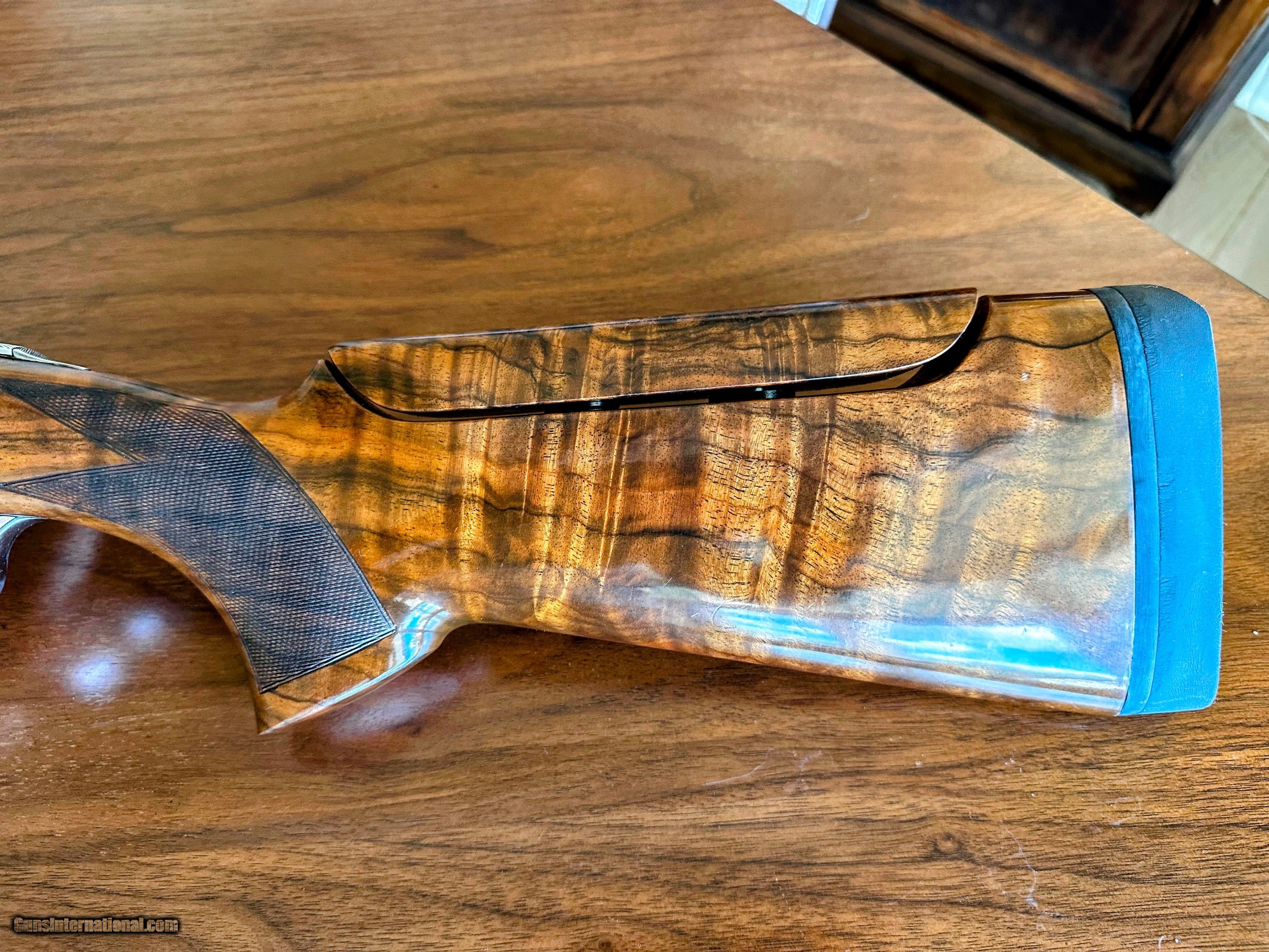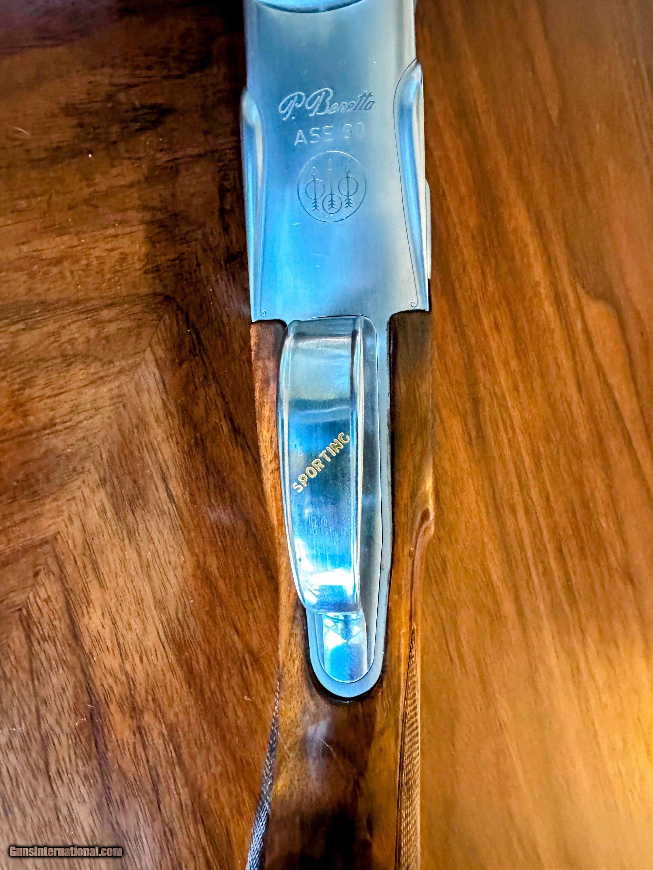 Description: 12 Gauge Beretta ASE 90 Sporting Over and Under Condition: Preowned Excellent BARREL LENGTH: 29.5" with ported bottom barrel CHOKES: 6 Briley extended - IC(2), LM(2), SK, Full Factory Negrini case STOCK: 14 1/2" LOP, 1.5" DAC , 2.5"DAH with Kick Eez recoil pad Well figured oil finished pistol grip stock with a slight right handed plam swell accompanied by a rounded beavertail forend and adjustable comb. BLUING: 90% WOOD: 95% Cross bolt locks up like a bank vault. Anyone who knows fine shotguns will appreciate the extensive hand fitting that went into these ASE 90s. SOLD Shotgun Gauge: 12 Gauge Manufacturer: Beretta Model: ASE 90 Condition: Very Good Metal Condition: 90% Wood Condition: 95% Bore Condition: Excellent Stock Drop: 1.5 Stock Comb: Adjustable Stock Heel: 2.5 Fore End: Beavertail Butt Pad: Rubber Kick Eez LOP: 14.5 Rib: Vent Chokes: 6 Briley Extended Case: Factory Negrini Item Location: Youngsville, NC |