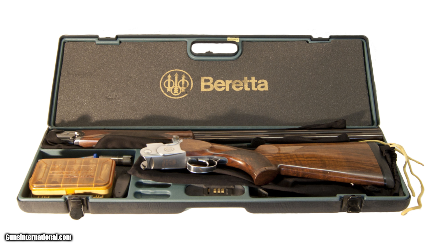 Description: Many consider the ASE to be among the finest boxlocks ever made. They came out of the Beretta Custom Shop where the SO's were made and received extensive hand work. After this model Beretta transitioned to the DT10 which was a production gun. This gun comes in its orginal factory hard case with 7 factory extended choke tubes plus a set of 4 aftermarket flush mounts. Also included is an orginal extra trigger group which is still in the original packaging and has not been in the gun. The gun is a one owner and has been shot a good bit but has been well maintained. Action is free opening. The wood is very good but has the expected scratches and handling marks but could easily be refinished to original if desired. A very good example of a classic Beretta. SOLD Serial Number: AD4209D Chambers: 2 3/4 Ejectors: Yes Condition: VG Metal Condition: VG Wood Condition: Good Bore Condition: Excellent Barrels: 29.5" Boehler Anitinit Triggers: Dropout single Gauge Info: 12G Stock Comb: 1 9/16 Stock Heel: 2 3/8 Stock Cast: Neutral LOP: 15 1/8 Rib: Ventilated Weight: 8# 6oz Chokes: Multi |
