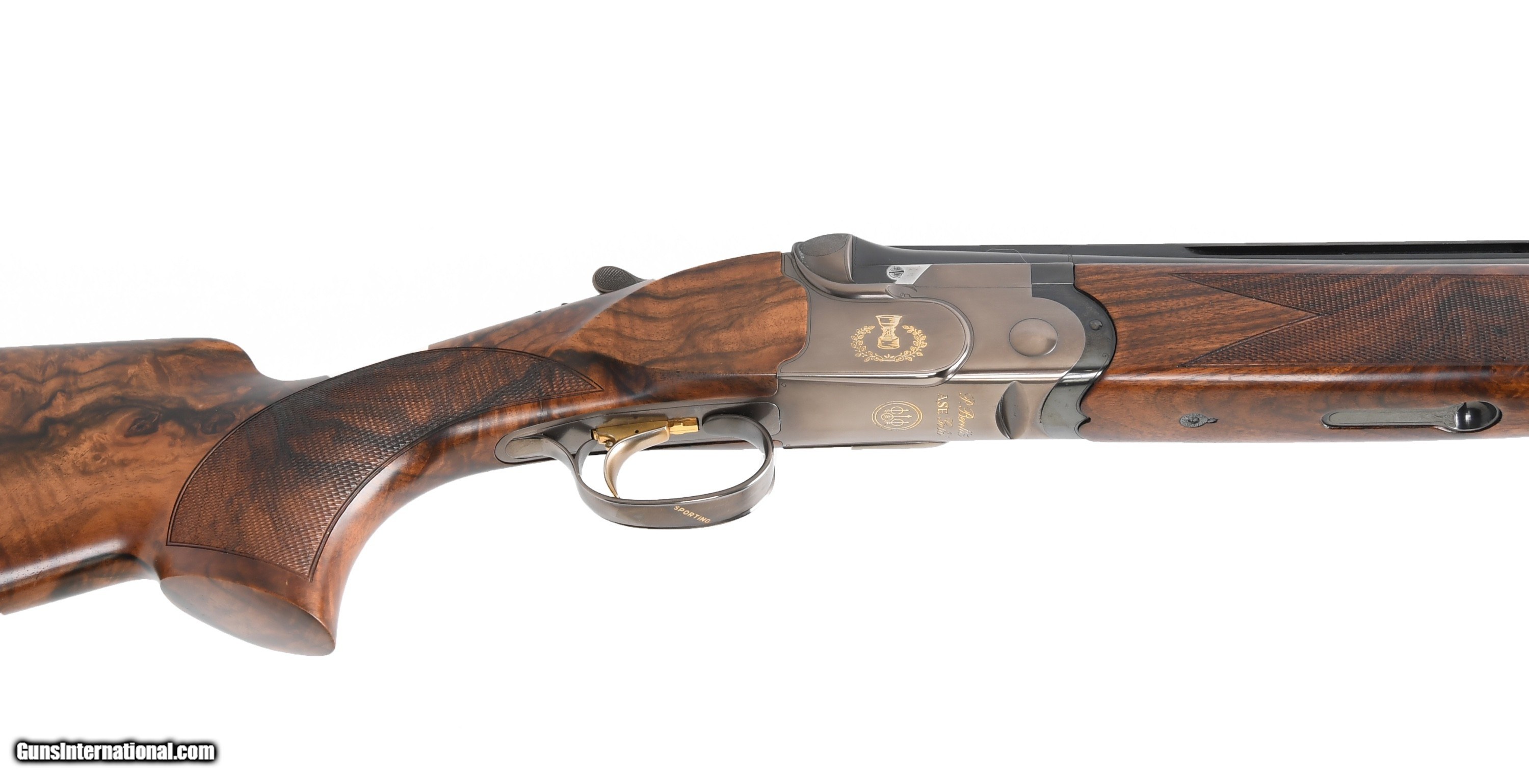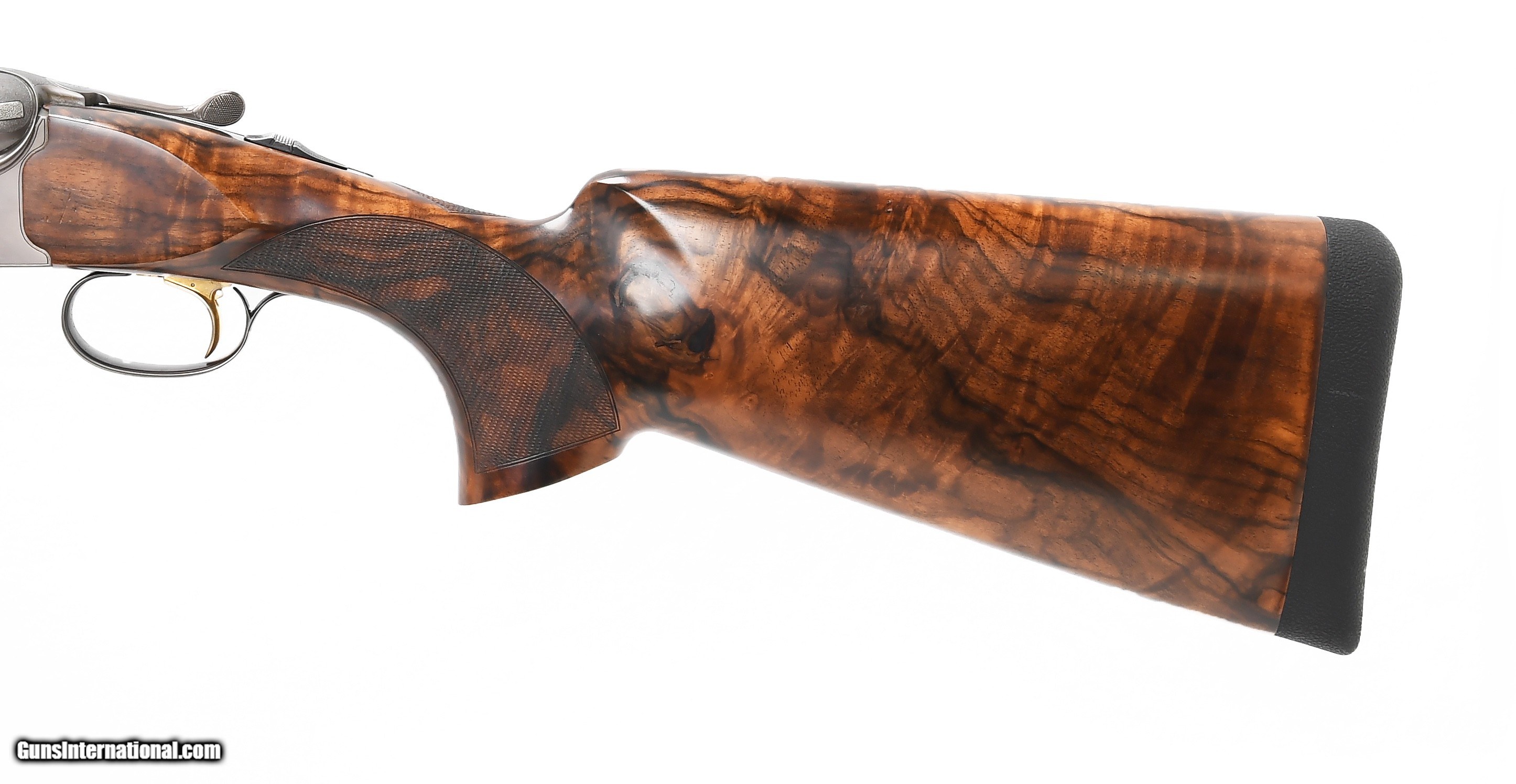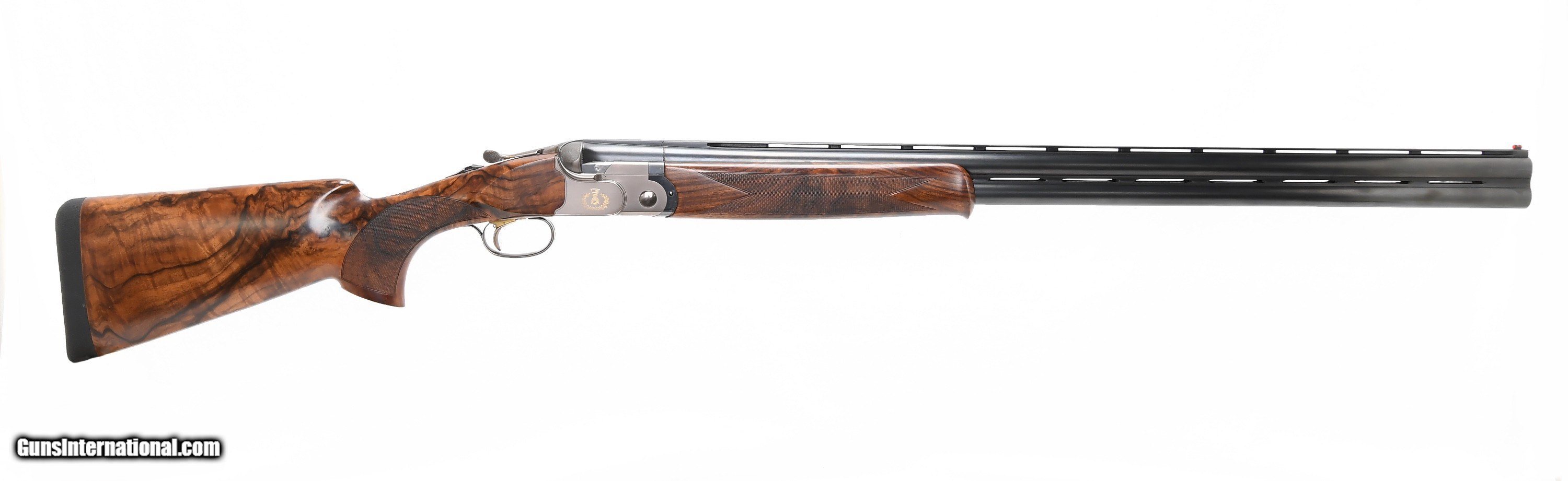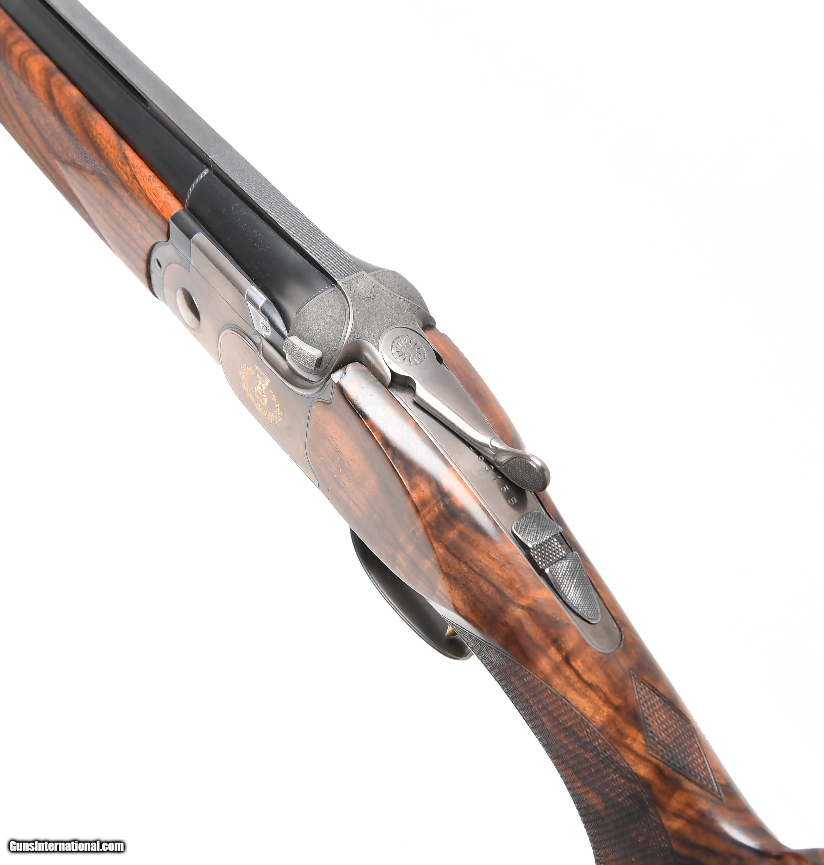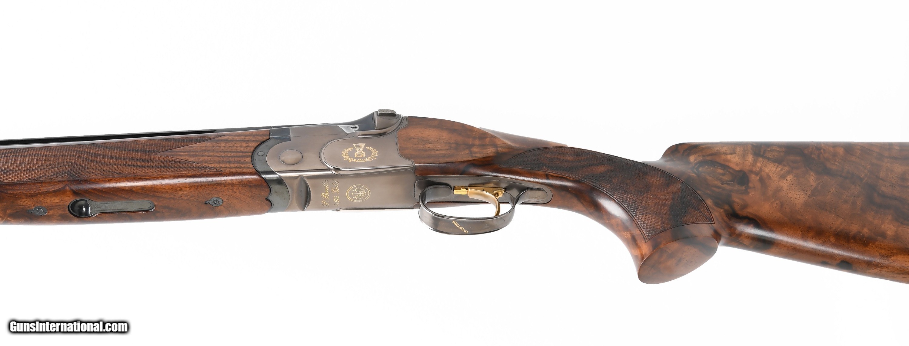 Description: Beretta ASE Gold 12 gauge O/U Sporting Clays shotgun. If you are unfamiliar with the ASE Gold then I will urge you not confuse an ASE Gold with an ASE 90! Made in 1997. The ASE Gold guns like this one came out of the Beretta Custom Shop or sometimes known as the SO shop where all of Beretta’s custom and hand fit-and-finished guns are fabricated. Everything about the ASE Gold is built to the very highest standards there are. The receiver is forged from a single block of steel. The barrels are made of the very finest steel available: Bohler Antinit Steel from Austria. The stock and forearm are exceptional. The removable, single selective trigger group is a work of art. The barrels are 30 ¾” barrels and fitted with Beretta Mobil Chokes with mirror bores of .725”. The vent rib tapers from 3/8” to 5/16” at the muzzle and is fitted with a red Bradley style from sight and no middle bead. Stock dimensions are 14 5/8” LOP over a 1” Beretta pad, 1 3/8” DAC, 2 3/16” DAH with RH palm swell and cast off 1/4” at the heel and 3/8” at the toe. The sporting forearm has a Schnabel front and a Deeley release. The really spectacular wood was upgraded by Cole Gunsmithing . The gun weighs 8 lbs. 7 oz. In the Beretta ASE Gold hard case is a parts box with 3 extra Beretta Mobil Choke Tubes and stock wrench with paperwork. Also included is a parts box with spare leaf springs, firing pins, a narrow trigger shoe (and tool), The condition of the gun is 98%+. It has been fired but not enough to really tell. There are a few fine scratches in the finish on the buttstock, left side near the receiver, see photos. These ASE Gold Sporting guns are very hard to find and when you do find one, they usually are not available for long. Oh, and once again, do not confuse and ASE Gold for an ASE 90!! $8,500.00 SN: AD6315B SOLD |