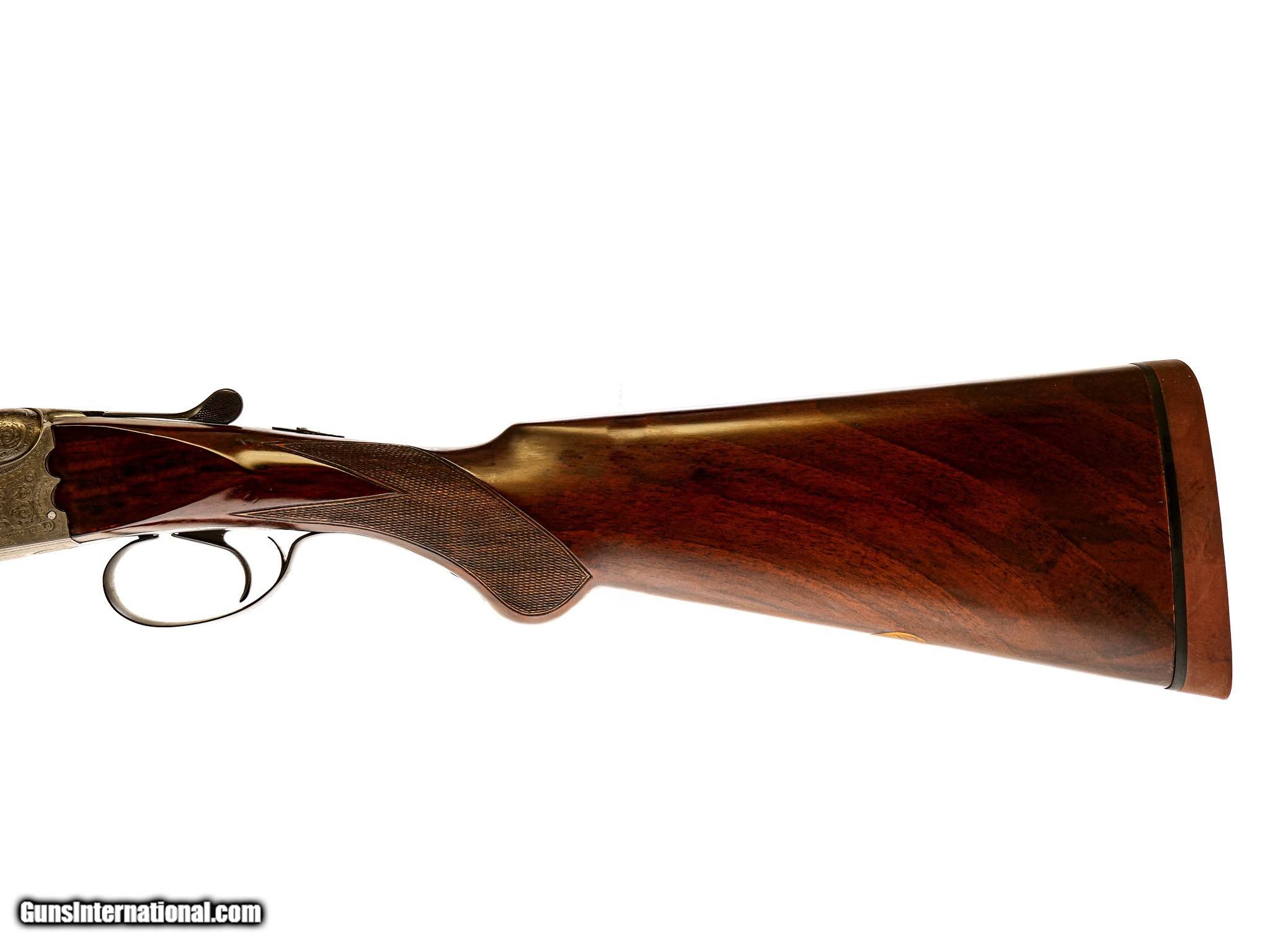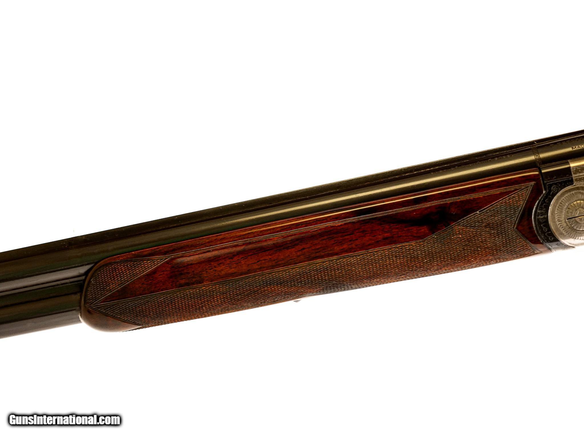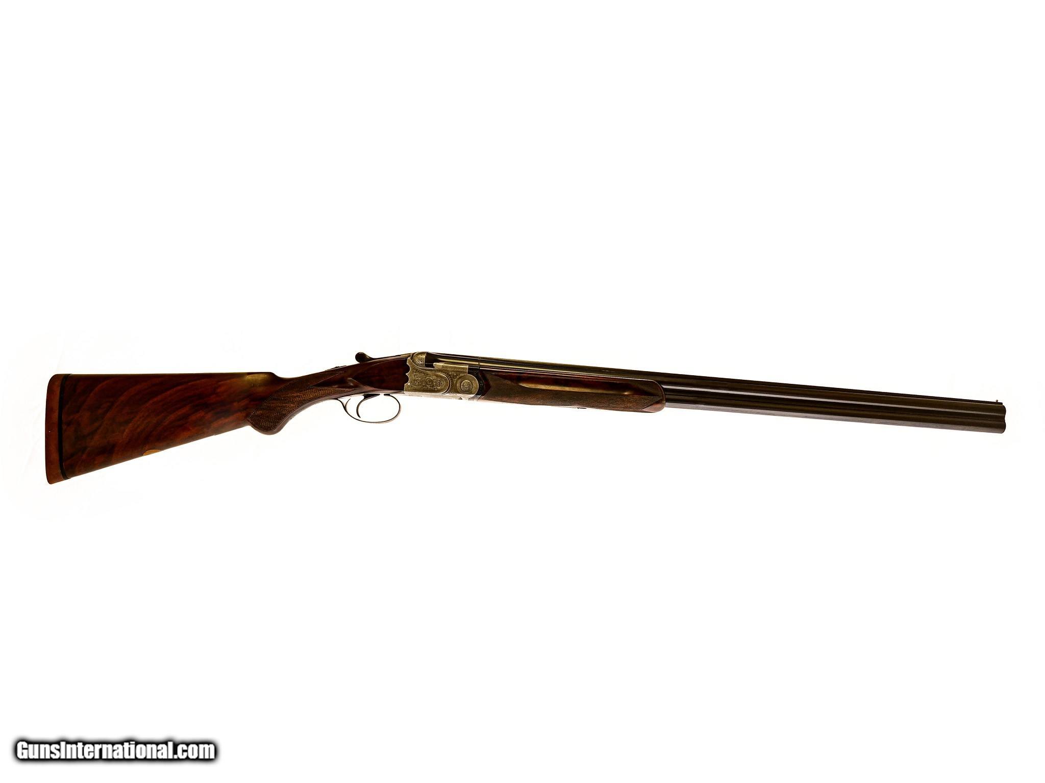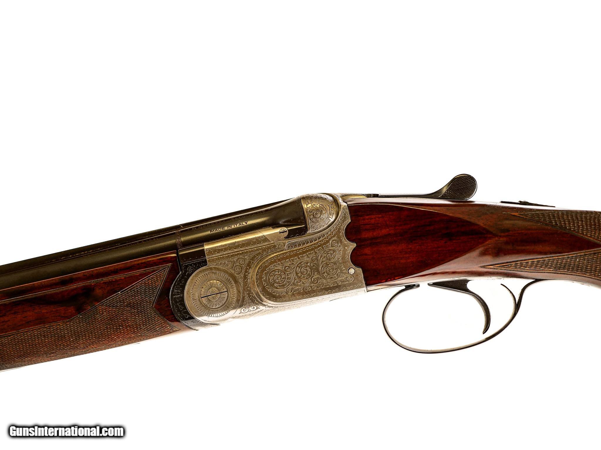 Description: Beretta - ASEL, O/U, 20ga. 27 ½” Barrels Choked CYL/IMP CYL. 27 ½" Barrels Choked Cylinder Imp/Cyl, Solid rib, 2 ¾” Bohler barrels, single trigger, semi pistol grip, small beretta pad. Beautiful scroll engraved, on a scalloped and rebated frame, screws with interlocking screws that are near perfect. Auto ejector. Nicely figured English walnut, perfect wood finish, perfect barrel blue. These are very rare, high quality Berettas made by hand in approximately the 50’s. These are highly sought after guns. Inv: 61607 5 lbs. 8 oz. 14 1/8" x 1 ½" x 2 1/2" $8,995.00 SOLD |