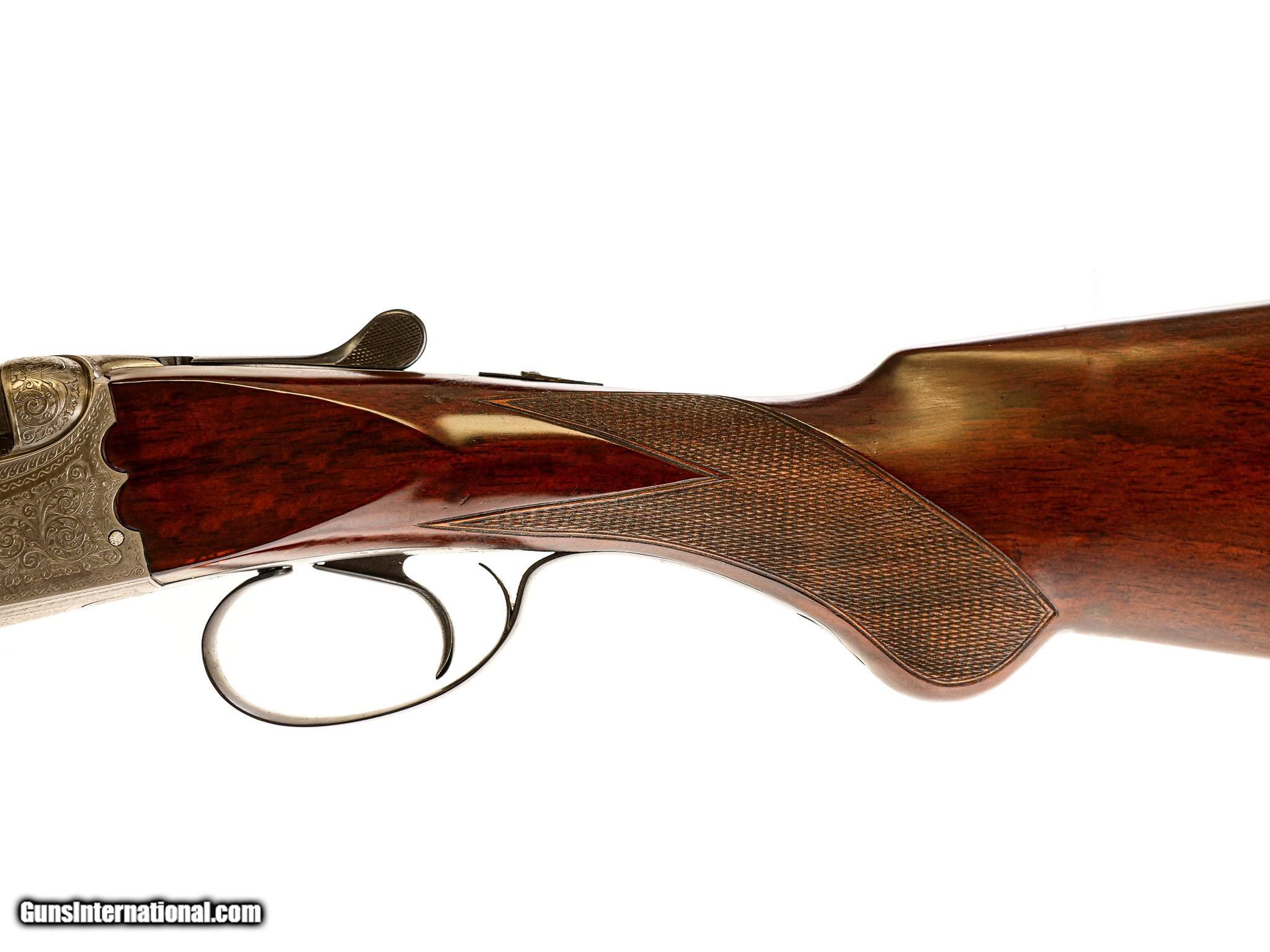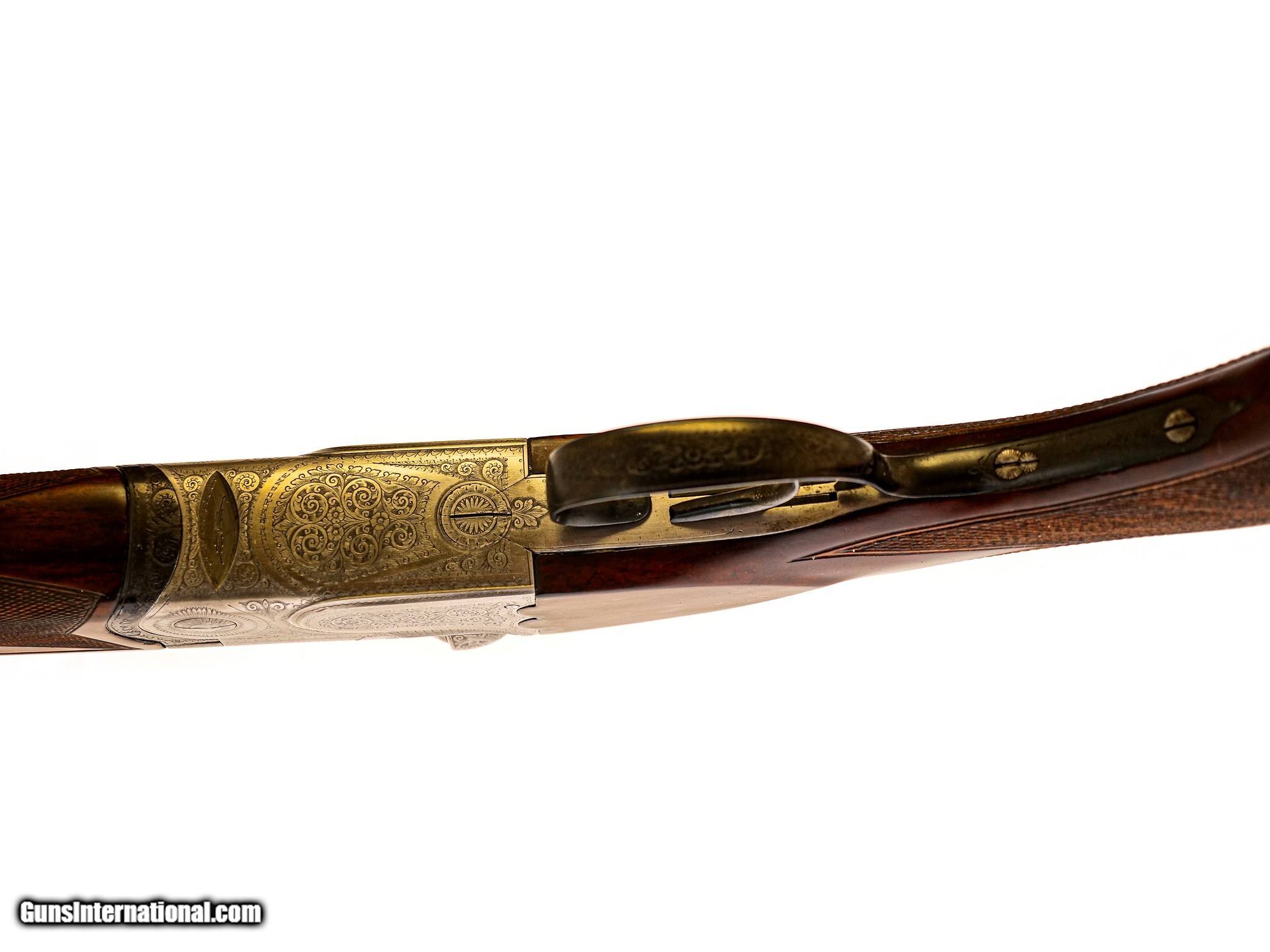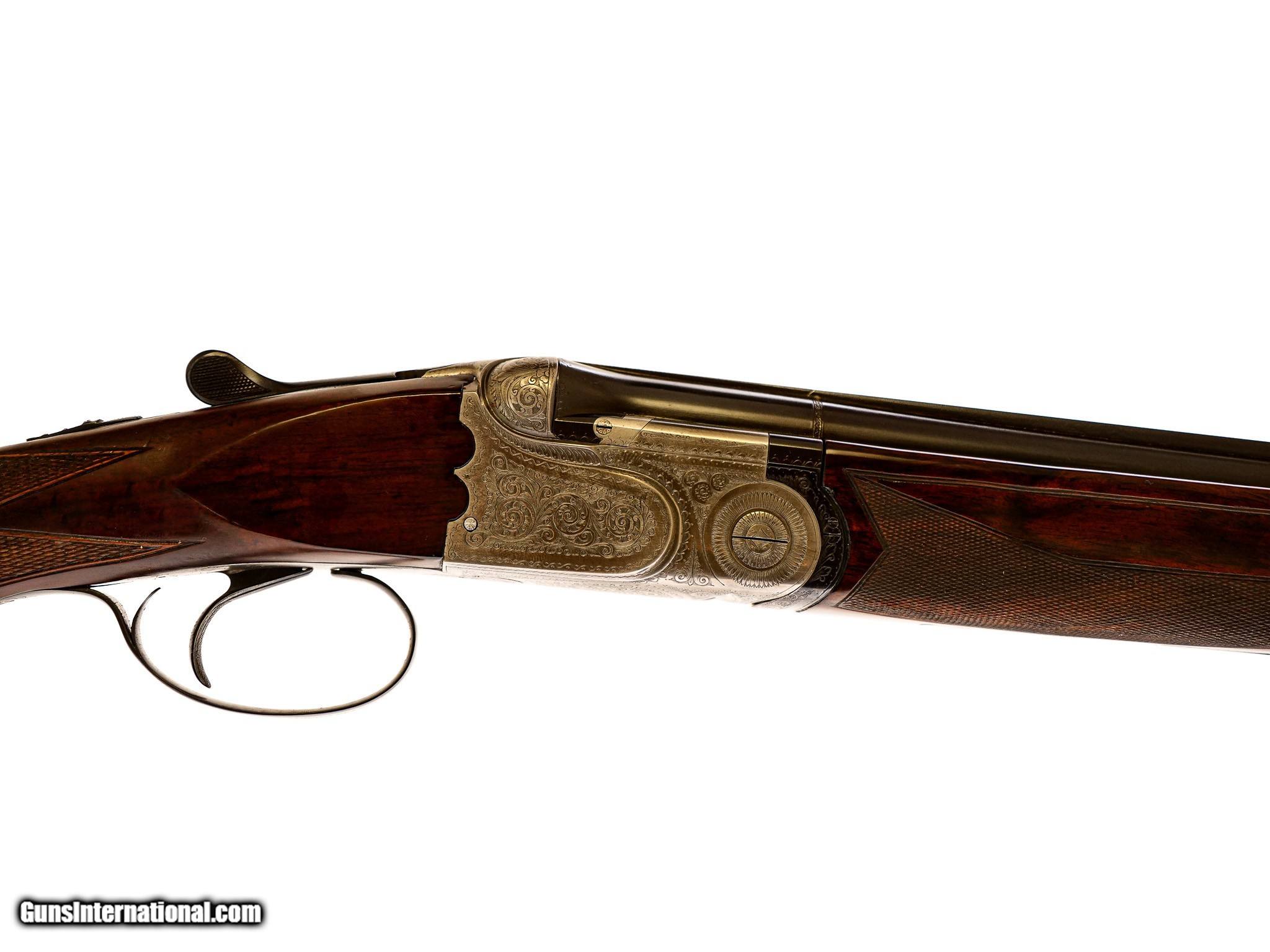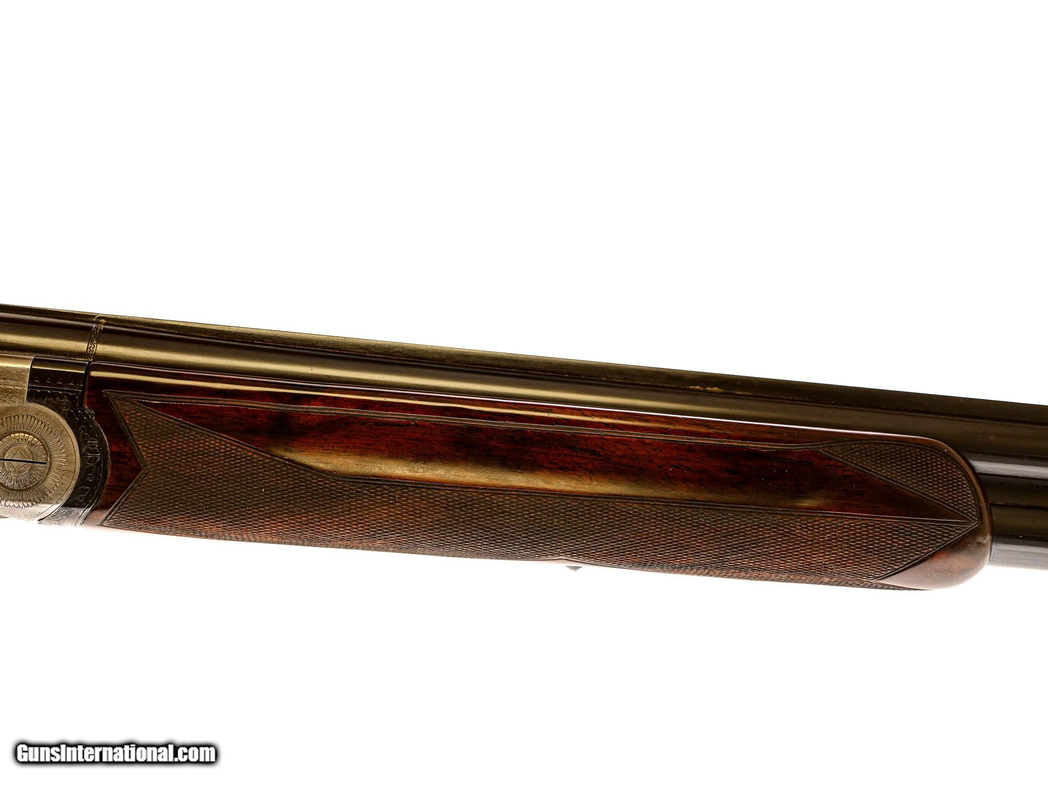 Description: Beretta - ASEL, O/U, 20ga. 27 ½” Barrels Choked CYL/IMP CYL. 27 ½" Barrels Choked Cylinder Imp/Cyl, Solid rib, 2 ¾” Bohler barrels, single trigger, semi pistol grip, small beretta pad. Beautiful scroll engraved, on a scalloped and rebated frame, screws with interlocking screws that are near perfect. Auto ejector. Nicely figured English walnut, perfect wood finish, perfect barrel blue. These are very rare, high quality Berettas made by hand in approximately the 50’s. These are highly sought after guns. Inv: 61607 5 lbs. 8 oz. 14 1/8" x 1 ½" x 2 1/2" $8,995.00 SOLD |