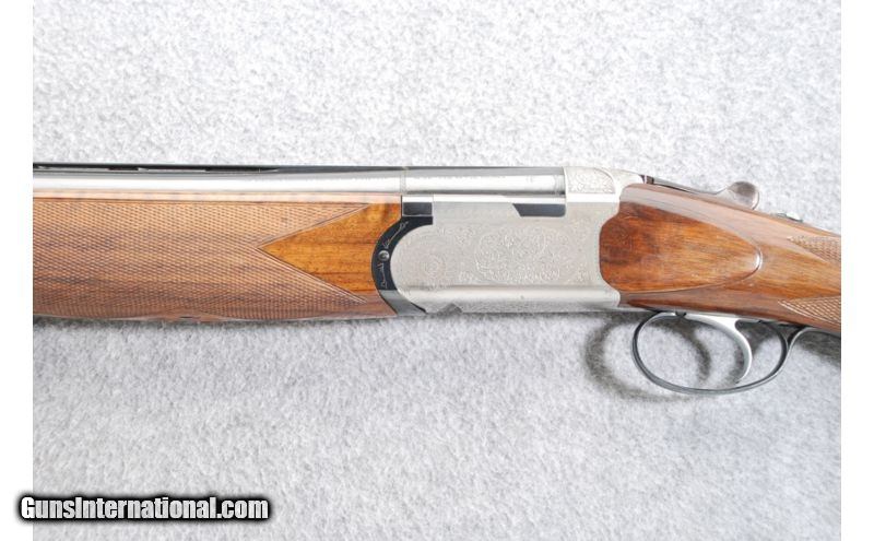 Description: SOLD Manufacturer: Late 1960s to mid 1970s. Caliber Info: 12 gauge Chambers: 2 3/4 Inches. Metal Condition: Very tight fitting over and under shotgun, and appears not to have been shot or operated much at all. Exterior finish is in very good condition overall, but there are some very minor marks. Wood Condition: Wood and original lacquer finish are in good condition overall, but there are some scratches and small dings. Bore Condition: Bright and shiny. Barrels: 26 inches. Triggers: Single selective trigger, thumb actuated. Stock: Checkered pistol grip walnut with a black plastic grip cap. Stock Dimensions: 13 3/4" Length of pull. Fore End: Checkered walnut. Butt Pad: Beretta checkered plastic plate. Weight: 6 Lbs. 14 Ozs. Sights: Ventilated rib with a small silver mid bead and a silver front bead. Chokes: Fixed: IC & Mod. Extras: None. Item Location: Boise, ID |