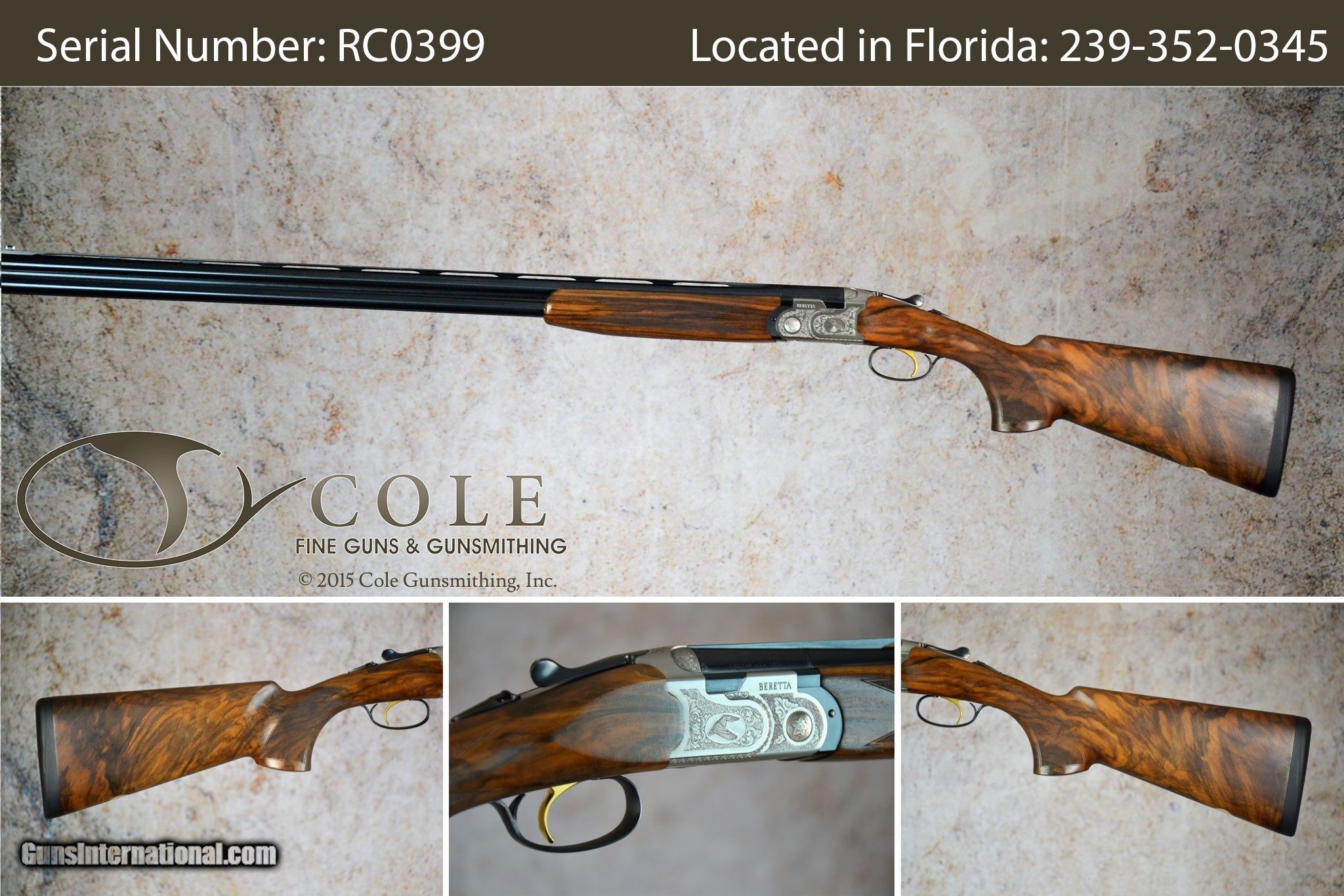 About Us: Family owned since 1985, Cole Fine Guns & Gunsmithing is the #1 Beretta Premium Dealer in the USA and a Beretta Authorized Warranty Service Center. We are a stocking Dealer for Perazzi (Authorized Factory Service Center), Blaser (Authorized Factory Service Center), Zoli (Authorized Factory Service Center), Rizzini (Authorized Factory Warranty Service Center), Caesar Guerini, Syren, Fabarm, and Benelli. We are TSK USA, importer, and distributor of TSK Stocks, The Fully Adjustable Stock.