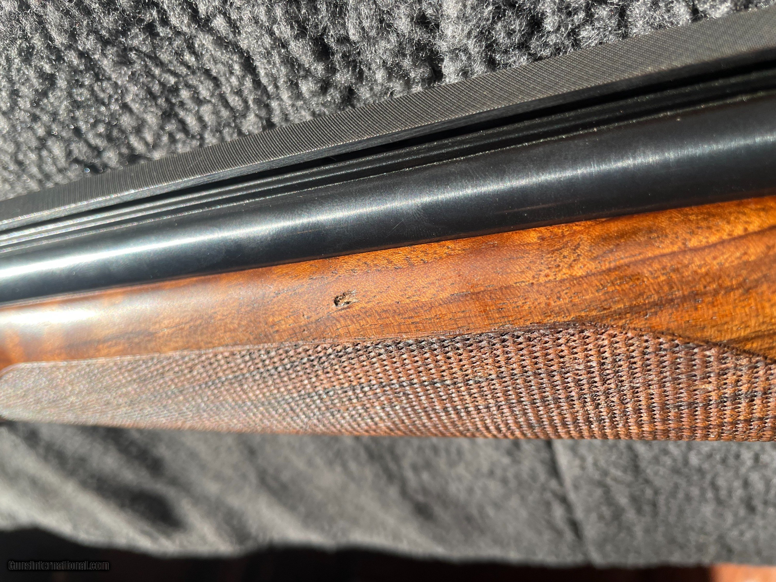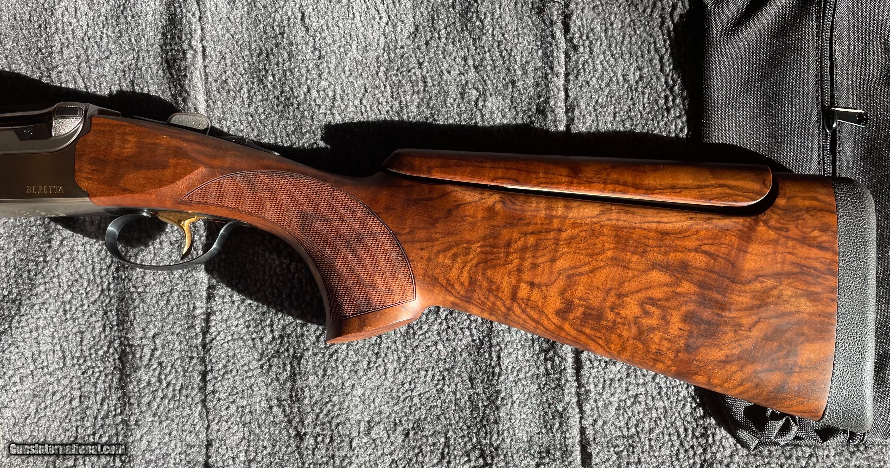 Description: This beautiful used Beretta DT-10 with a 30" O/U barrel is the perfect fit for your gun safe. This shotgun, which has been carefully handled and has very few imperfections, is fitted with the Beretta Set Adjustable Stock and includes 7 chokes (Beretta: SK, M, CL, IM, and IC, Mueller: 2x Optima U2). Even though there are no engravings on the receiver, the pristine condition of it makes this gun a beautiful piece. This gun comes with a Beretta Hard-sided and lockable case, protective gun sleeves, basic tools and spare parts, original handbooks for the gun itself and the Mueller chokes, and two snap caps. Please reach out to us directly to discuss the purchase of this beautiful DT-10! Shipping and other fees not included. SOLD Shotgun Gauge: 12 Gauge Manufacturer: Beretta Model: DT-10 Serial Number: AG6316B Bore: 12ga. Chambers: 3 Ejectors: Yes Condition: Used-Like New Metal Condition: Used- Good Wood Condition: Used- Good Bore Condition: Used- Good Barrels: 30 Barrel Type: Flat Rib Action: O/U Triggers: Single Stock: Adjustable Comb Stock Cast: Right-hand LOP: 14.75 Rib: Flat Manufacture Date: Unknown |