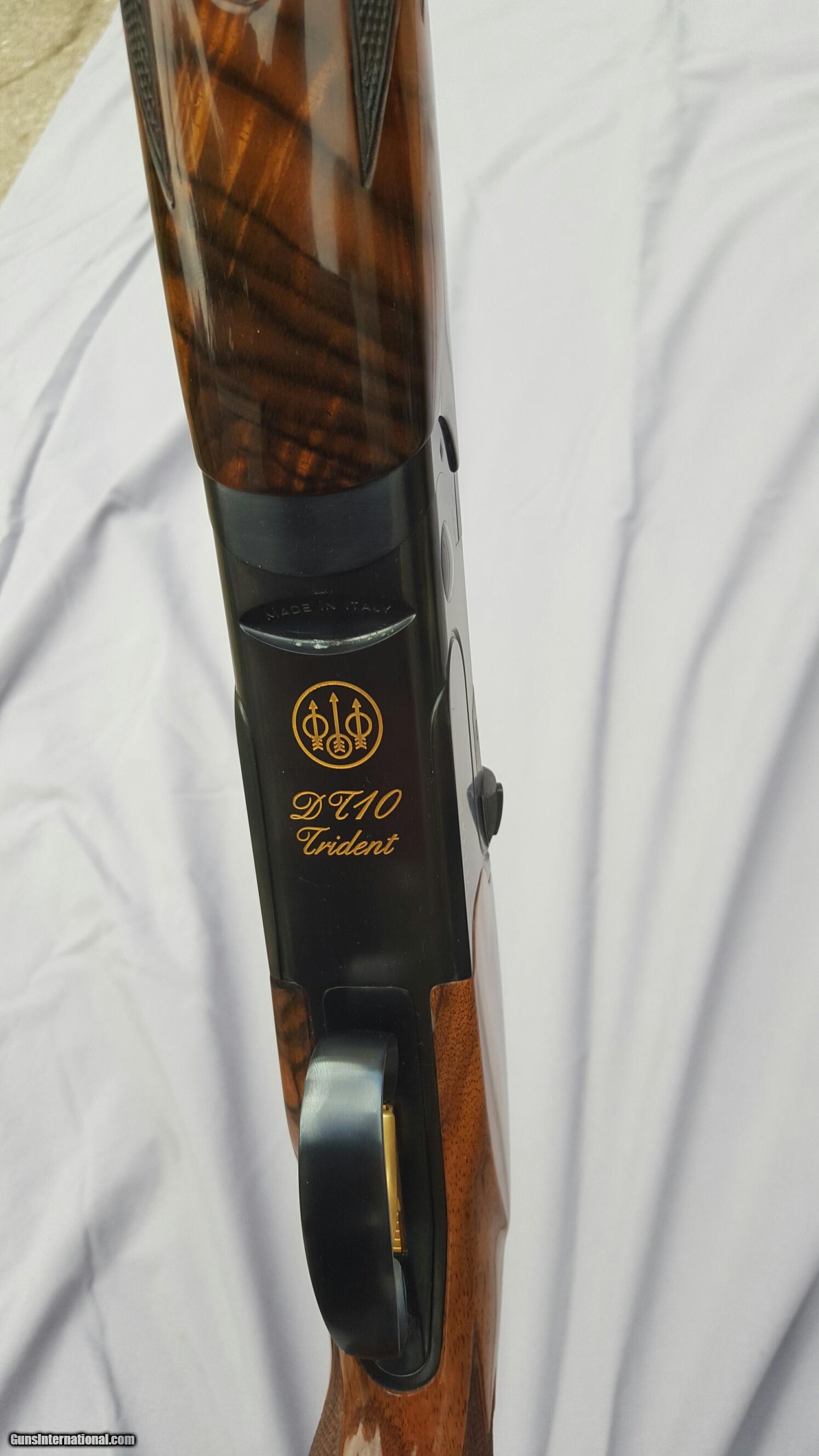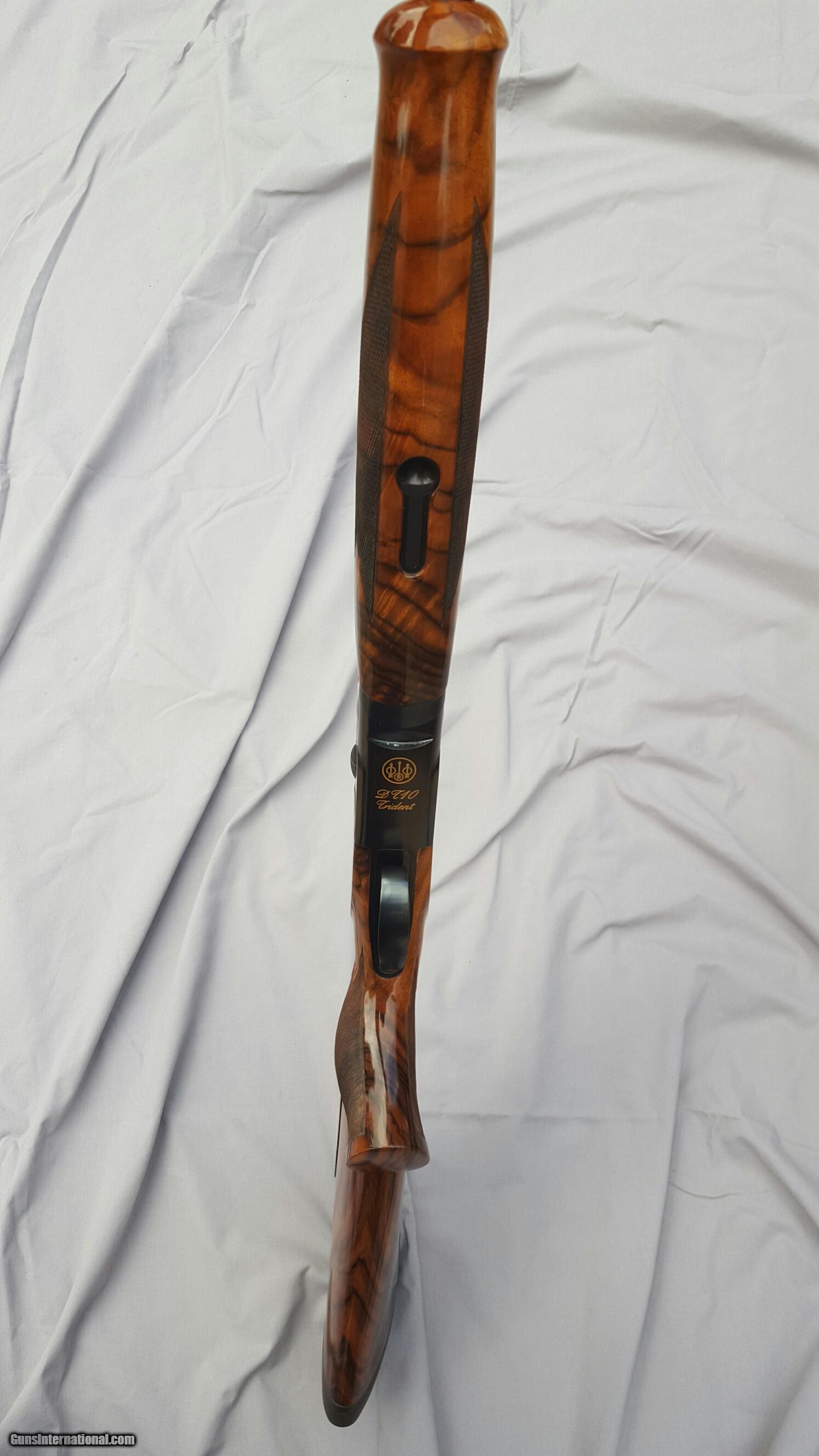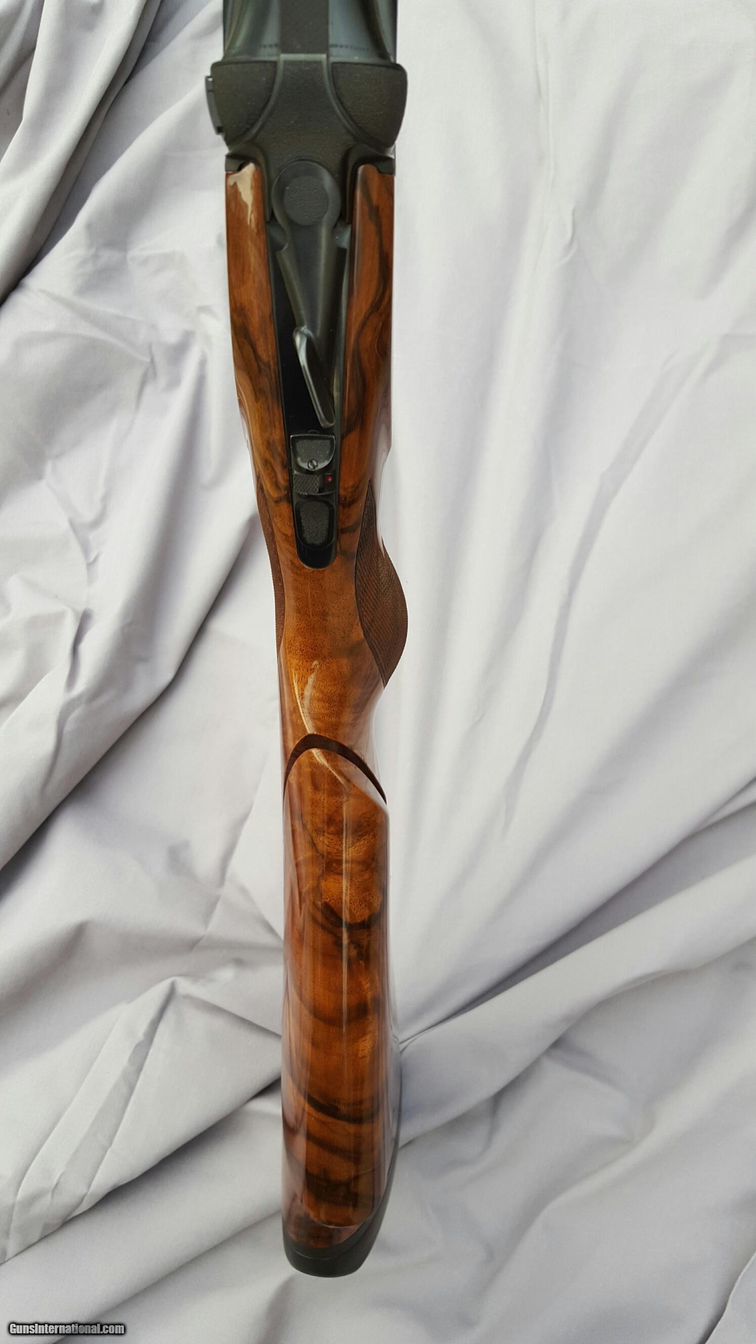 Description: Beretta DT 10, 12 gauge, 30 inch barrels, ramped rib. Wenig New American, Turkish walnut stock with adjustable comb, Schnabel forend. This is gun art. Extreme chokes. Beretta case, snap caps, pamphlets, flannel sleeves. Gun is 99% plus. Stock dimensions: DAC 1-5/8", DAH 2-5/16", Cast 1/4" offset right, Comb offset 1/8" right (slight rollover) Toe out 5/8" for right hander, 15" LOP. Right hand palm swell. Except for LOP this type of stock will fit most any right handed shooter. Stock cost over $5,000. Prettiest DT10 anywhere, people comment wherever I go shoot. Vertical pictures best depict wood color. Trade considered. SOLD |