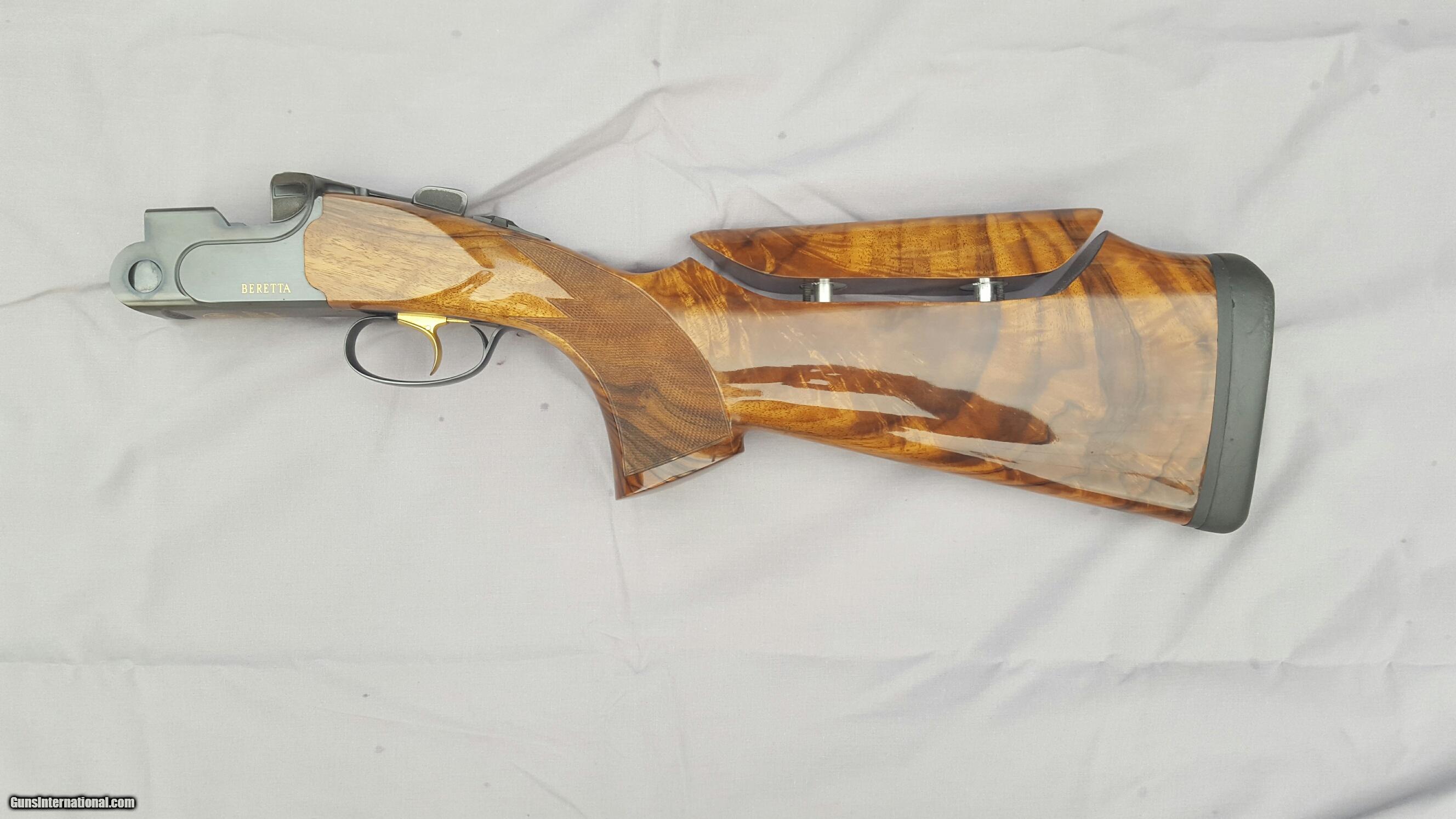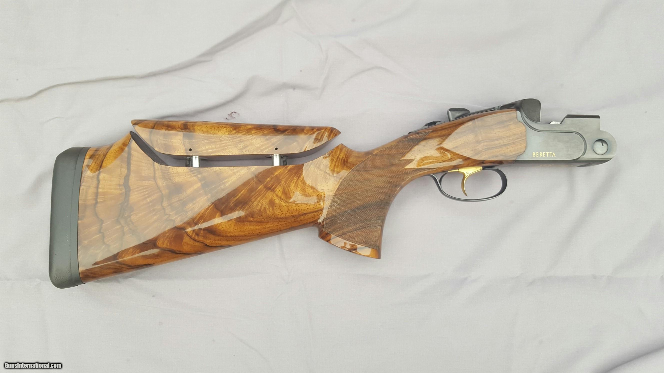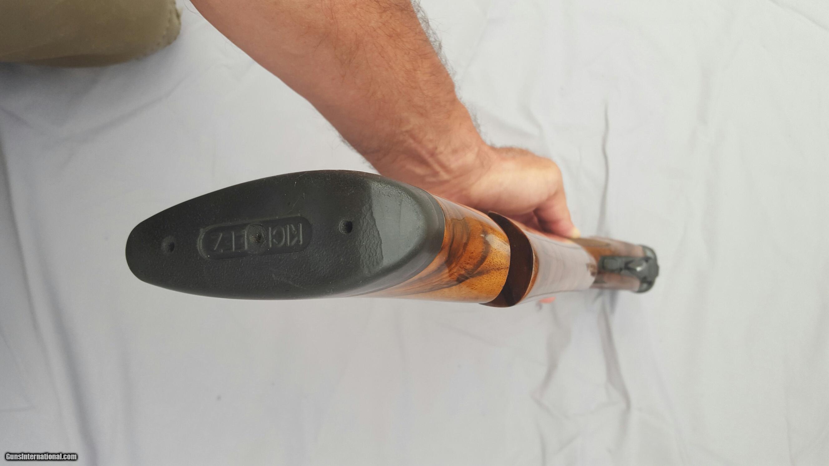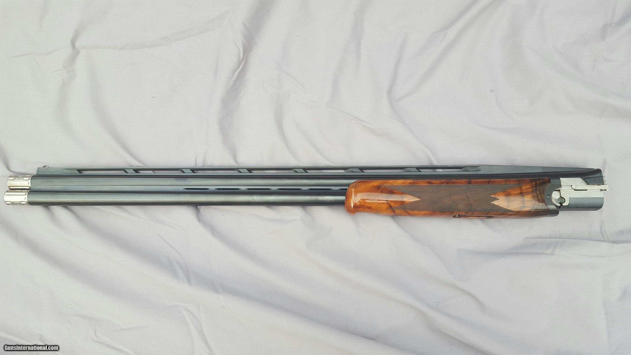 Description: Beretta DT 10, 12 gauge, 30 inch barrels, ramped rib. Wenig New American, Turkish walnut stock with adjustable comb, Schnabel forend. This is gun art. Extreme chokes. Beretta case, snap caps, pamphlets, flannel sleeves. Gun is 99% plus. Stock dimensions: DAC 1-5/8", DAH 2-5/16", Cast 1/4" offset right, Comb offset 1/8" right (slight rollover) Toe out 5/8" for right hander, 15" LOP. Right hand palm swell. Except for LOP this type of stock will fit most any right handed shooter. Stock cost over $5,000. Prettiest DT10 anywhere, people comment wherever I go shoot. Vertical pictures best depict wood color. Trade considered. SOLD |