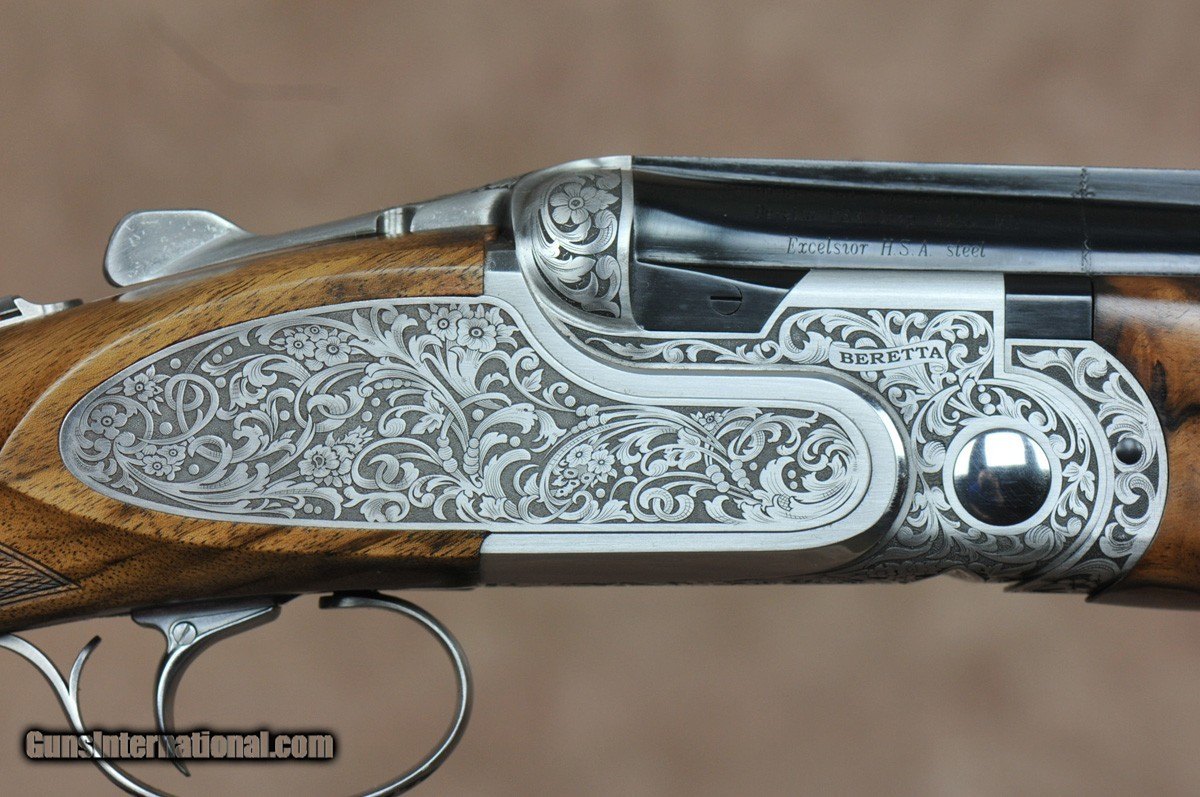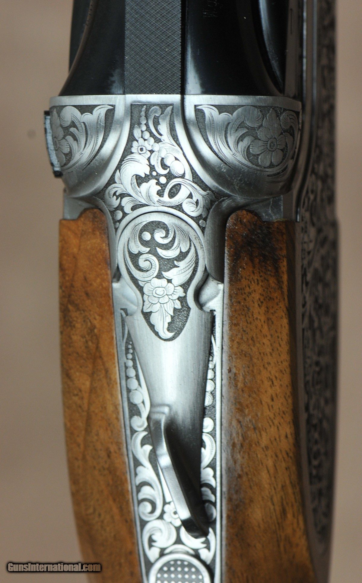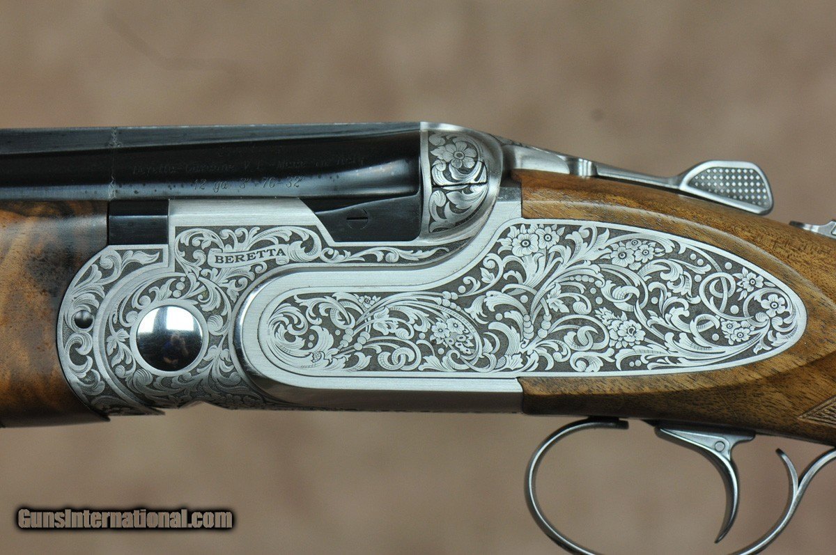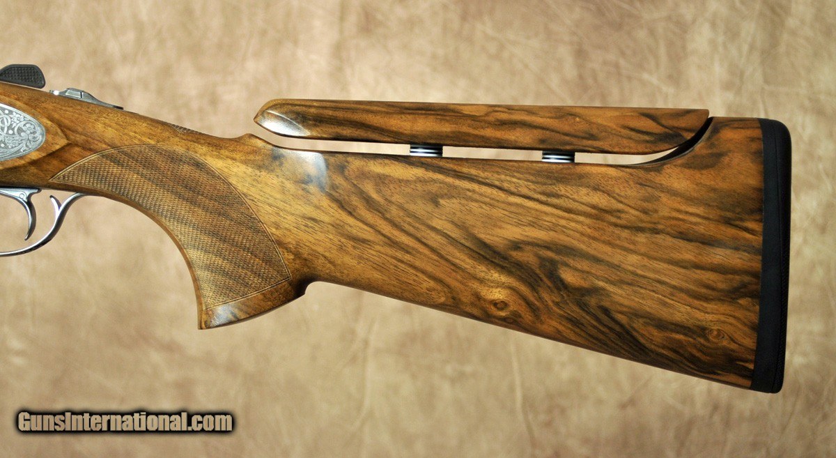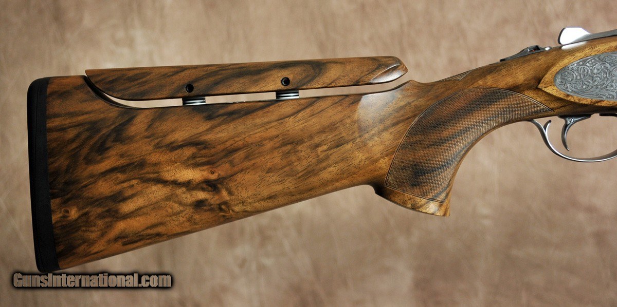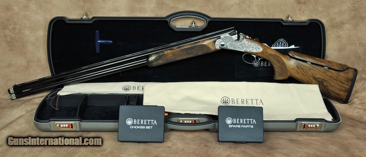 Description: New Beretta DT 11 B Fast EELL Sporter 12 gauge. Features scroll engraving by Bottega Giovanelli. 32" Steelium Pro Barrels with (5) Optima HP extended chokes. Highly figured Turkish Walnut Sporting Stock with adjustable comb. Stock dimensions are; 1 1/2"x 2 1/4". LOP 14 3/4". Over all weight 8 lbs 11 oz. Set includes factory hard case, tools and owners manual. Contact our Michigan location at 248-960-7262 for additional information. Refer to (86w) SOLD |
