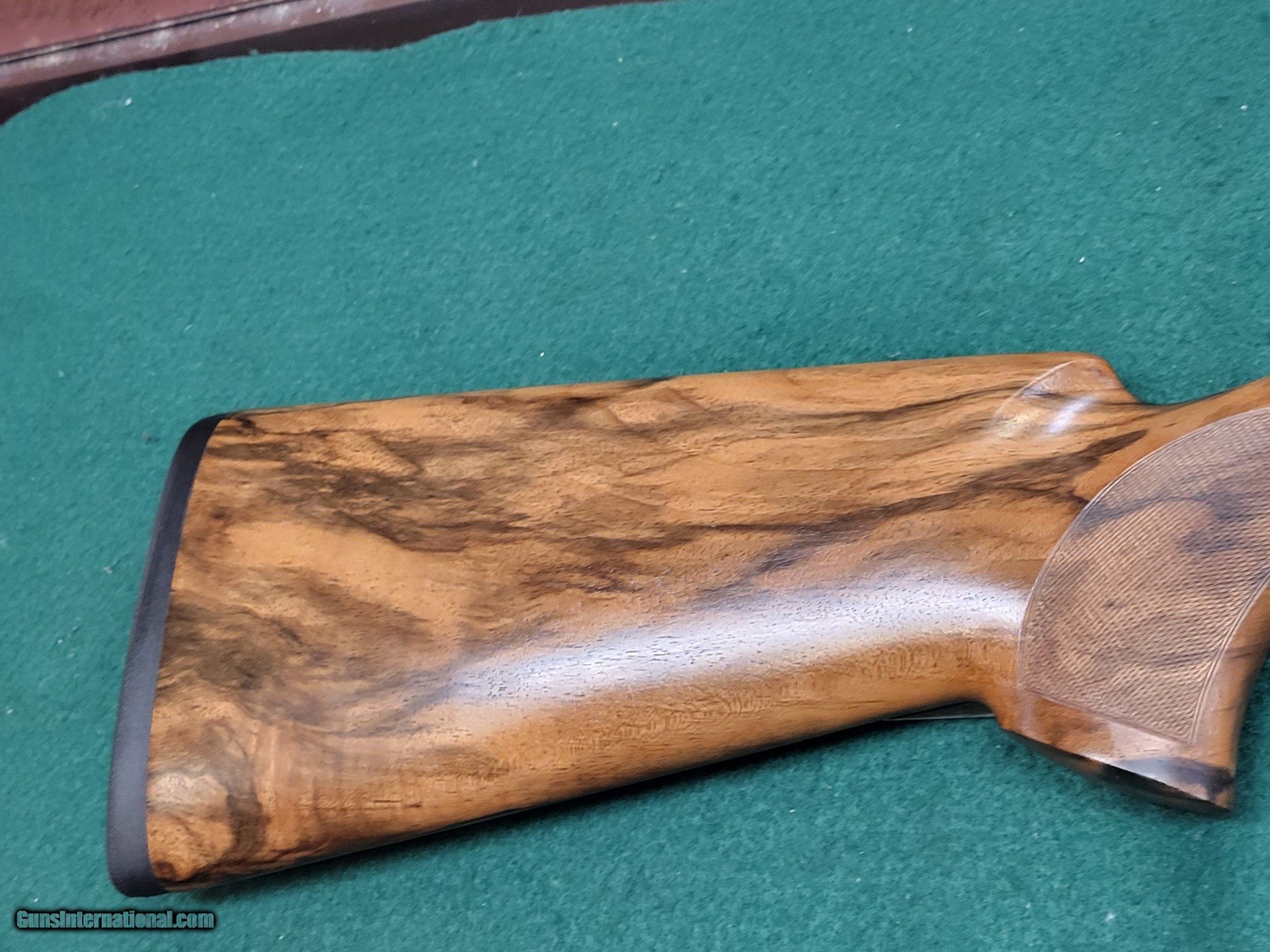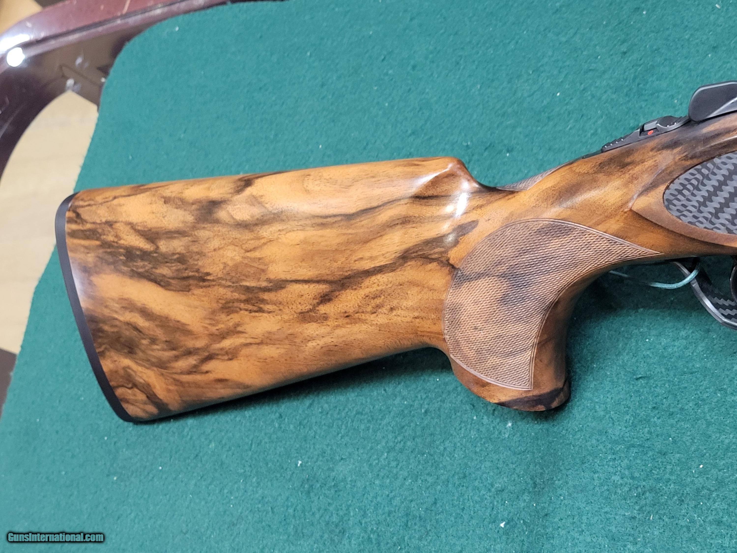 Description: DT11 Black Edition EELL: the elegance of carbon The use of carbon fibre in the world of technology, such as in sports cars, the nautical industry, aviation, high performance bicycles and watches, guarantees significant benefits in terms of being lightweight, having the ability to absorb stress, being able to maintain its shape when the object is composed of various parts, having high mechanical resilience, offering thermal insulation, and being resistant to variations in temperature and the effects of chemical agents. It was with these factors in mind that Beretta developed the Super Deluxe version of the DT11 Black Edition, taking the use of carbon fibre to levels never previously achieved. The top rib, the entire trigger group (trigger plate + trigger guard) and the side-plates of the DT11 Black edition EELL are in carbon fiber material, with a typical twill plot. The pistol grip stock , modelled using grade 4 walnut wood, is available in adjustable or fixed version, with 35/56 and 38/60 Drop at Comb for sporting and 29/39, 32/42 and 34/44 for trap, each both right-and left-handed. There is of course the headed stock version. The recoil pad, as usual for our shotguns, is made in Microcore® for a perfect grip on the shoulder. The oil finish ensures greater water resistance for the wood. The hand-made checkering (step 1) provides a more refined look and a firm, comfortable grip. The black receiver (43mm wide) of the DT11 Black Edition EELL also ensures greater stability during shooting and includes the closing system with the unmistakable trapezoidal locking shoulders and the cross-bolt locking system. , typical of the DT Beretta series. The iconic design of the long carbon fibre side plates alternates with the polished surfaces of the moldings and side pins, giving the DT11 Black EELL a strong personality. The carbon fibre removable trigger group of the DT11 Black Edition EELL can be rapidly disassembled and replaced in case of necessity between one platform and the other. The trigger is adjustable with a total excursion of 9 mm, allowing the shooter to always find the perfect finger support. The hammer leaf springs guarantee accurate and immediate shot. The sporting version has the single selective trigger, built into the safety lever. Steelium PRO barrels: Steelium is the technology used in the production of the barrels that allows the tri-alloy Beretta steel to become a real ballistic jewel, thanks to a unique manufacturing process. Deep drilling, cold hammer forging and vacuum distension endow the steel with mechanical characteristics ideal for superior ballistic performance. The Steelium PRO barrels boast an internal profile of the tubes with a progressive triple cone, , that is 240 mm from the muzzle and depending on the barrel length can vary from 450 to 491 mm in length. The benefits are: • less recoil • more dense and compact patterns • greater rapidity and precision in executing the second shot The matte finish of the barrels ensures the absence of reflections of any type and helps you to concentrate solely on the target, without distractions. The special internal geometry of Optima-Bore HP barrel is designed to offer high performance even with High Performance steel shot. The shot pattern remains uniform thanks to the five interchangeable Beretta Optimachoke HP chokes, included with the sporting version. The top rib made of carbon fibre, extremely lightweight and durable, ensures a perfect swing required in each discipline even in the most extreme shooting conditions, thanks to the assembly system without welding. The DT11 Black Edition EELL ensures the best possible distribution of mass and thanks to the wider steel receiver and the weight balancing system B-Fast Pro, enables a customised optimal balance and well controlled grip without losing cast speed. Weights in the stock: 20 and 40 grams of weights can be inserted to customise the gun balance. Weights on the barrel: as already in the DT11 Black edition, the EELL version is also equipped with a set of 10 and 5 gram weights that with magnets can be positioned under the fore-end, to adjust the gun's centre of gravity The DT11 Black Edition EELL also offers the B-Fast Barrel Balancing System, an additional weight system to clasp on the side ribs, designed and tested in collaboration with the champions of the Beretta Team, to ensure top performance shooting. Thanks to the new assembly system on the side ribs - using two practical small buttons - the weight is distributed along the entire length of the barrel, improving the gun’s swing and reducing the muzzle rise, without causing noises or vibrations while shooting. In addition, their design was calculated to adjust to the side ribs perfectly without the risk of losing them or disturbing visibility. The DT11 Black Edition EELL offers numerous accessories including: • ABS case • B-Fast system (for barrels, fore-end and stock) • Set of interchangeable front sights red and white • pair of snapcaps • Stock disassembly key • 5 choke set with key - for the sporting version only. • Barrel sock plus stock sock • Two Beretta stickers, one for the barrels SOLD Shotgun Gauge: 12 Gauge Manufacturer: Beretta Model: DT-11 Black Edition Serial Number: DT17715W Chambers: 3 Ejectors: Automatic Condition: Brand New Wood Condition: EXCELLENT Action: O/U LOP: 14 11/16 Weight: 8lb - 3oz Chokes: 5 separate chokes Case: Hard locked case Item Location: New York (NY) |