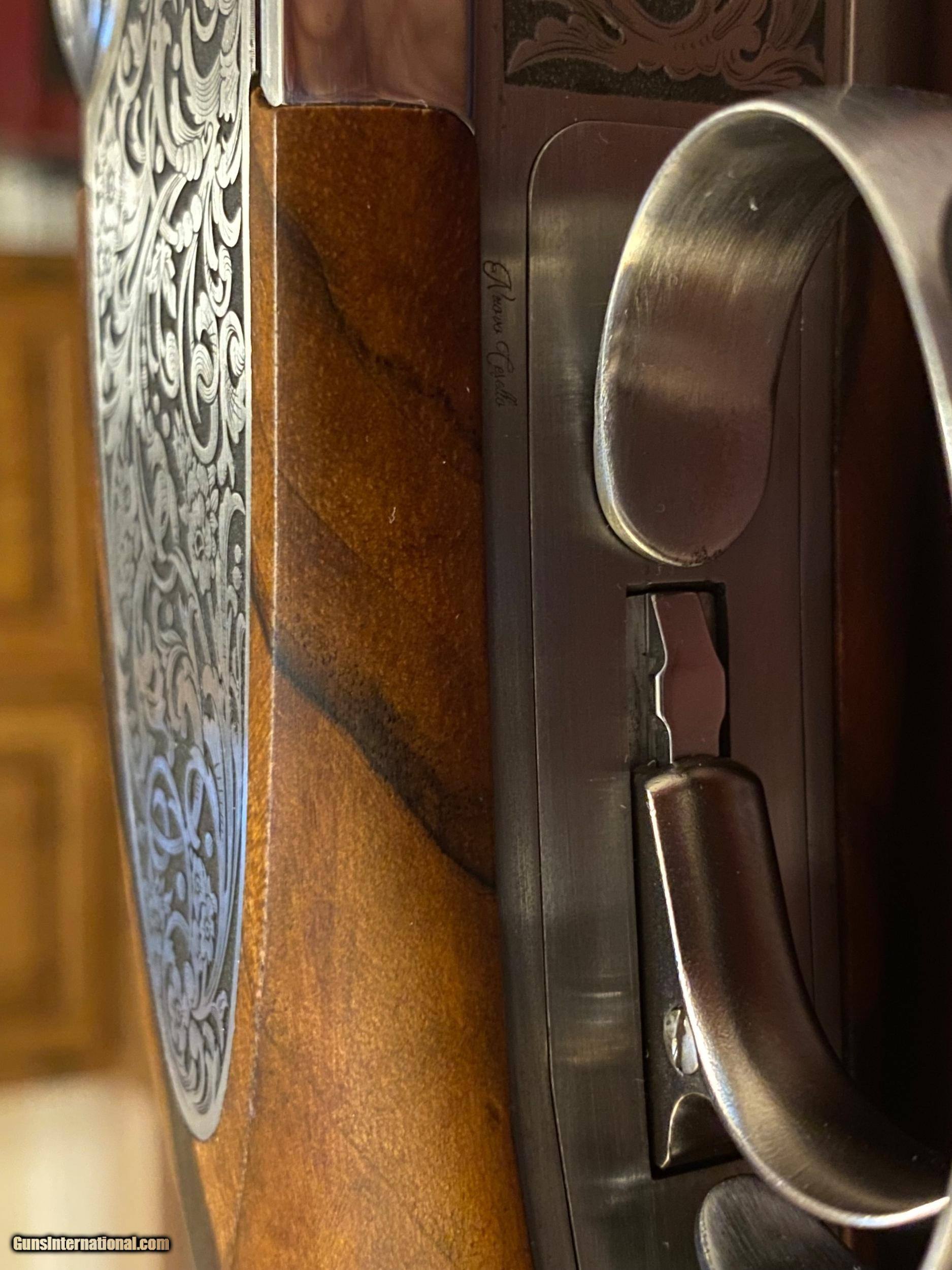 Description: Here is a beautiful DT-11 EELL---- 12 Gauge, 32 inch OBHP Steelium Pro Barrel, this is the highest grade competition shotgun that Bretta produces. These guns are hand engraved and the engravers name is by the trigger guard. The gun comes with two recoil pads, one makes the LOP 14 1/2 the second 14 1/4 inches, demensions are 1 1/2 x 2 1/4 by 14 1/2. This gun is as close to new as you will find it has only had 50 rounds fired through it. This DT comes with stock and barrel sleeves, spare parts kit, five chokes, stock wrench, extra weights for the B-Fast System, all in a Beretta Negrini case. This shotgun has slight right hand cast and is for a right handed shooter with a very slight right hand palm swell. The photographs will speak for themselves. Thank you for looking and please contact me via phone, text or e-mail with any questions. $14,495.00 Remember it is always GO TIME!!!! SOLD Shotgun Gauge: 12 Gauge Manufacturer: Beretta Model: DT-11 EELL Barrel Length: 32 inch Bore: 18.6 Ejectors: Yes Condition: Excellent Metal Condition: Excellent Wood Condition: Excellent Bore Condition: Excellent Barrels: Steelium Pro Triggers: Single detachable Stock Comb: 1 1/2 Stock Heel: 2 1/4 Stock Cast: For are right handed shooter LOP: 14 1/2 - 14 1/4 Chokes: Adjustable |