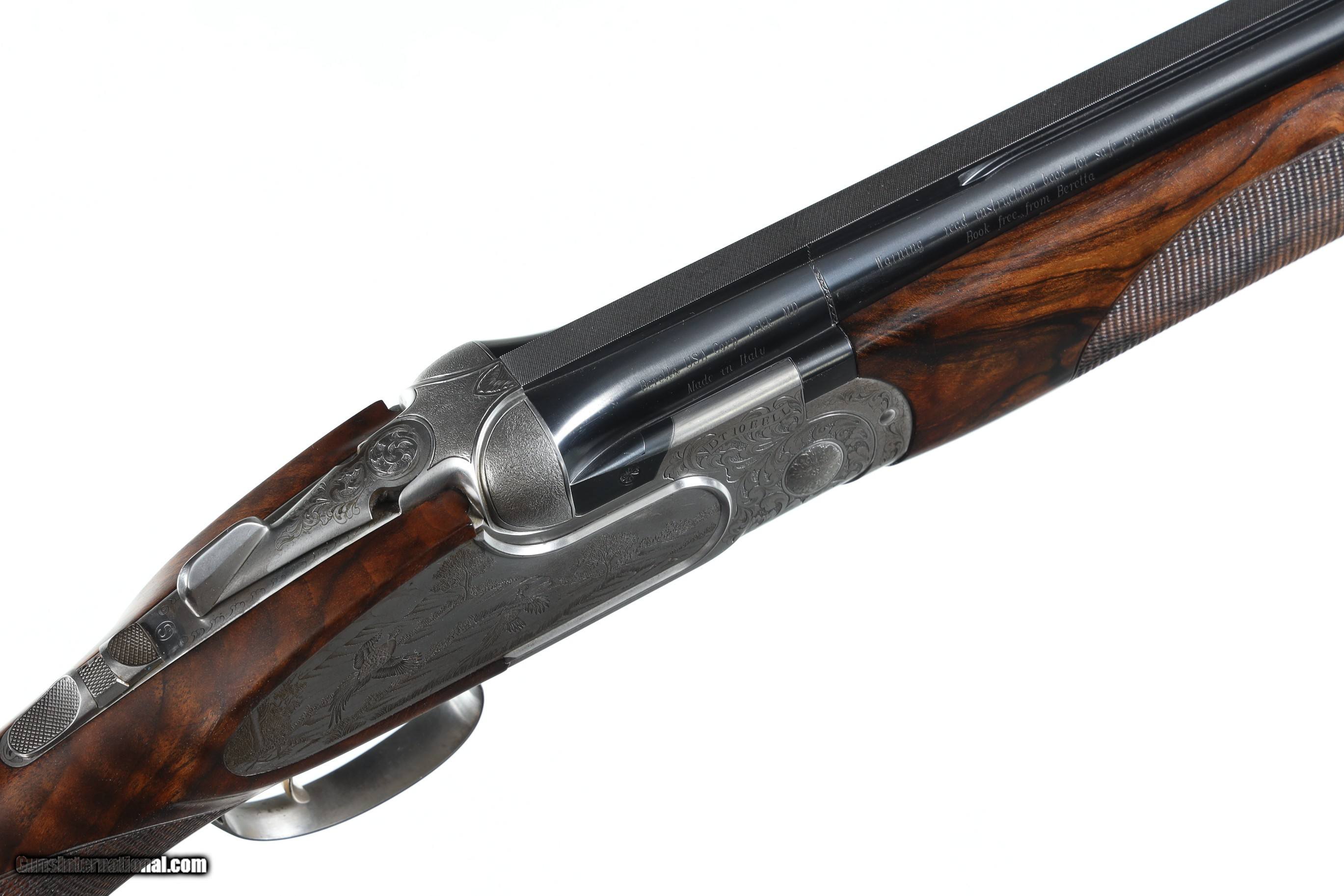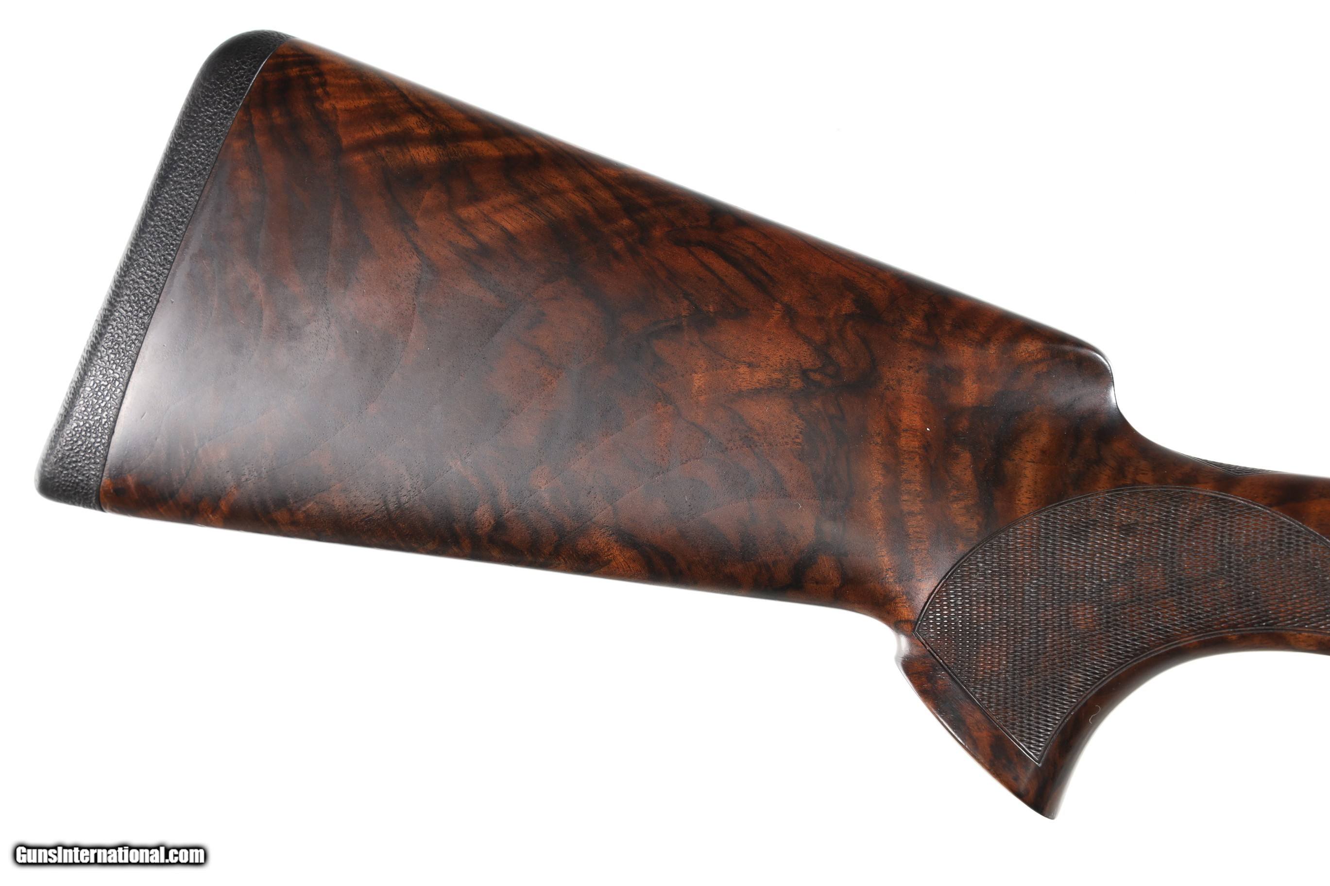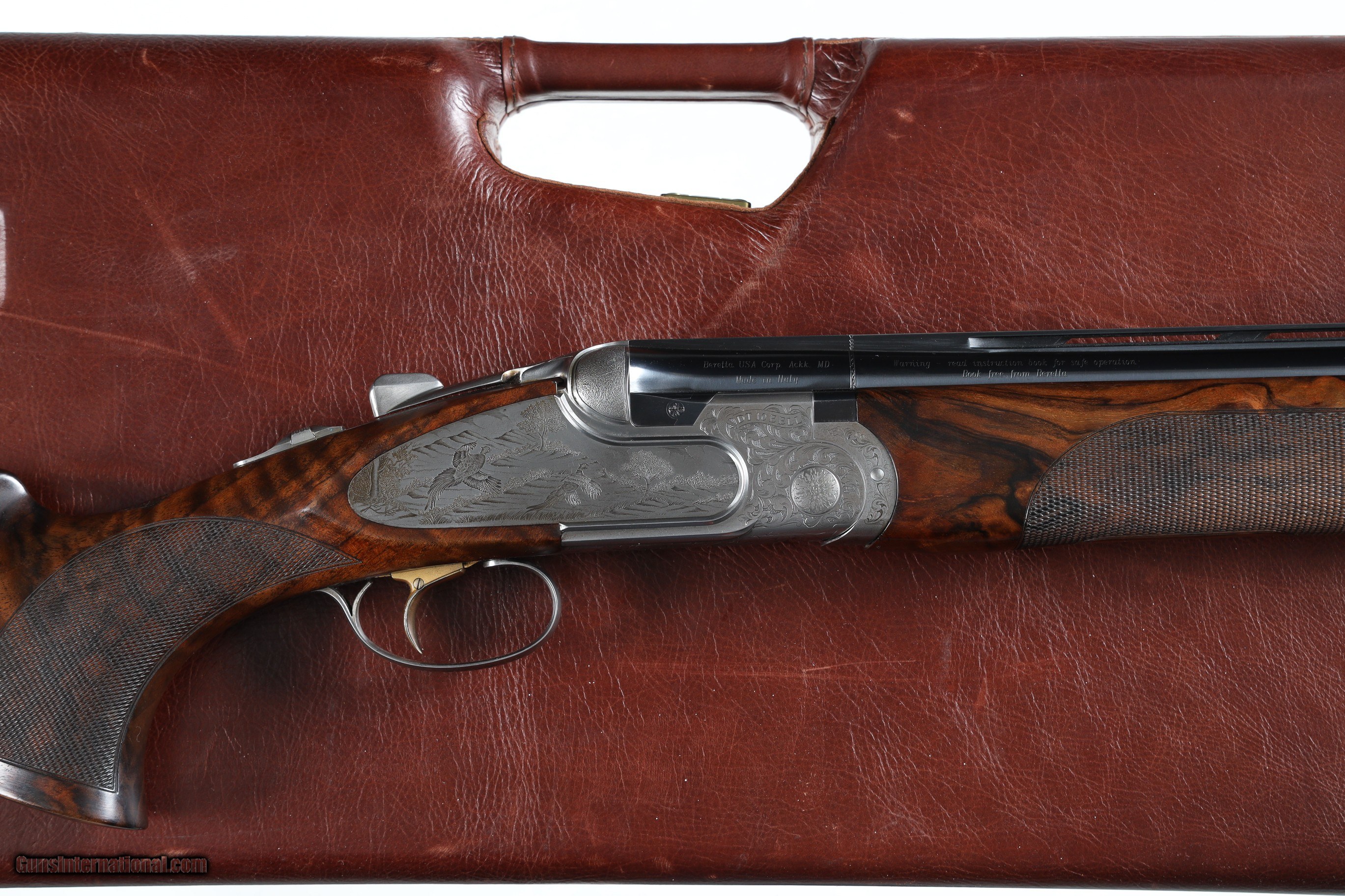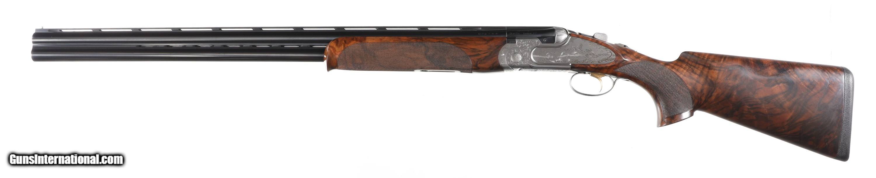 Description: Single selective trigger with ejectors, blue finished barrels with wide sporting clays rib, profusely factory engraved with dual game scene vignette on both sides. Balance of coverage is in broad scroll and vine. Stock in highly figured and marbled French walnut with pistol grip and sporting forearm. LOP 14 3/8", DAC 1 3/8", DAH 2 1/8". 3" chambers with factory interchangeable choke tubes. Supplied with 6 choke tubes as well as additional strikers and sight beads. Shotgun is housed in leather covered luggage case. Excellent overall condition retaining over 95% blue finish on barrels, receiver remains excellent with no distress. Stocks are excellent with some very minor period of use impressions, bores are bright, mechanically excellent, case is very fine. Mfg in 2008 • Free Shipping, No Credit Card Fees. • Lay-a-way available for this firearm. • 1/3 Down, a 1/3 in 30 Days 1/3 in 60 Days. SOLD Manufacturer: Beretta Model: DT10 EELL Serial Number: AG3865B Barrel Length: 30 |