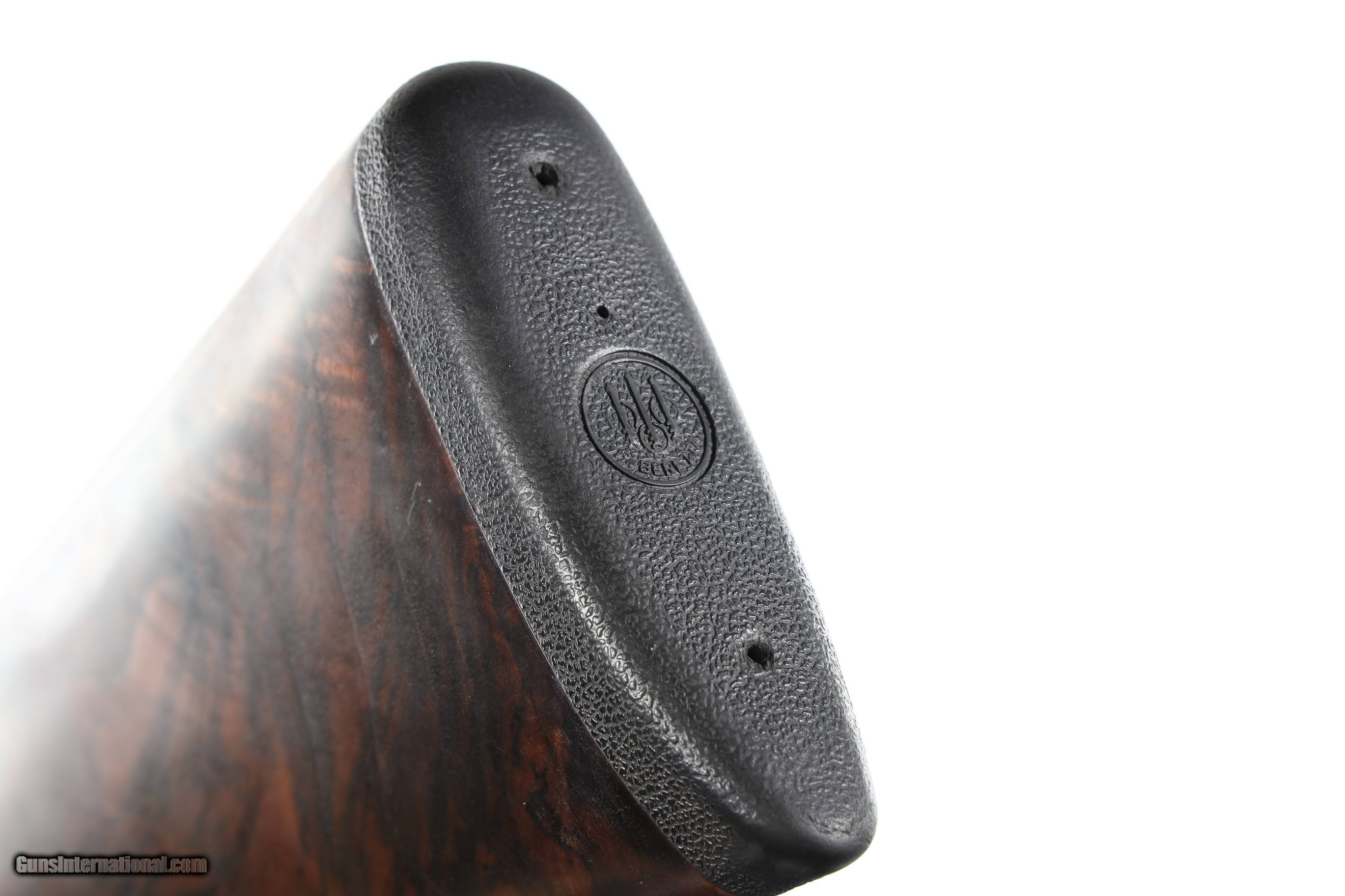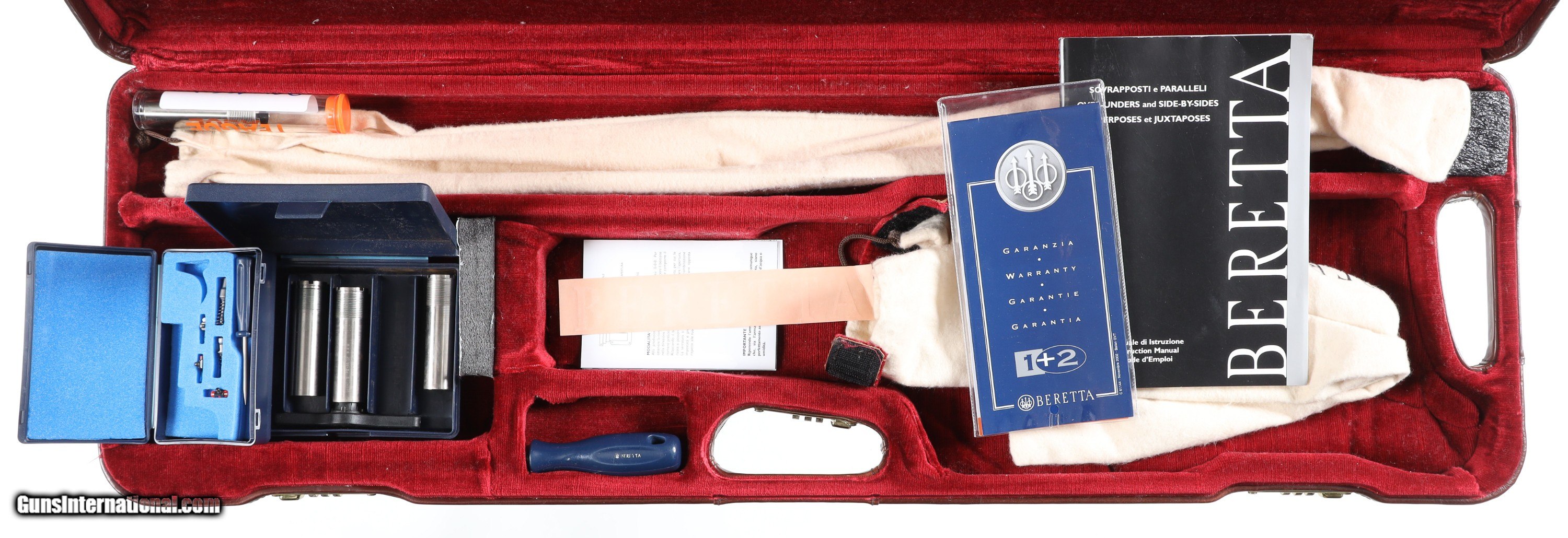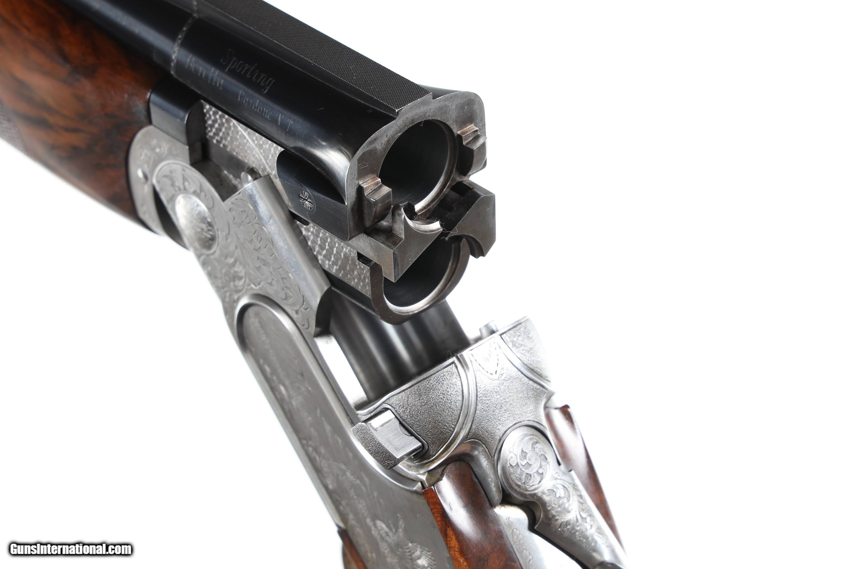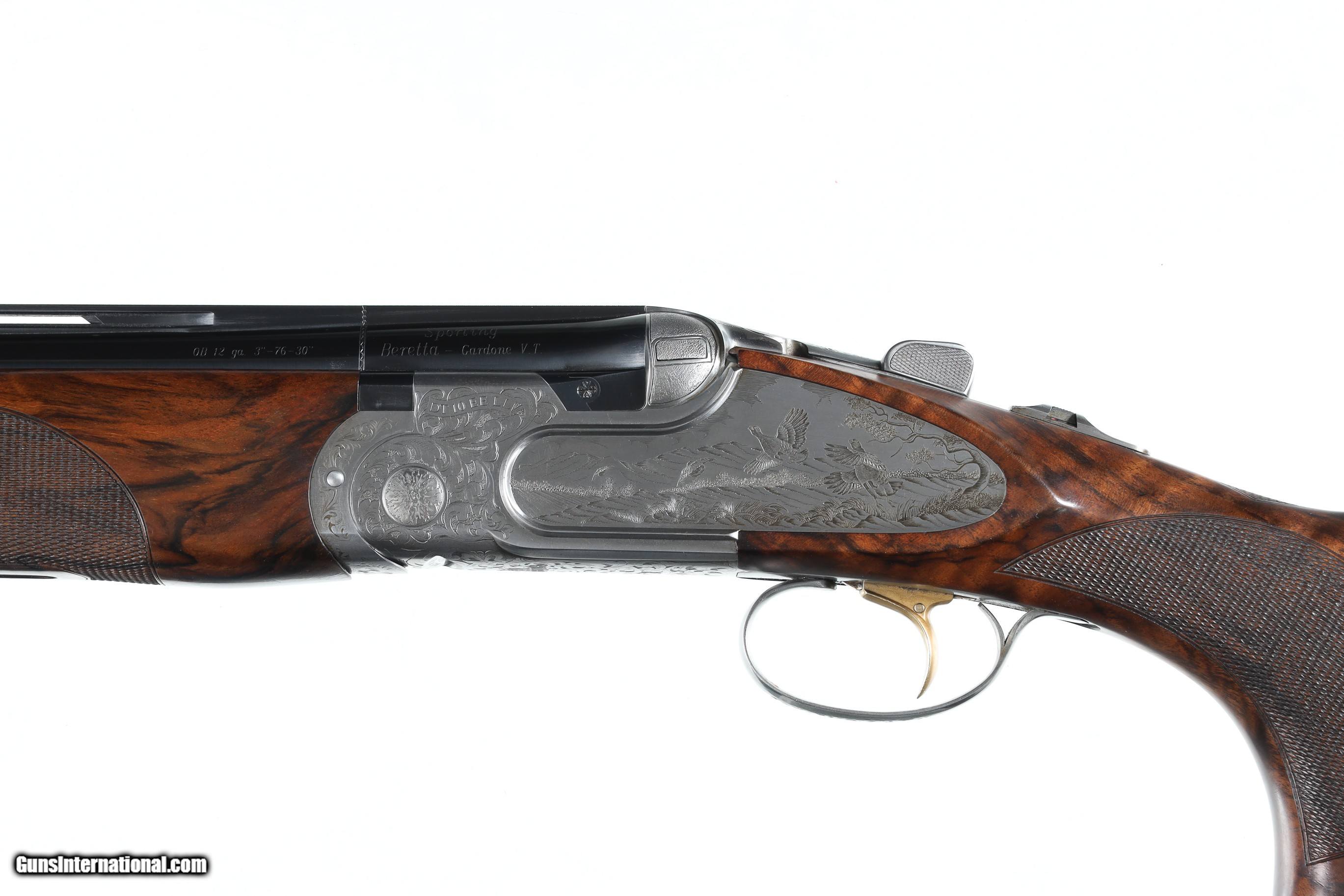 Description: Single selective trigger with ejectors, blue finished barrels with wide sporting clays rib, profusely factory engraved with dual game scene vignette on both sides. Balance of coverage is in broad scroll and vine. Stock in highly figured and marbled French walnut with pistol grip and sporting forearm. LOP 14 3/8", DAC 1 3/8", DAH 2 1/8". 3" chambers with factory interchangeable choke tubes. Supplied with 6 choke tubes as well as additional strikers and sight beads. Shotgun is housed in leather covered luggage case. Excellent overall condition retaining over 95% blue finish on barrels, receiver remains excellent with no distress. Stocks are excellent with some very minor period of use impressions, bores are bright, mechanically excellent, case is very fine. Mfg in 2008 • Free Shipping, No Credit Card Fees. • Lay-a-way available for this firearm. • 1/3 Down, a 1/3 in 30 Days 1/3 in 60 Days. SOLD Manufacturer: Beretta Model: DT10 EELL Serial Number: AG3865B Barrel Length: 30 |