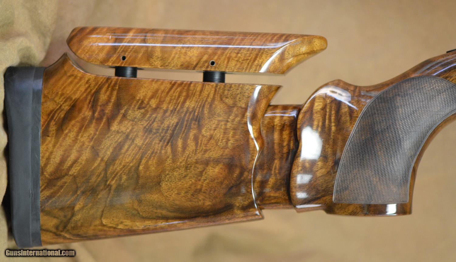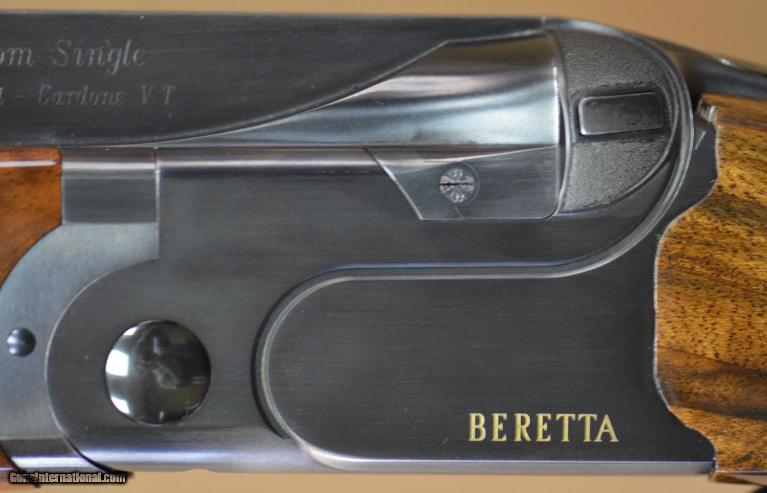 Description: Beretta DT10 Trap Combo 12GA with 34" UnSingle Optima Choked barrel, 32" O/U Optima Choked Barrels. Blued action shows bluing wear on bottom of receiver, trigger guard. Custom recoil reducing stock with adj. comb and factory beavertail forearm. Also includes original factory adj. comb stock. Shows minor handling marks in wood, factory stock is in perfect condition. Forearm has been re-finished. Includes factory case. THIS ITEM IS FEATURED AT OUR NEW MICHIGAN LOCATION (Toll-Free: 1-888-472-0056 or (248)-960-7262) SOLD |