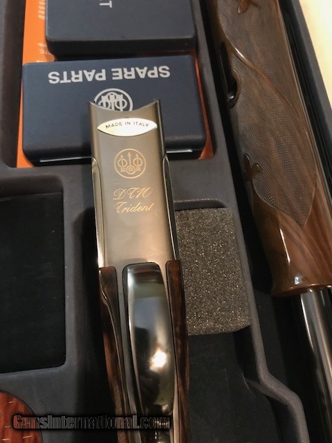 Description: Used very good condition. Beretta DT10 12ga 32"bbls with custom high grade wood with fancy checkering, aftermarket adjustable comb, factory chokes, original case and all paperwork and accessories. The length of pull with the trigger set in the rear position is 14 5/8" and the drop at heal is 2". SOLD Manufacturer: Beretta Model: DT10 Trident Barrels: 32 Gauge Info: 12ga |