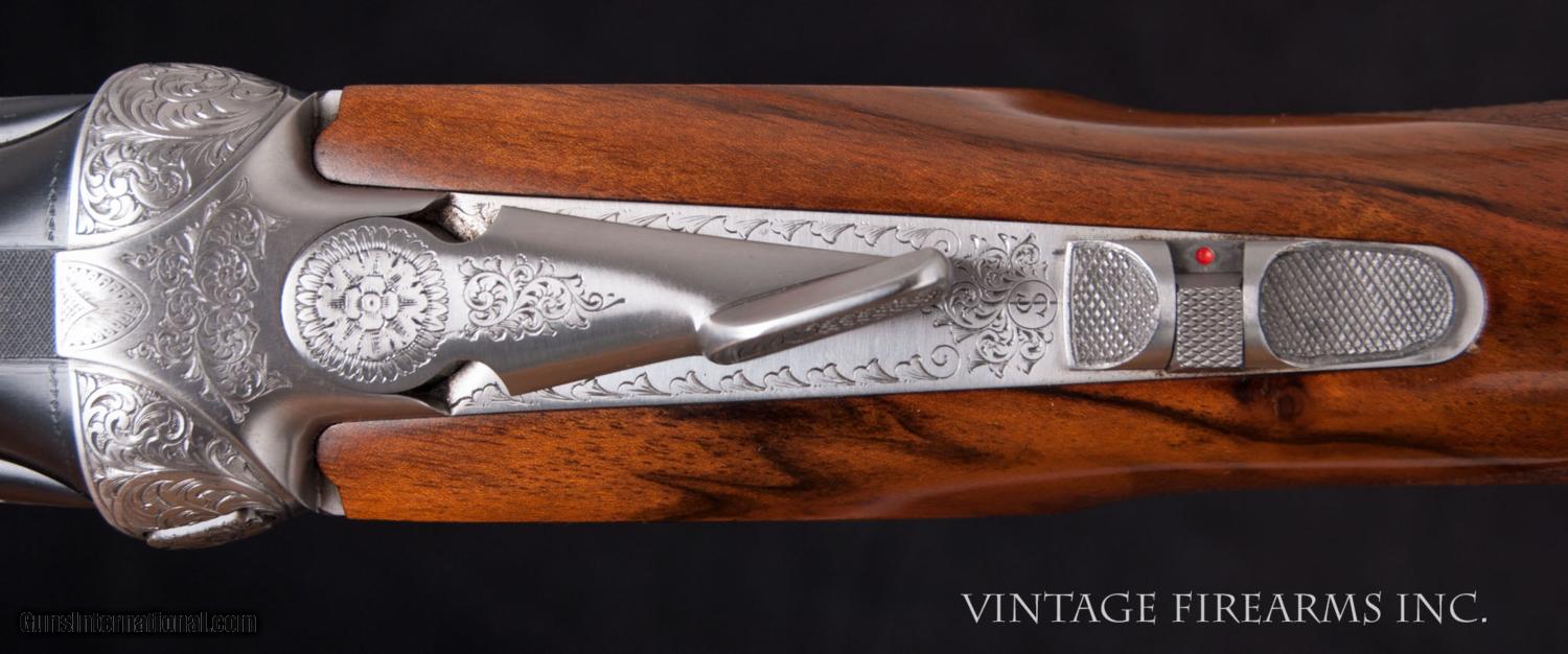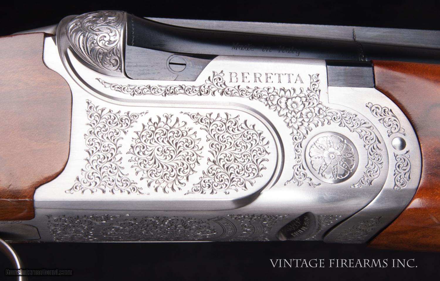 Description: Beretta DT10L Trident Sporting 12 Gauge Over & Under Shotgun CASE, ACCESSORIES, 30" General Specs: Beretta, Year 2006, 12 Gauge, 7lbs 14oz, O&U Serial Number: ag2243b Here we have a really nice Beretta Sporting Clays gun built in 2006. This is a gun that is well above the Beretta 682 series and there are not many available on the used market, which tells you that the guys that own these fine guns see no reason to trade for another like gun or move up to a better grade. These guns are hand engraved, this one by C. Giorlanelli, stocked with nicely figured European walnut, and have mechanics second to none. Built for competitive clays shooting with a convenient drop out trigger group, you can count on tens of thousands of rounds with no required maintenance. This gun comes with the original case, all of the tools and extra parts, and 5 Optima chokes, two of them extended type chokes. We have priced the gun to sell, so give us a call to make this yours! Barrels Barrel Length: 30" Chokes: 2 ext IC, IC, LM, IM Bores: mirror Bore Diameter: .733 both % Blue: 100% factory Chambers: 3" Ribs: vent rib, tight Sights: silver middle, white front Action Action: tight, right of center Ejectors or Extractors: ejectors, strong, timed Case Color: coin finish 100% Engraving: bottega C. Giorlanelli Trigger Type: single selective trigger Trigger Guard Color: coin 100% Stock Type: pistol grip/schnable forend LOP: 14 1/4" LOP To End Of Wood: 13 5/8" DAH: 2 3/8" DAC: 1 3/4" Cast: 3/16" OFF Checkering Condition: excellent Butt Treatment: leather faced pad There are more photos upon request. We offer a 30 day mechanical warranty on this fine shotgun. Call us for full details. PLEASE SEE MY OTHER FINE VINTAGE FIREARMS. Just open one of my ads and click on the line that says “see all items from this seller” and a very nice list of fine sporting and collectible arms will appear. I have many more fine sxs shotguns not yet listed. Thanks for looking! We employ a full time gunsmith on premises and can perform alterations to suit your needs within a few weeks of purchase. Payment Methods: Money Order, Certified Check, Personal Check, Wire Transfer Inspection Period / Return Policy: Three Days from the date the item was received. Sales Tax: 6% Michigan Only Shipping & Insurance: Ground $65.00 We ship internationally! Item Condition: Used Requires FFL?: Yes If you have any questions about this item or payment, please email or call us directly, at #616-292-6240. Thanks! Jay Shachter, Vintage Firearms, Inc SOLD |