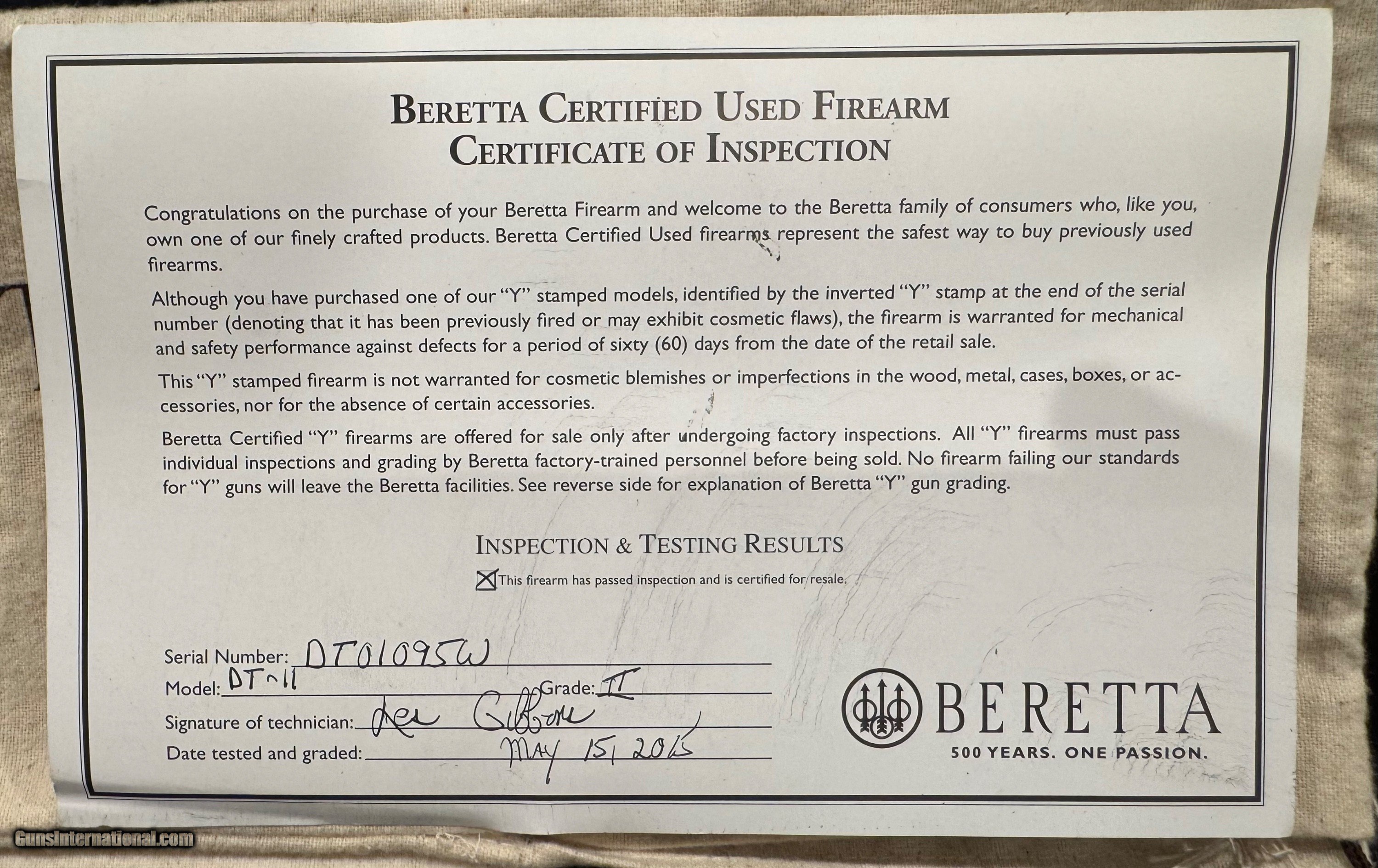 Beretta DT11 12Ga 32” Optima HP choked certified Y gun