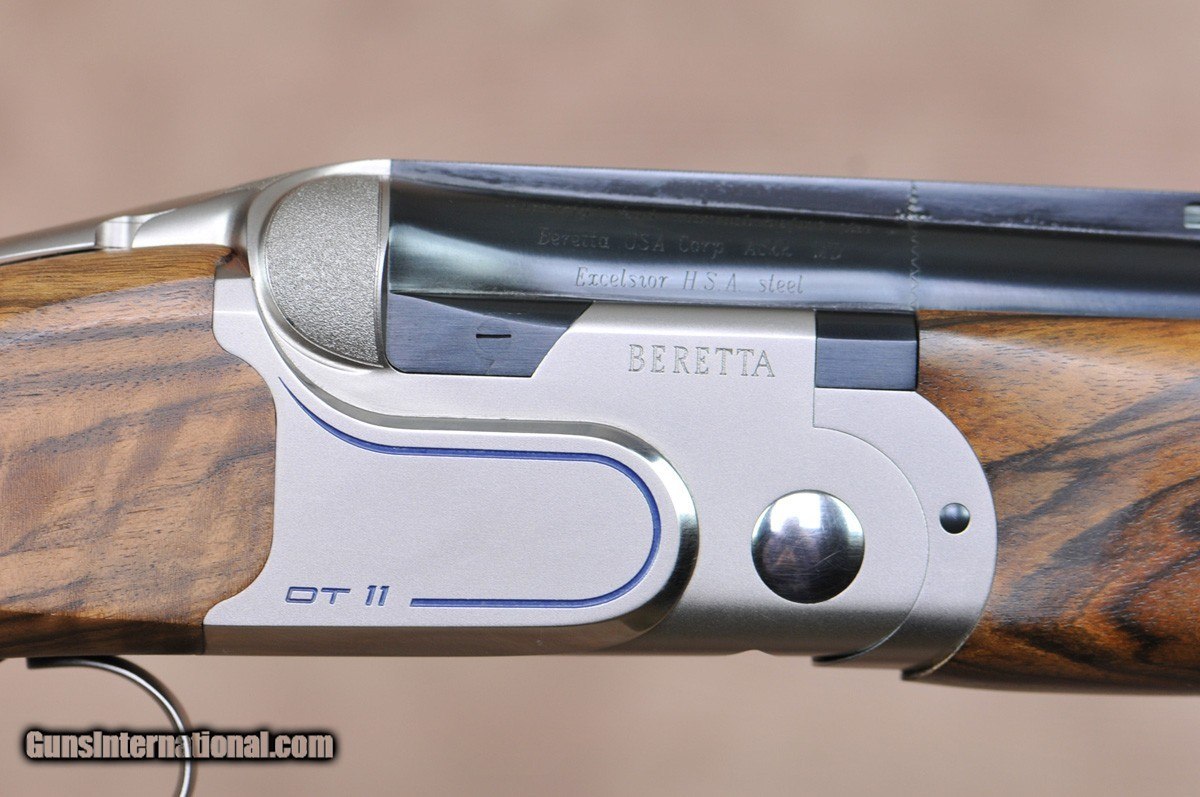 Description: New Beretta DT11 B-Fast Sporting 12GA with 32″ factory OPTIMA HP choked barrels, 10×6 flat tapered rib. Nickel finished action with mirror polished scallops, blue enamel highlights. Factory removable selective trigger. Factory adj. comb sporting stock with left handed stock and palmswell , schnabel forearm. Includes factory case, chokes and tools. SOLD |