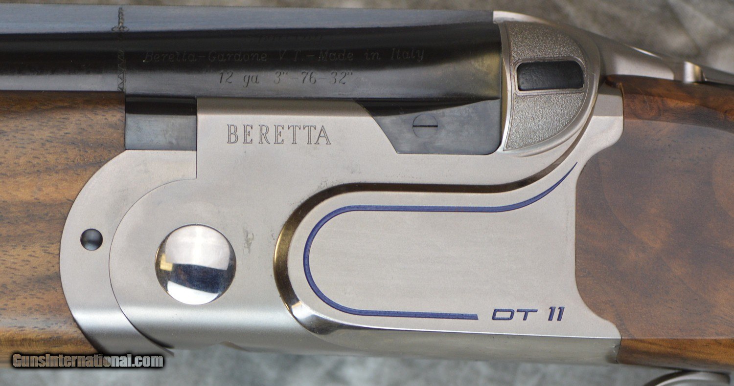 Description: New Beretta DT11 B Fast Sporting 12GA with 32" factory OBHP choked barrels, flat tapered sporting rib. Nickel finished action with selective, removable triggers. Factory adj. comb sporting stock with right-hand palmswell, weight system and schnabel forearm. Includes factory case, chokes and tools. SOLD Shotgun Gauge: 12 Gauge |