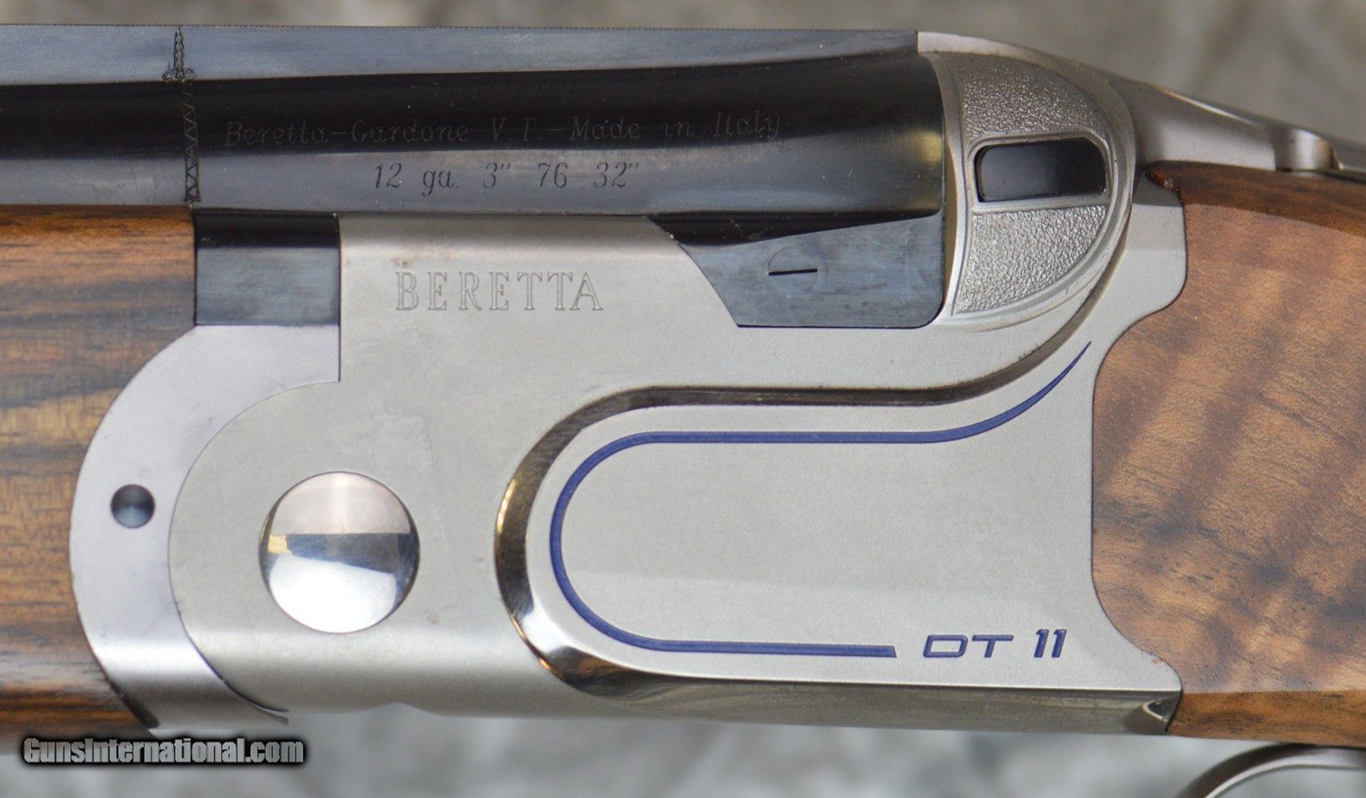 Description: New Beretta DT11 B-Fast Sporting 12GA with 32" factory OBHP choked barrels, flat tapered rib. Nickel finished action with blue enamel highlights, factory removable selective trigger. Factory adjustable comb right-hand sporting stock with palmswell and schnabel forearm. Includes factory case, chokes and tools. SOLD Shotgun Gauge: 12 Gauge |
