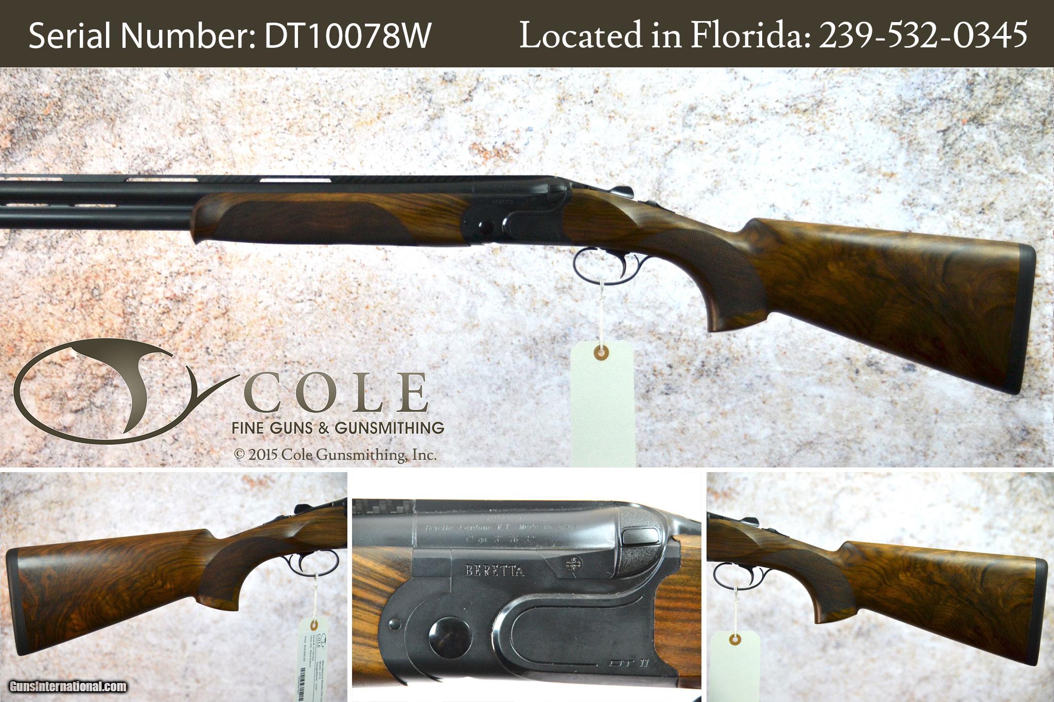 Description: Beretta DT11 Black 12g 32" New SN: DT10078W Call For Our Price! The Beretta DT11 is Beretta's top of the line competition shotgun. The DT11 is 3mm wider then the older DT10 which makes the gun much stronger and more durable. It is the ultimate competition shotgun and is used by the world’s best clay shooters. Interested in the best possible service? Cole Gunsmithing is a factory authorized service center for Beretta, Perazzi, and Zoli shotguns. Sometimes buying from the guy with the lowest price means you "get what you pay for" when it comes to service after the sale. Let us earn your business by using the knowledge we have gained through our work with Italian shotguns over the past 35 years. Our Cole Loyalty Program offers a bundle of perks you won't receive from any other gun dealer in the country. 1) Knowledgeable Product Consultation backed by 35 years of experience. 2) Complimentary fitting to determine proper fit 3) Expedited turnaround on expert repairs and stock modifications. This shotgun is located in our Florida store. Please call 239-352-0345 for more information. Federal firearms laws do not allow us to ship firearms directly to you. Please contact us for ordering and shipping information. Gauge12g Barrel Weight Barrel Length32" Chamber3" Bore Diameter ChokesOptima HP Rib10mm carbon fiber Stock Dimensions Drop at nose1.5" Drop at heel2.5" Cast Off 1/4 RH Pad Forend Style Schnable Length of pull14 1/2" Comb Fixed Weight 8lb 2oz Warranty 3 years SOLD |