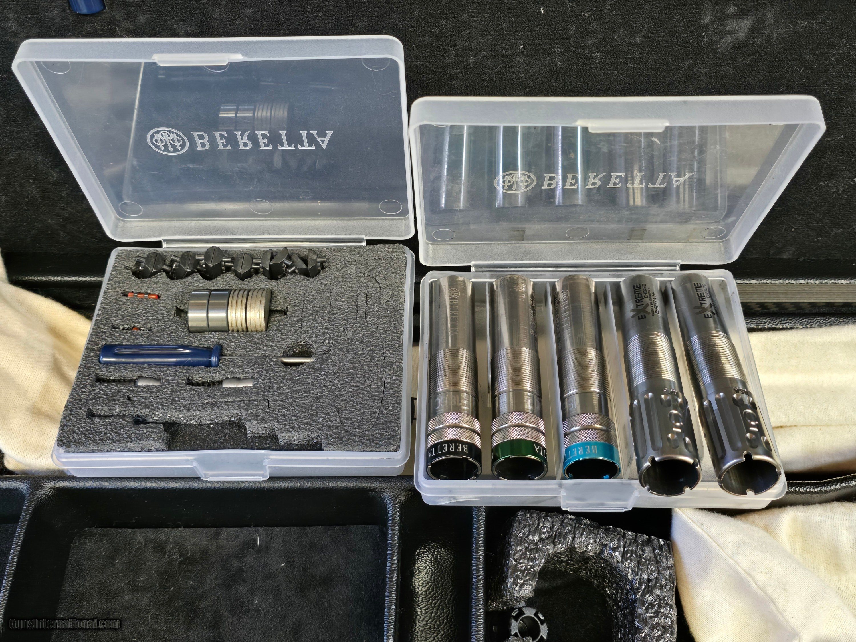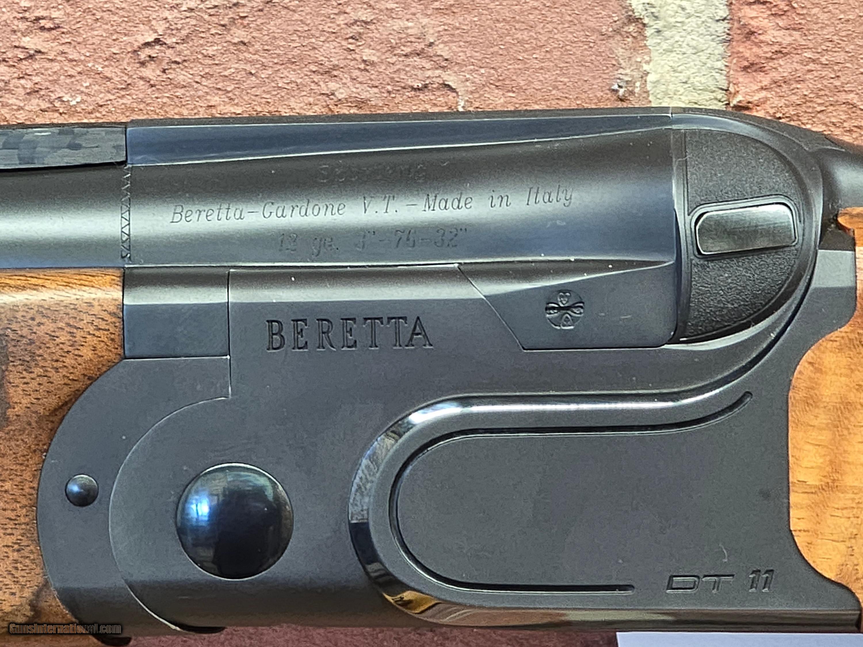 Description: Beretta DT11 Black Sporting 12ga with 32 inch barrels. This is a beautiful shotgun with upgraded wood. It is in near perfect condition. It is complete with hard case with all of the accessories and the cardboard sleeve. This gun has been professionally repaired. The top barrel choke had been blown out and repaired by Briley. As always Briley did an outstanding job. Shipping will be $75.00 Uses of a credit card will add 4% to the tottle SOLD Shotgun Gauge: 12 Gauge Manufacturer: Beretta Model: DT11 Condition: excellent Metal Condition: excellent Wood Condition: excellent Bore Condition: excellent |