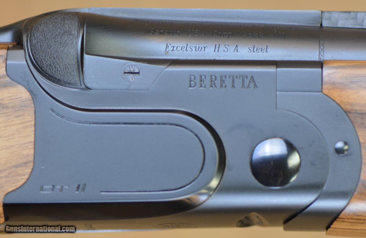 Description: New Beretta DT11 Sporting "Black Edition" 12GA with 32" Factory Optima HP choke tubed barrels, carbon fiber rib. Features blued action, Carbon Fiber removable selective trigger. Factory "B-Fast" Adj. Comb with right-hand palmswell and schnabel forearm. Includes factory case, chokes & tools. SOLD |