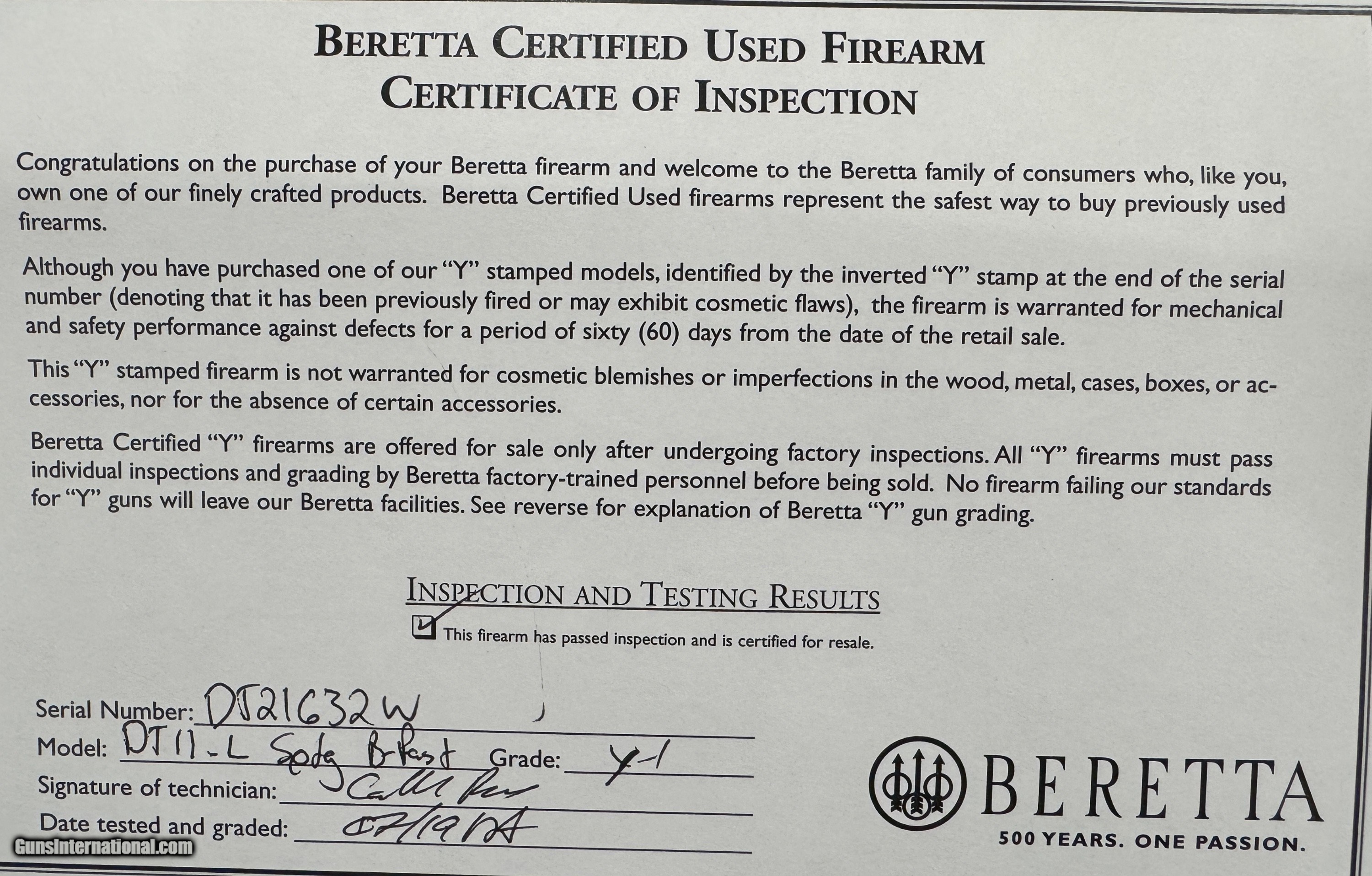 Beretta DT11 L 12ga 32” Barrel w/B-Fast Adjustable Comb. Factory Demo. 99% Overall Cosmetically. This is the the L “Luxury” or Lusso DT11, which adds