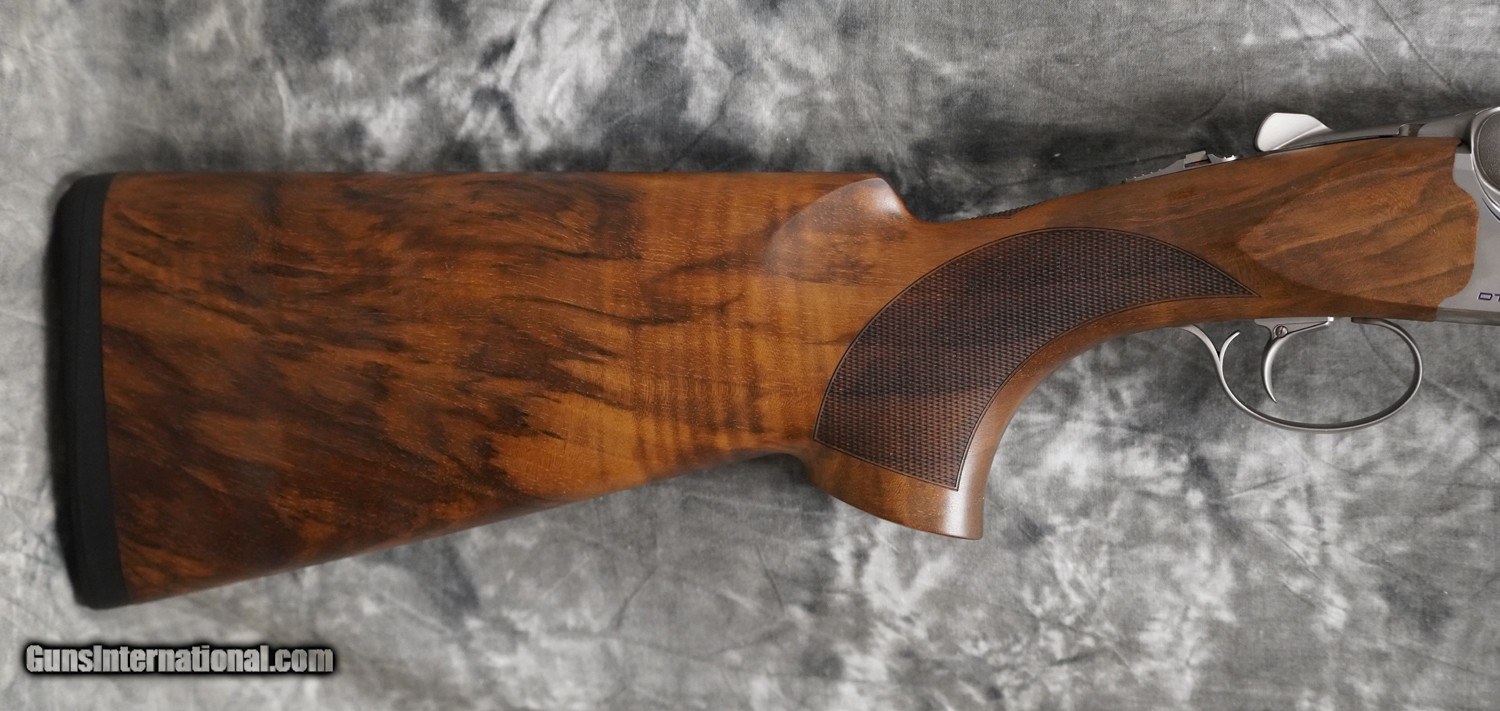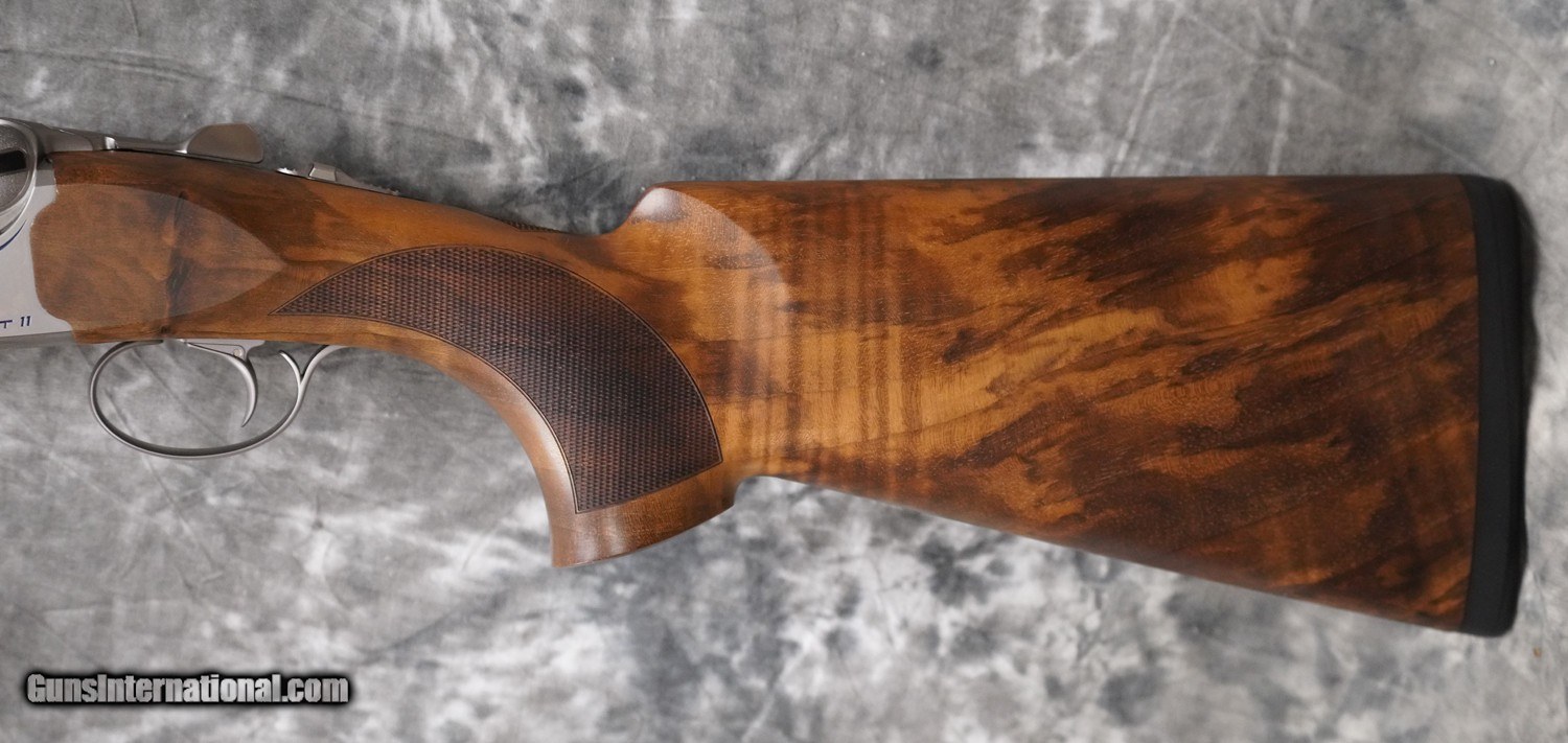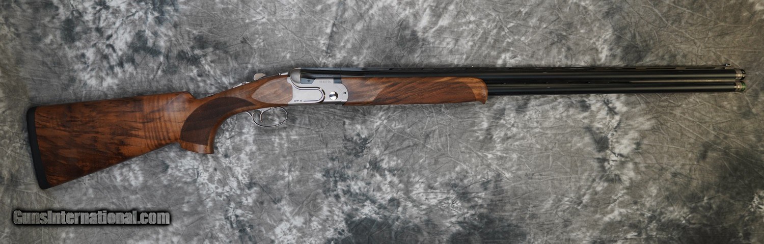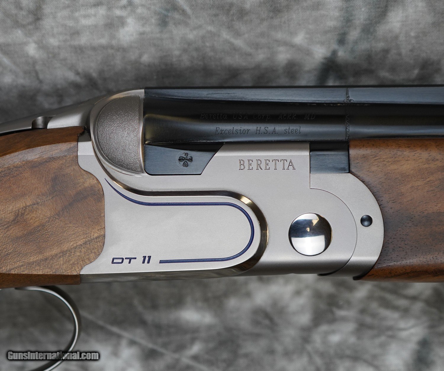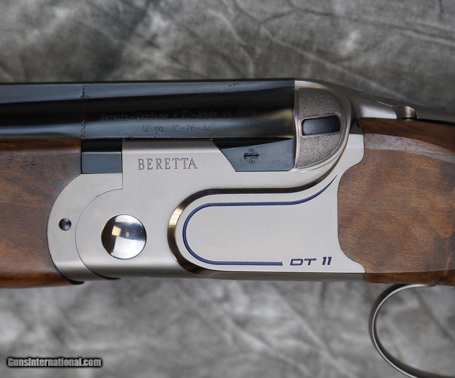 Description: New Beretta DT11 Sporting 12GA with 32" factory OBHP choked barrels, 10x8 flat tapered sporting rib. Nickel finished action with blue enamel highlights, factory removable selective, adj. trigger. Factory pistol grip sporting stock with left-hand palmswell and schnabel forearm. Includes factory case, chokes and tools. SOLD Shotgun Gauge: 12 Gauge |