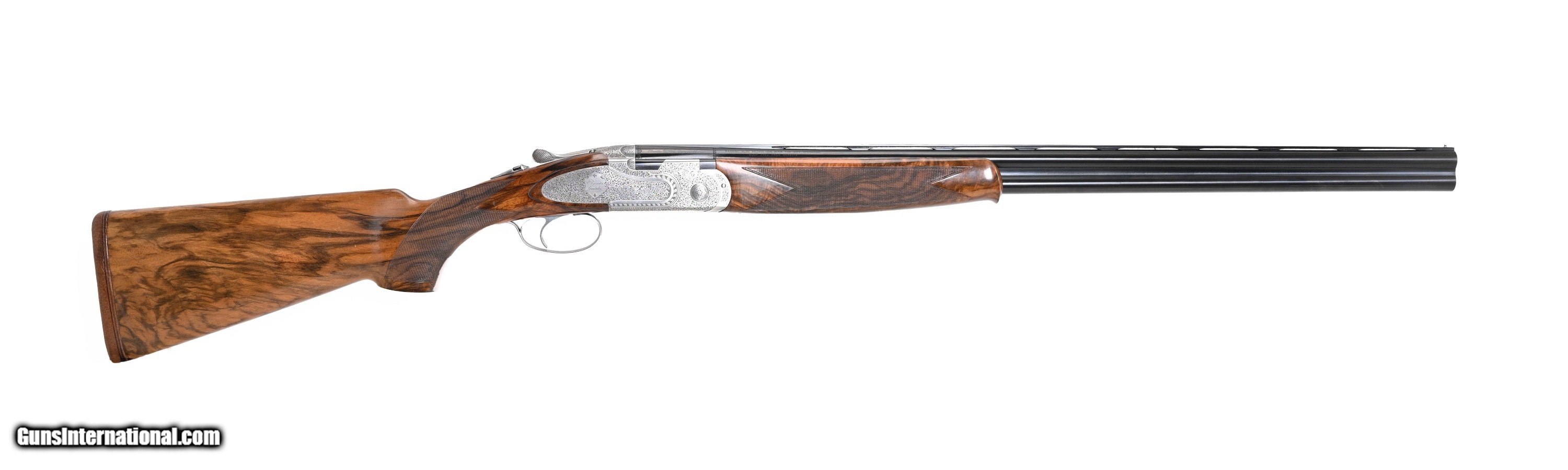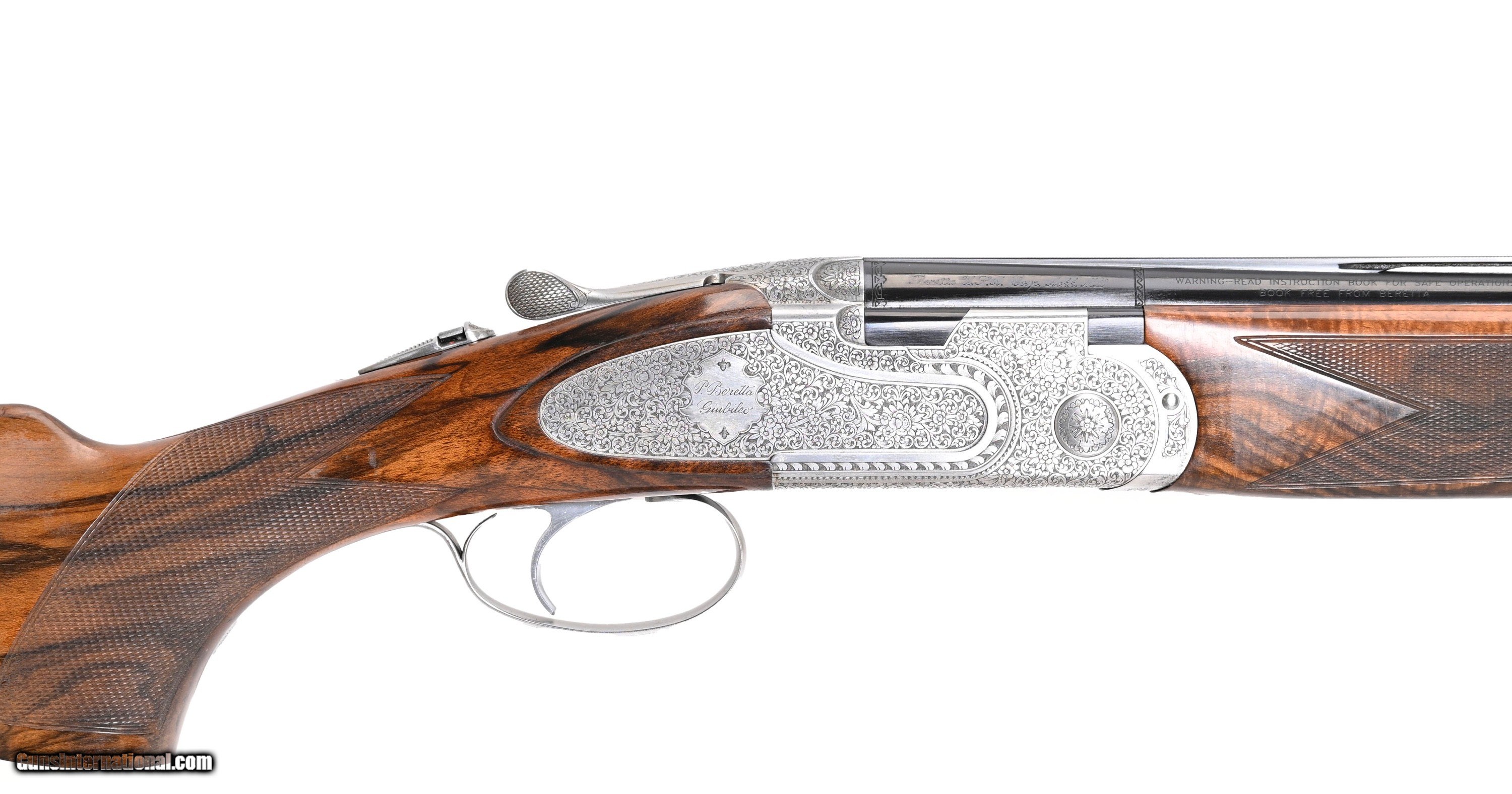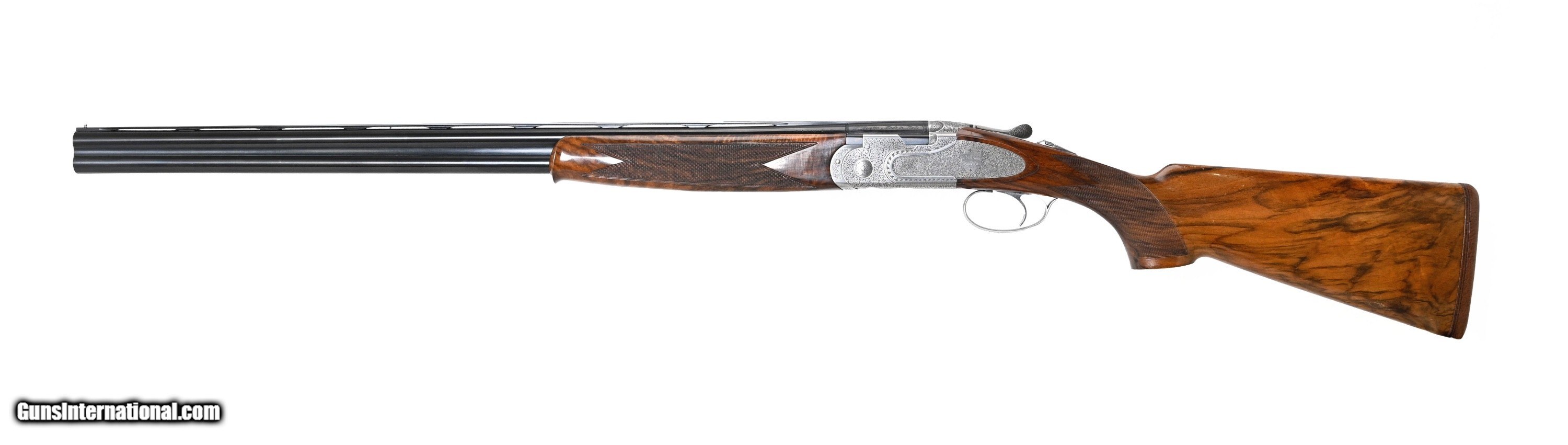 Description: Beretta Giubileo (Jubilee) O/U shotgun in 28 gauge. The Giubileo is the pinnacle of the Beretta 687 series shotguns with hand finishing and detailing by the craftsmen in the "SO" custom shop. The guns first came on the scene in the late 1990's an then only in Beretta Gallery stores and from a very few Beretta authorized Gallery dealers. This particular 28 gauge is serial number 100B making it one of the very first 28 gauge Giubileo's in 1998. Please note that since this is an early Giubileo is may have been completely hand engraved with later models being machine engraved and hand chased. A very good indication is that the engraving is signed both by the studio: C Giovanelli. And also signed by the Master Engraver: F Grarioli! Built on the scaled 28 gauge frame with 26 1/2" vent rib barrels and factory fitted for Mobil Chokes Complimenting the fine metal work is exceptional wood with the pistol grip butt stock and the Schnabel forearm both finely checkerd and hand rubbed oil finish. The stock has a 14 1/8" length of pull over a 1/2" full leather recoil pad. 1 3/8" drop at the comb. 2 1/16" drop at the heel with slight right hand cast. The gun weighs 5 lbs. 13 oz. There are a couple of small handling marks on the forearm but overall the gun retains 98% original finishes. SN: GIU 100 B Price: $9,000.00 Contact Seller |