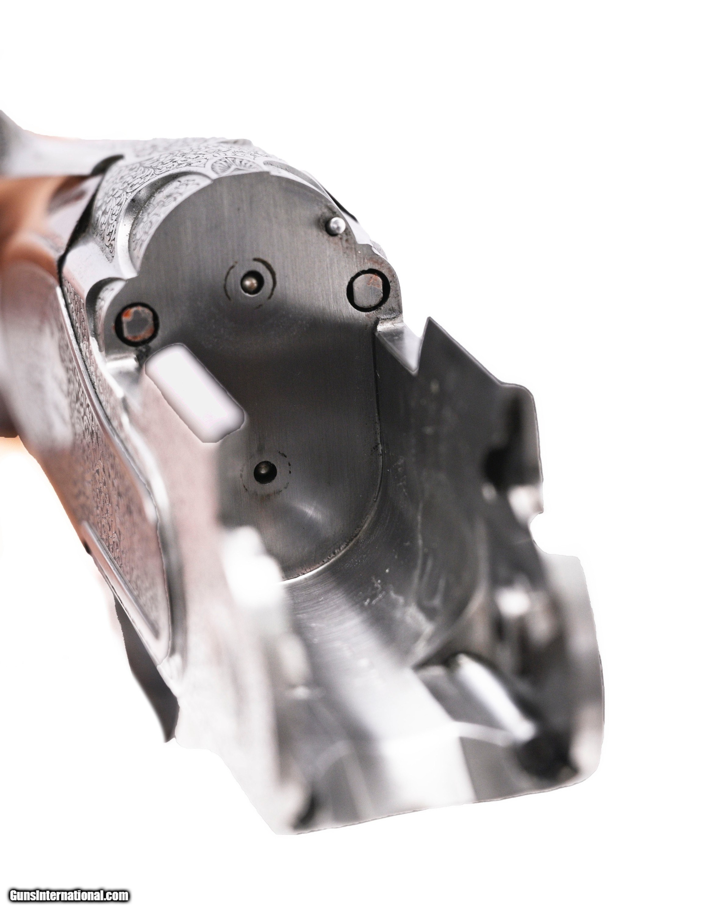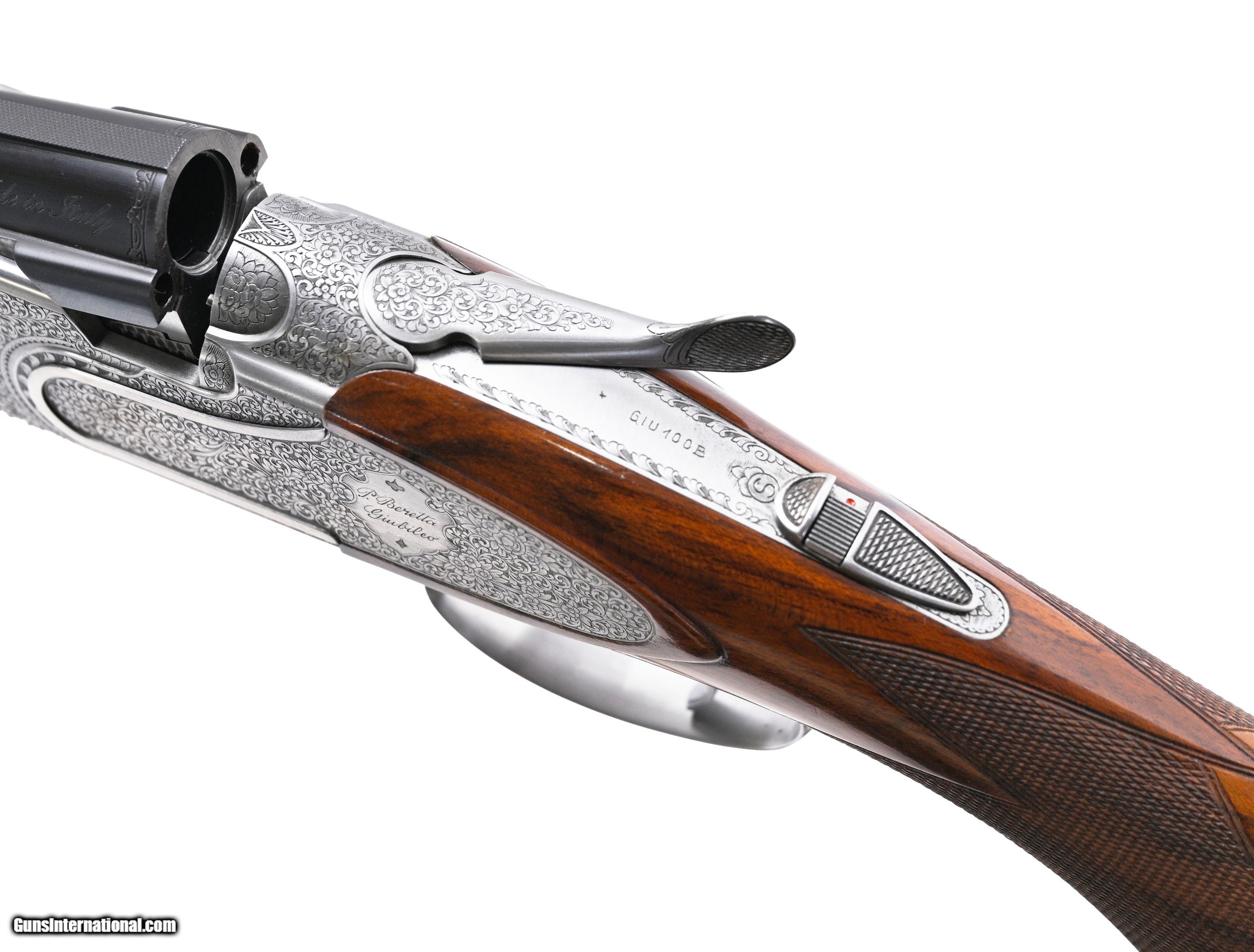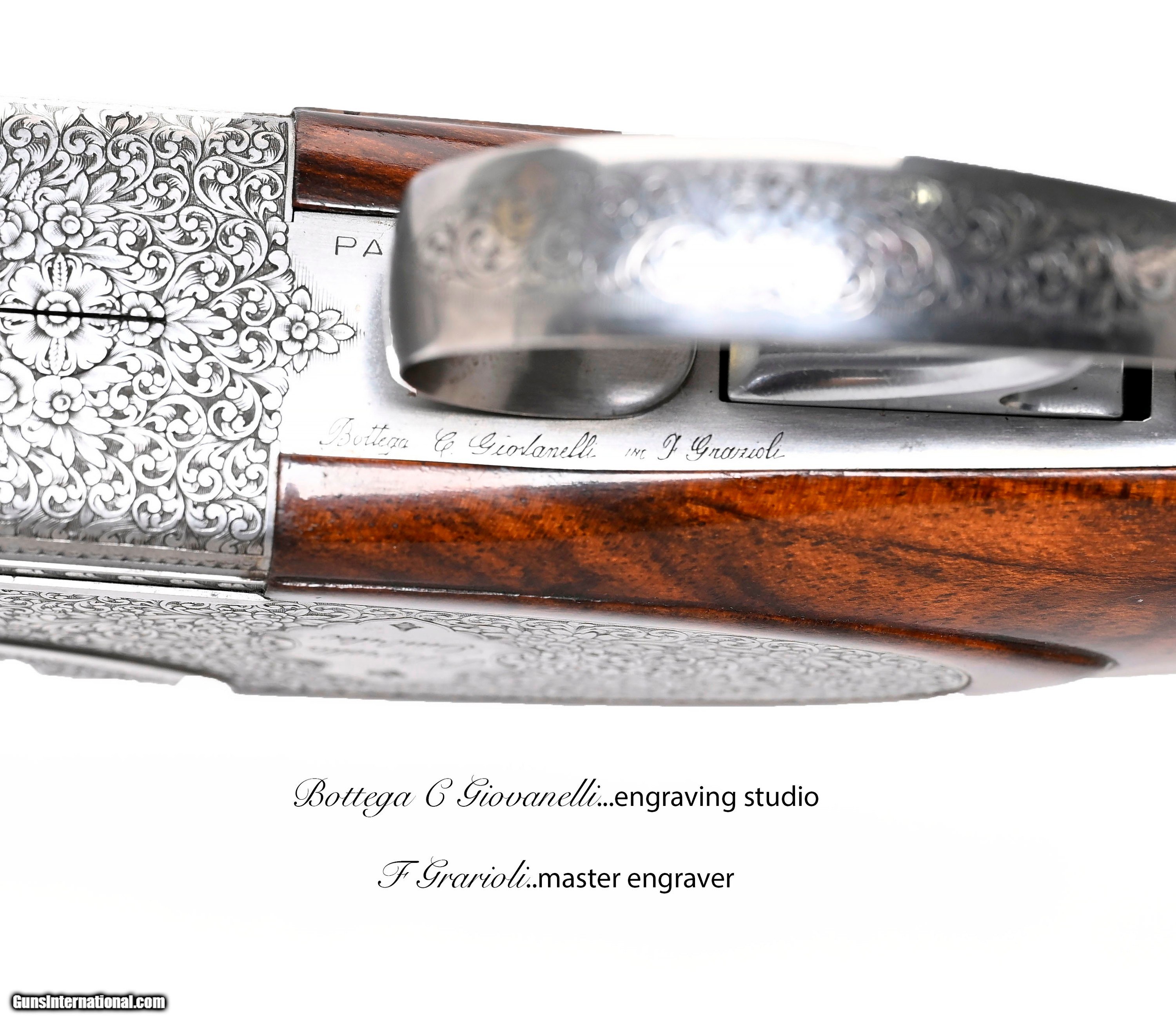Description: Beretta Giubileo (Jubilee) O/U shotgun in 28 gauge. The Giubileo is the pinnacle of the Beretta 687 series shotguns with hand finishing and detailing by the craftsmen in the "SO" custom shop. The guns first came on the scene in the late 1990's an then only in Beretta Gallery stores and from a very few Beretta authorized Gallery dealers. This particular 28 gauge is serial number 100B making it one of the very first 28 gauge Giubileo's in 1998. Please note that since this is an early Giubileo is may have been completely hand engraved with later models being machine engraved and hand chased. A very good indication is that the engraving is signed both by the studio: C Giovanelli. And also signed by the Master Engraver: F Grarioli! Built on the scaled 28 gauge frame with 26 1/2" vent rib barrels and factory fitted for Mobil Chokes Complimenting the fine metal work is exceptional wood with the pistol grip butt stock and the Schnabel forearm both finely checkerd and hand rubbed oil finish. The stock has a 14 1/8" length of pull over a 1/2" full leather recoil pad. 1 3/8" drop at the comb. 2 1/16" drop at the heel with slight right hand cast. The gun weighs 5 lbs. 13 oz. There are a couple of small handling marks on the forearm but overall the gun retains 98% original finishes. SN: GIU 100 B Price: $9,000.00 Contact Seller |
