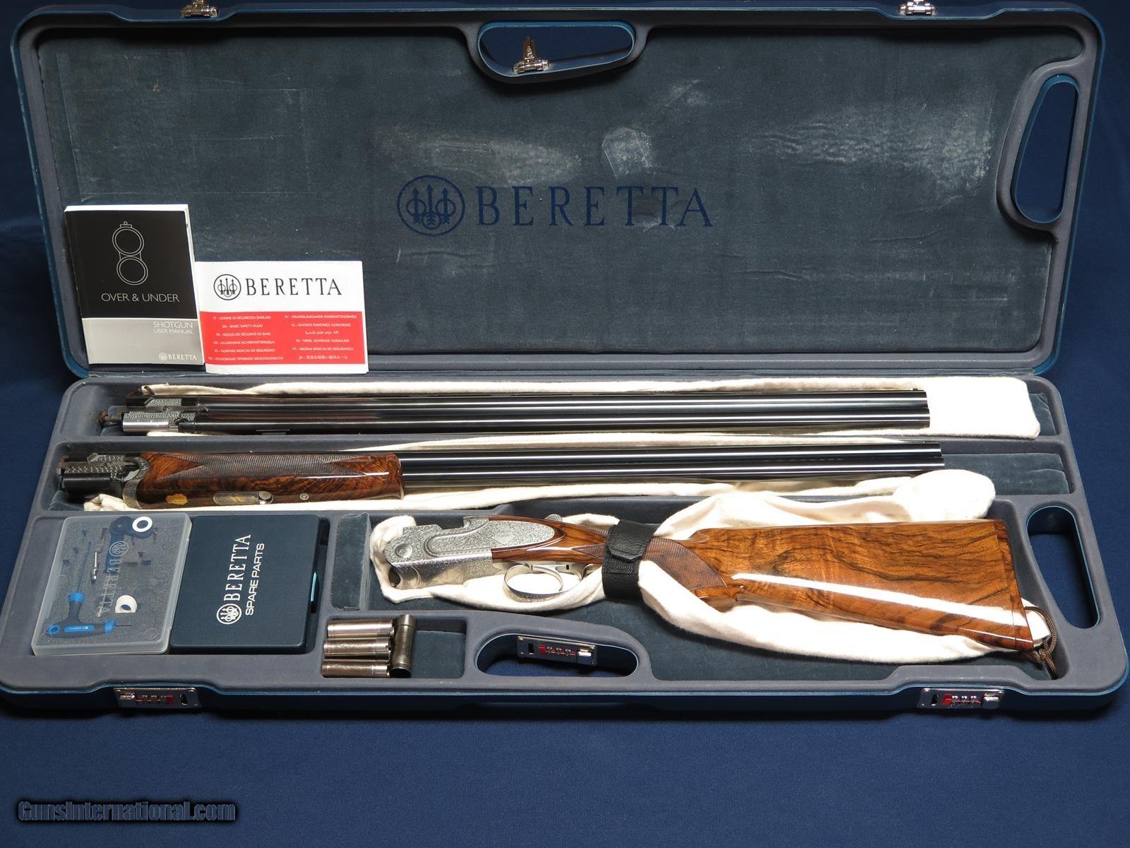 Description: Beretta Jubilee (Giubileo) O/U 2 barrel Field 20ga set. All numbers match. 28 inch barrel and 30 inch ported barrel. Comes with 8 choke tubes. F,M,IM,LM,LM,IC,IC,C. S.S.T. Ejectors. 3 inch chambers. 14 3/8 LOP. Beautiful grain in wood. 6 lbs 0 oz. Looks like new condition with Beretta case, accessories and manual. SOLD Shotgun Gauge: 20 Gauge |