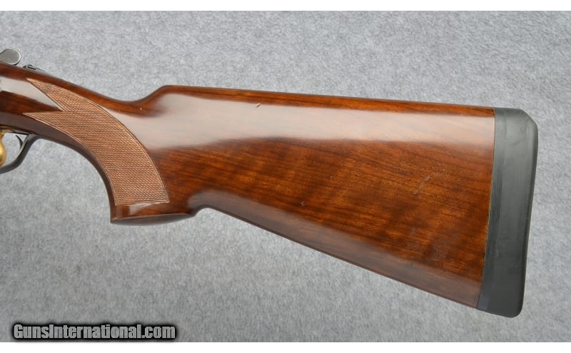 Description: Solid pre-owned Gold Sporting shows scattered handling impressions and scratches throughout. Includes makers softcase and flush-mount choke tube set. 12 Gauge SOLD Chambers: 3 Inch Metal Condition: "Satin Blue Barrels, Greystone Finished Receiver Wood Condition: Walnut Bore Condition: Bright Barrels: 29.5 inch Triggers: SST Stock Dimensions: 14 " LOP as Set Fore End: Schnabel Tip Butt Pad: Kick EZZ Recoil Pad Sights: "1/2"" Wide Vent Rib, White Front Sight Chokes: 5 Tube Set Item Location: Buda, TX |