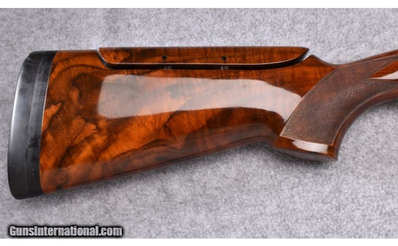 Description: Wood has been professionally refinished in a gloss oil at some point. Shows a few use/storage marks and a 1/2" hairline crack on left forend near receiver. Blue shows some light use scuffs with excellent bores. Complete with Kolar 20 GA - 28 GA & .410 Bore tubes, tools and hardcase. SOLD Manufacturer: S/N H14XXXB Caliber Info: 12 GA Chambers: 3 Metal Condition: Very Good Wood Condition: Very Good Bore Condition: Excellent Barrels: 29 1/2" Ported Triggers: Factory Stock: Checkered Walnut Pistol Grip with Adjustable Comb & Right Hand Palm Swell Stock Dimensions: 14 1/2" LOP Fore End: Checkered Walnut Butt Pad: Black Rubber Weight: 8 LB Sights: Red Front Bead Chokes: Choke Tubes Item Location: Wheeling, WV |