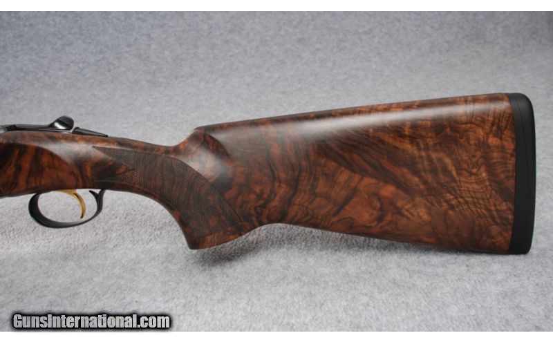 Description: SOLD Caliber Info: 12 Gauge Chambers: 3 Metal Condition: NIB Wood Condition: NIB Bore Condition: NIB Barrels: 30". Vent rib. Triggers: Single. Selective. Stock: Oil-finished Grade 3 Turkish Walnut stock with checkered pistol grip. Stock Dimensions: 14 5/8" LOP: 1 1/4" DAC: 2 1/4" DAH. Fore End: Checkered Walnut. Schnabel tip. Butt Pad: Rubber. Weight: 7 Lbs. 12 Oz. Sights: White front with mid bead. Chokes: Includes full, improved-modified and modified extended Optima-Choke® tubes. Extras: Factory case, papers and accessories. Item Location: Billings, MT |