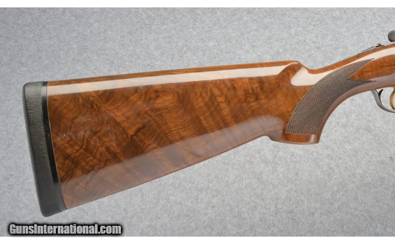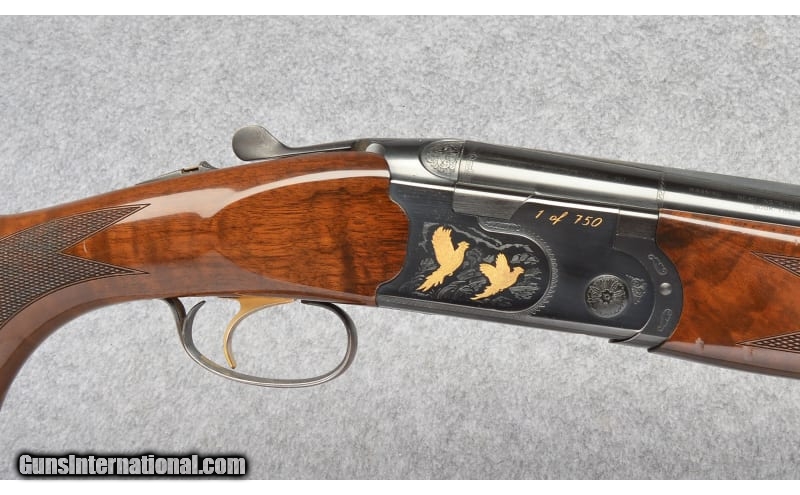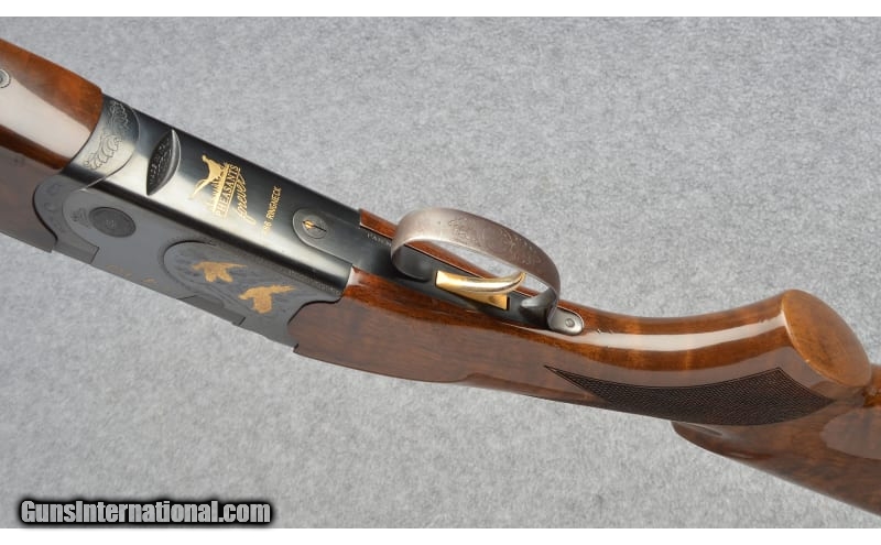 Description: Pheasants Forever edition shows scattered light scuffs and impressions on the stock, thin bluing on the trigger guard. Solid, includes makers ABS case, manuals, choke tubes and tool. 12 Gauge SOLD Chambers: 3 Inch Metal Condition: "Blued, Engraved receiver w/ Gold pheasant scene Wood Condition: "Checkered pistol grip, Nicely figured Walnut Bore Condition: Bright Barrels: 28 Inch BBL. Triggers: Single Select Fore End: Schnabel Tip Butt Pad: Pachmayr Weight: 7 Lbs. 9 Oz. Sights: "Vent Rib, Metal Bead Chokes: 5-Choke Tube Set Item Location: Buda, TX |
