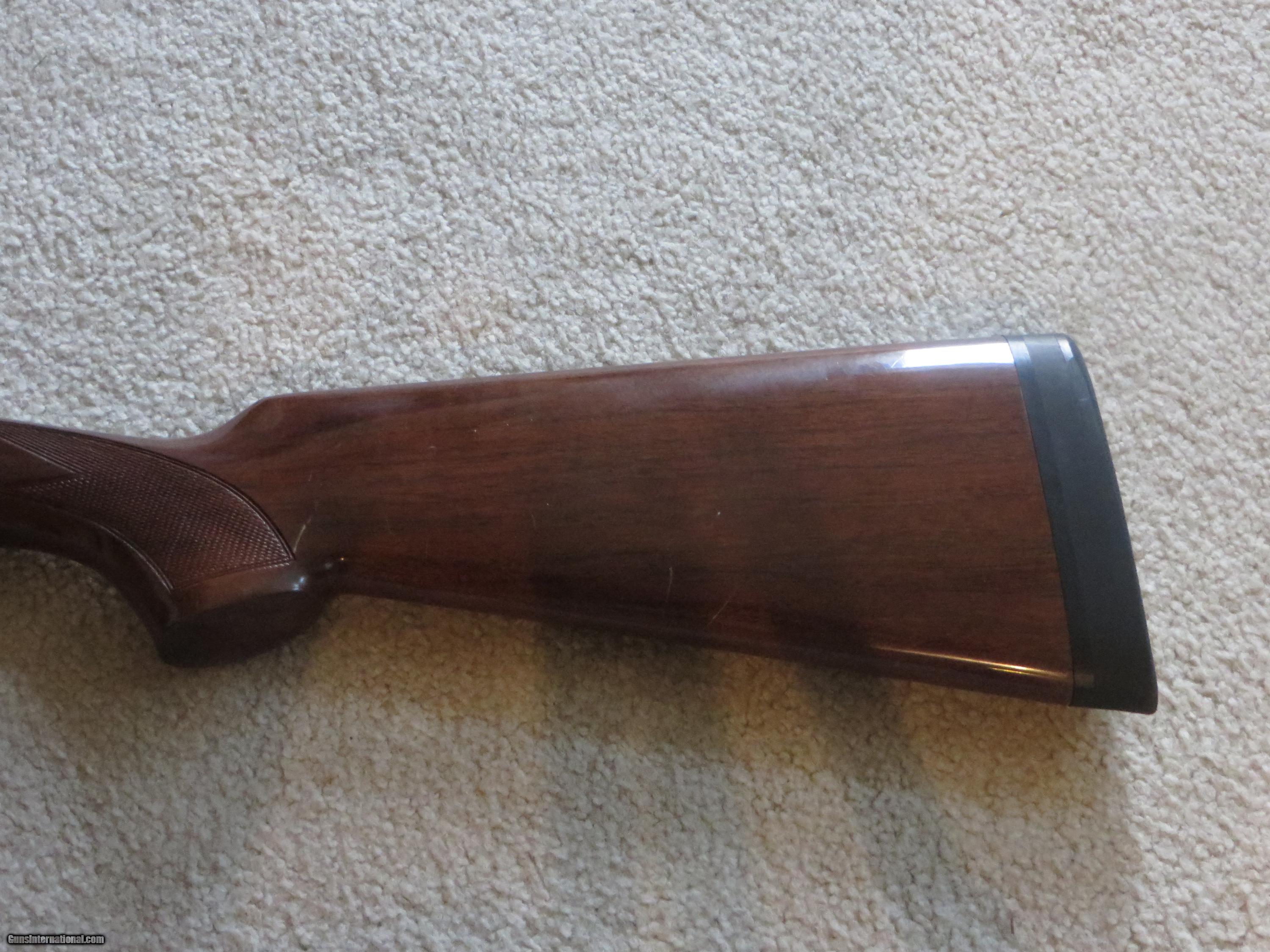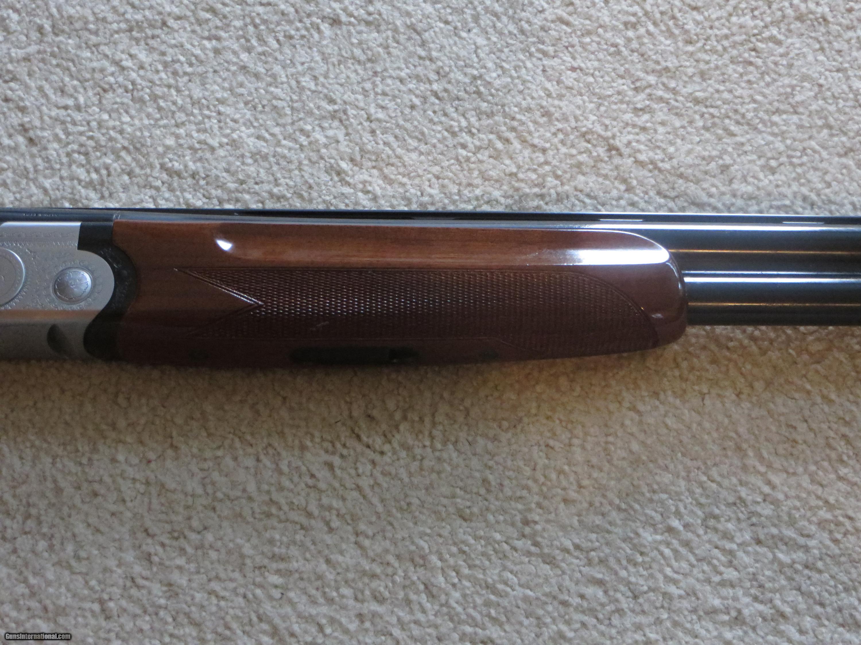 Description: SOLD PENDING FUNDS Beretta 686EL 12 Ga Field MC-3 with Sideplates. This discontinued shotgun is in Very Good condition with only a some minor scratches in the wood, NO major gouges, some are visible in the pictures, the metal is near new condition. It has a 26" Barrel and is equipped for choke tubes, (3) come with the gun (IC-M-F) and an Orvis choke tube wrench. The shotgun has a single selective trigger and auto ejectors. Yes, the side plates really do come off. The gun is complete with the original box. The operating lever is very right of center. This shotgun was made in 1996. This gun has been used but not abused, there's still a lot of life left in this fine Beretta. This gun as with all used guns should be inspected by a trused gunsmith before firing. A 3 day NON-FIRING inspection period with return (at buyers expence) is included.No Calif. sales, sorry. Packing, Shipping and Insurance will be at actual cost. SOLD |