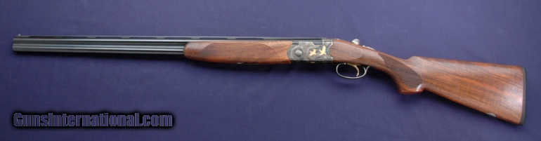 Description: Beretta Model 687 Silver Pigeon Grade V chambered in 28ga . Features include 26” barrels, vent rib, screw in chokes, single select trigger, Gold game scene engraved, auto ejectors, color cased frame and checkered walnut stock. The stock measurements are DAH-2-5/16” DAC- 1-9/16” and a LOP of 14-1/2” over a recoil pad. This beautiful shotgun is in like new condition and comes in is factory box. SOLD |